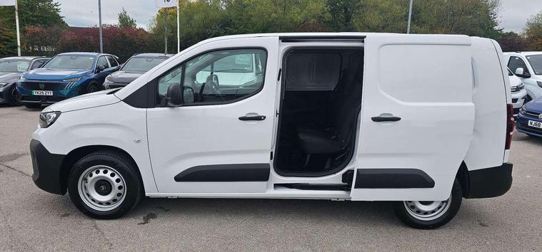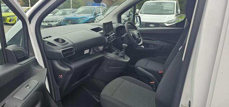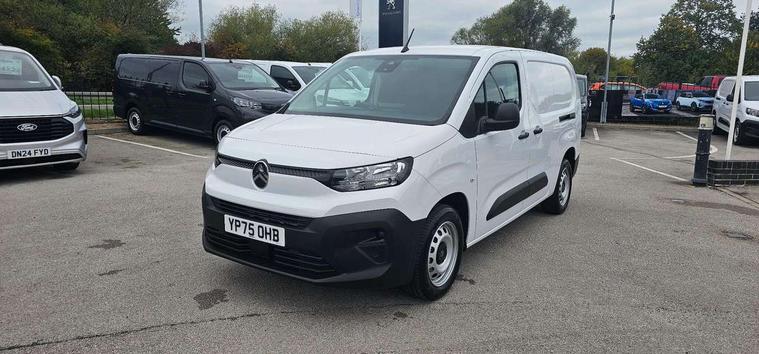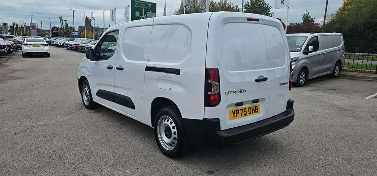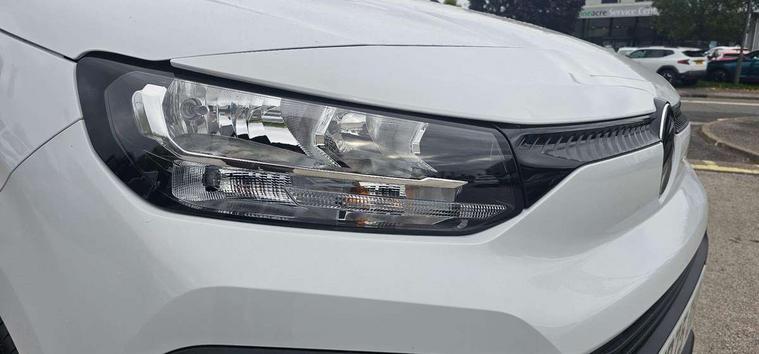Citroen connect box with emergency and assistance system, Connected services, Cruise control with programmable speed limiter, Driver attention alert, Electric power assisted steering (EPAS), Intelligent speed assistance speed limit information, Lane keep assist, Lockable fuel cap, Multi-function trip computer, Rear parking sensor, Rev counter with maintenance and gear efficiency indicators (GEI), Tyre pressure monitor, Short antenna (200mm), Automatic illumination of headlight control, Black door handles, Black door mirrors, Black front and rear bumpers, Black side rubbing strips, Eco LED headlamps with integrated daytime running lights, Electric front windows with one touch operation, Electrically adjustable door mirrors with temperature sensor, High beam assist, High level third brake light, Manually folding door mirrors, Side protection in black, Sliding door rail cover with short black trim, Twin sliding side doors, Visible VIN at windscreen base, 12 volt socket in dashboard, 4 way reach, rake passenger seat with adjustable headrest and storage/trays on back of seat, 6 floor mounted load securing rings, 6 way adjustable drivers seat with adjustable headrest includes lumbar adjustment and armrest, Chrome air vents, Chrome interior door handle, Curitiba cloth upholstery, Front door pockets with 1.5L bottle holder, Hard plastic floor protection in cabin, Hard plastic floor protection in load area, Integrated steering wheel audio controls, Manual air conditioning, Overhead storage shelf in cabin, Reach and rake adjustable steering column, Sport steering wheel, Three seats second row bench with rear lap and diagonal inertia reel seatbelts, Two position moveable ladder frame bulkhead, 3x3 point seatbelts, Automatic activation of hazard warning lights on major deceleration, Curtain airbags, Door opening warning and audible lights on warning, Driver and front passenger airbags, Driver/passenger seatbelt unfastened warning, Side airbags, Dashboard mounted central locking push button and auto locking above 7mph, Primary + spare folding keys, Remote central locking with deadlocking, Selective cab and load area locking via 3-button plip remote control key, Thatcham approved rolling code transponder immobiliser, Advanced emergency braking system (AEBS), Electronic Stability Control and ABS with hill start assist, EBA and EBFD, Manual parking brake, 16" grey steel wheels with black half hubcap,