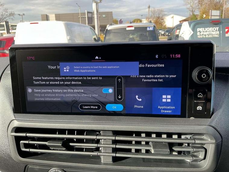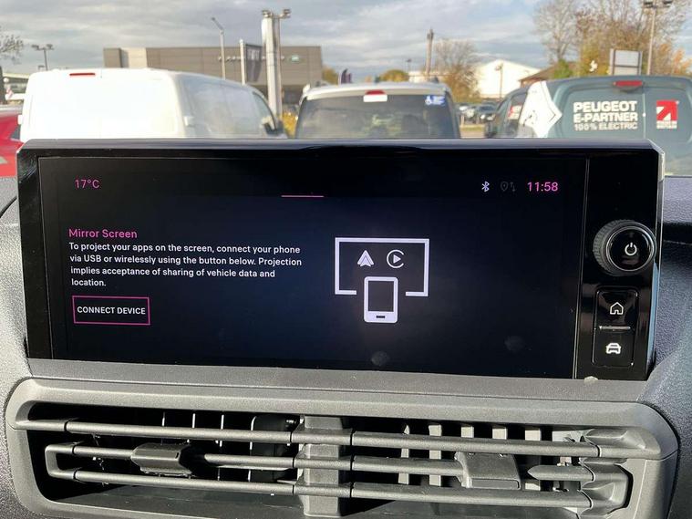 10" digital instrumental cluster, Connectivity via BTA with RCE, Driver Attention Alert, level - 3, Electronic power steering (EPS), Intelligent Speed Assist, Lane keeping assist, Multi-function trip computer, Rear parking distance sensor, TPMS (Tyre pressure monitoring system), Audio controls mounted on steering wheel, Flexible short antenna (200mm), Two speakers and two tweeters, Automatic headlamps on/off, Black front and rear bumpers, side protection, sliding door rail cover and exterior door handles, Electrically adjustable + heated door mirrors, Front electric windows with one touch facility, Halogen headlamp with integrated daytime running lights, High beam assist, Laminated acoustic windscreen, Offside and nearside sliding side access doors, Rain sensitive windscreen wipers, Twin solid rear doors, 12V socket in lower glove box (1 only in cabin), Air recirculation facility, Chilled glovebox facility, Driver's seat armrest, Ergonomic 6-way adjustable driver's seat with reach, rake, height and lumbar adjustment, Fabric upholstery, Fixed floor mounted load restraint lashing eyes x8, Interior roof trim, Manual air conditioning, Overhead console with 1 ceiling lamp (dome type and 3 lamps), TPO plastic flooring, USB socket in cabin (dashboard), Automatic fuel cut-off and door unlocking in event of accident, Driver and passenger airbags, Height adjustable lap and diagonal inertia reel front seatbelts, Passenger airbag can be deactivated manually, Dashboard mounted central locking push button and auto locking above 7mph, Immobiliser, Remote control central deadlocking, Selective door locking, 22.5 litres AdBlue tank, 70 litre fuel tank, ABS, Advanced emergency braking system (AEBS), EBA, Electronic brake force distribution (EBFD), Engine start/stop system, ESC, Hill start assist, Mistral black dashboard trim with liquid paladium decor strip in mid-section,
