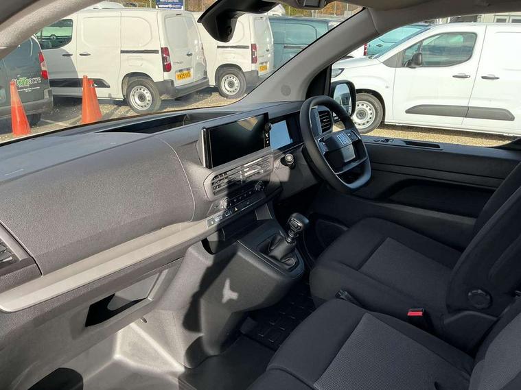 10" digital instrumental cluster, Connectivity via BTA with RCE, Driver Attention Alert, level - 3, Electronic power steering (EPS), Intelligent Speed Assist, Lane keeping assist, Multi-function trip computer, Rear parking distance sensor, TPMS (Tyre pressure monitoring system), Audio controls mounted on steering wheel, Flexible short antenna (200mm), Two speakers and two tweeters, Automatic headlamps on/off, Black front and rear bumpers, side protection, sliding door rail cover and exterior door handles, Electrically adjustable + heated door mirrors, Front electric windows with one touch facility, Halogen headlamp with integrated daytime running lights, High beam assist, Laminated acoustic windscreen, Offside and nearside sliding side access doors, Rain sensitive windscreen wipers, Twin solid rear doors, 12V socket in lower glove box (1 only in cabin), Air recirculation facility, Chilled glovebox facility, Driver's seat armrest, Ergonomic 6-way adjustable driver's seat with reach, rake, height and lumbar adjustment, Fabric upholstery, Fixed floor mounted load restraint lashing eyes x8, Interior roof trim, Manual air conditioning, Overhead console with 1 ceiling lamp (dome type and 3 lamps), TPO plastic flooring, USB socket in cabin (dashboard), Automatic fuel cut-off and door unlocking in event of accident, Driver and passenger airbags, Height adjustable lap and diagonal inertia reel front seatbelts, Passenger airbag can be deactivated manually, Dashboard mounted central locking push button and auto locking above 7mph, Immobiliser, Remote control central deadlocking, Selective door locking, 22.5 litres AdBlue tank, 70 litre fuel tank, ABS, Advanced emergency braking system (AEBS), EBA, Electronic brake force distribution (EBFD), Engine start/stop system, ESC, Hill start assist, Mistral black dashboard trim with liquid paladium decor strip in mid-section,