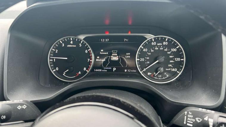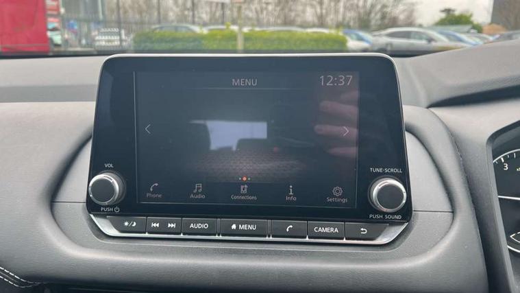7" High definition full colour TFT screen combimeter, Android auto/Apple CarPlay (Wired), Blind spot warning, Drive modes (sport, normal, eco), Electric speed sensitive power steering, Emergency and breakdown call, Idle stop/start system, Intelligent Cruise control (ICC), Intelligent driver alert system, Intelligent forward collision warning, Intelligent lane intervention, Lane departure prevention, Lane departure warning system, Maximum speed limiter, Nissan connect 8" touchscreen infotainment system, Push button starter, Rear cross traffic alert, Rear parking sensors, Rear view camera, Traffic sign recognition with legal speed adjustment, Trip computer, 6 speakers, AM/FM audio system with DAB, Bluetooth audio streaming, Front USB connections (Type-A and Type-C), Auto dimming rear view mirror, Auto rear wiper when reversing, Automatic hazard signal with emergency stop signal, Body colour mirror caps, Body coloured door handles, Bodyside mouldings, Chrome side window finisher, Door handle with button, Electric auto folding door mirrors, Electrically adjustable and heated door mirrors with LED turn indicator, Follow me home headlights, High beam assist, Intelligent auto headlights, LED daytime running lights, LED Headlights, LED rear lights, One touch front and rear electric windows with remote opening and closing, Partially body coloured bumpers, Rear reversing light (bulb lighting), Rear roof spoiler, Rear side wing doors, Shark fin antenna, Splash free rain sensing wipers, Three blink turn signal, 12v power socket in dashboard and luggage, 2x Rear coat hooks, 3 bench rear seats in 2nd row, 3 rear headrests, 4 folding assist grip, 6-way manually adjustable driver's seat, 60/40 split folding rear seat bench, Centre console storage tray, Chrome interior door handles, Cloth monoform upholstery, Driver and front passenger sunvisors with illuminated vanity mirrors, Driver seat back pocket, Dual zone automatic climate control with pollen filter, Electrically adjustable lumbar support for driver, Front and rear door storage, Front centre console and armrest, Front cupholders x 2, Front door with bottle holders, Glovebox with light, Hard trunk cover, Height adjustable driver's seat, Height adjustable front headrests, Height adjustable passenger seat, Leather steering wheel, Luggage space lighting, Manually adjustable passenger (slide recline + lifter), Multifunction steering wheel, Passenger seat back pocket, Rear armrest with 2 cupholders, Rear door bottle holders, Single front passenger seat, Steering wheel gearshift paddles, Steering wheel switches, Sunglasses holder, Tilt/telescopic adjustable steering wheel, Two rear isofix child seat anchorage points with top tether, 3x3 point rear seatbelt pretensioners + load limiters, ABS with EBD and brake assist, Active brake limited slip, Auto hold function, Child locks on rear doors, Curtain and front side, far side airbags, Driver and passenger airbags, Driver, passenger and 2nd row rear seat belt reminder, Electronic parking brake, Front seatbelt pretensioners + load limiters, Height adjustable front seatbelts, Hill start assist, Intelligent blind spot intervention, Intelligent front emergency braking with pedestrian, cyclist recognition and junction assist, Intelligent rear automatic braking, Tyre pressure monitoring system, Vehicle dynamic control, Capless fuel filler, Engine immobiliser, Intelligent Key, Remote central door locking with deadlocking, Thatcham Cat.1 alarm, Interior instrumental panel A finisher, 17" Alloy wheels, Tyre puncture repair kit,