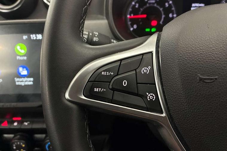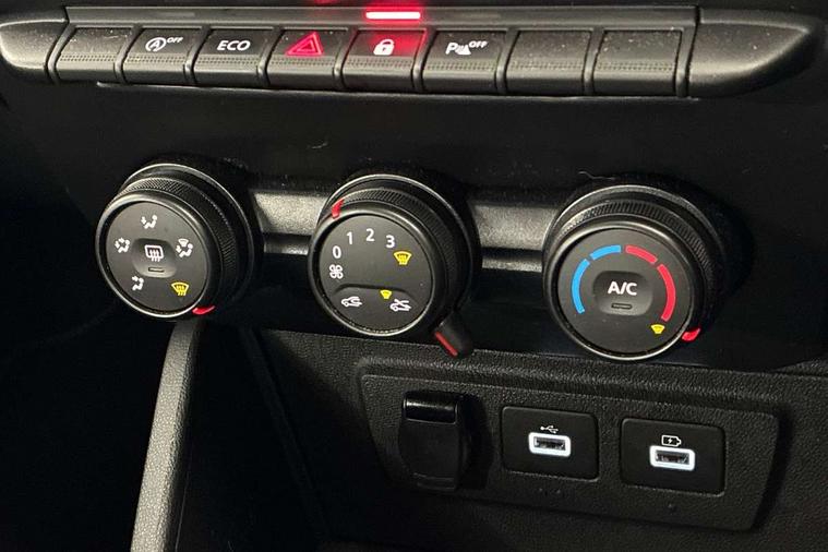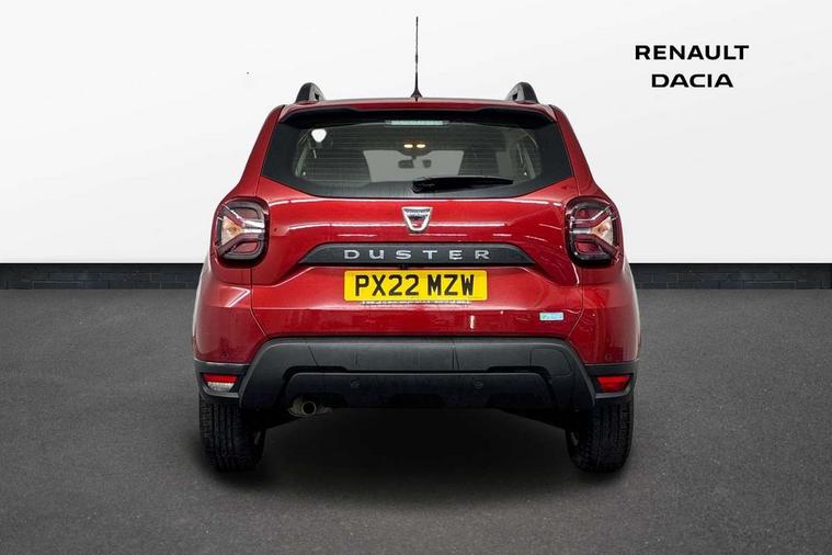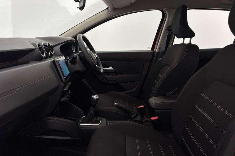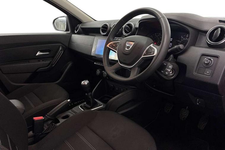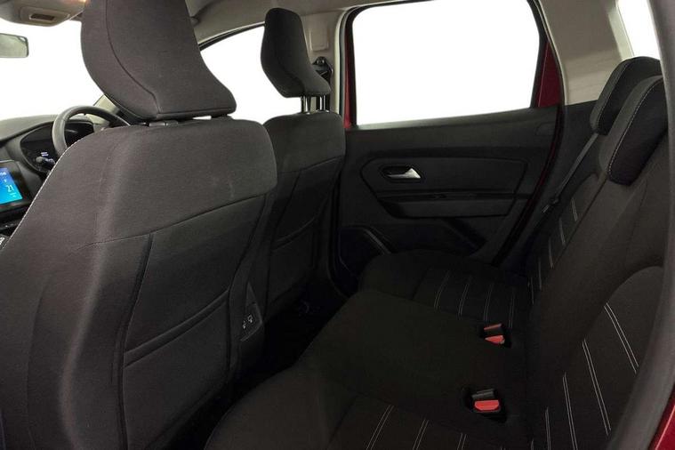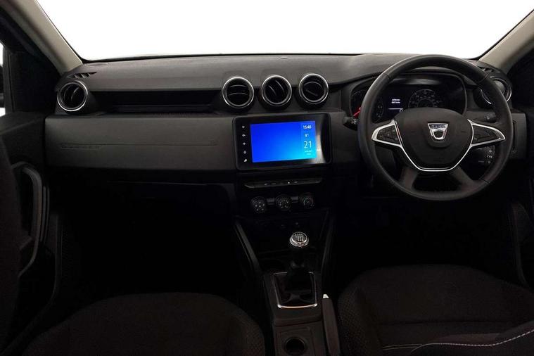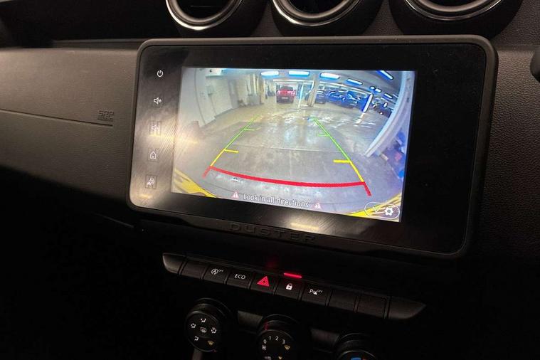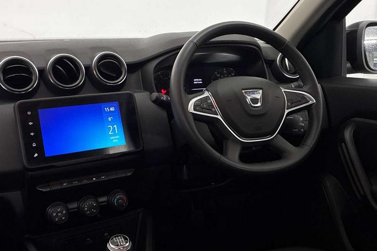 4x4 monitor with altimeter, Compass functional at 0km/h, Cruise control and speed limiter, Dacia instrument cluster, eCall emergency system, Eco mode, Electric power assisted steering, On board computer, odometer, trip computer, average fuel consumption, average speed, service indicator, outside temperature gauge, Rear parking sensors and reverse camera, Rev counter, Stop/start system, 8" Media display with smartphone replication, 2 usb sockets and 6 speakers, Dacia plug and radio/MP3/USB/bluetooth/DAB/steering wheel control, 3 speed windscreen wipers, Black door mirrors, Black longitudinal roof bars with Duster inscription, Black side sills, Black/satin chrome tailgate trim with Duster inscription in black background and lettering, Body coloured door handles, Chrome front grille with hot stamping, Chrome logo surround on steering wheel, Dusk sensor, Electric adjustable/heated door mirrors, Electric front windows, Electric rear windows, Front and rear body coloured bumpers, Front door sill protection strip, Front fog lights, Heated rear window, High level third rear brake light, LED automatically switched on - In main headlights, LED daytime running lights, Rain sensor, Rear side wing doors, Rear spoiler, Rear wash/wipe, Tinted windows, Underbody protection skid plates, Y shaped LED headlights with rear LED lights, 3 rear height adjustable headrests, 3 seat bench in 2nd row, 60/40 split folding rear seat, Backlighted steering wheel buttons, Boot light, Driver seat lumbar adjustment, Fabric decorative insert on door panels, Fabric upholstery, Front head restraints, Front passenger reading light, Gear shift indicator, Glovebox light, Height adjustable driver seat, Height adjustable front and rear headrests, Height and depth adjustable steering wheel, High centre console with driver armrest, Isofix points for child seats in both outer rear seats, Manual air conditioning, Map pocket on front seat backs, Passenger sunvisor with vanity mirror, Rear passenger reading light, Satin chrome interior door handles, Satin chrome lower steering wheel insert, Single front passenger seat, Soft feel leather steering wheel, 3x3 point rear seatbelts, ABS and Emergency brake assist, ASR traction control with Electronic stability control, Child locks on rear doors, Door open visual and audible warning, Driver airbag, Driver and passenger seatbelt not fastened - visual and audible warning, EBD - Electronic brakeforce distribution, Front passenger airbag, Front passenger airbag deactivation, Front seatbelt pretensioners, Front side airbags, Height adjustable front seatbelts, Hill start assist, Tyre pressure monitor, Remote central locking, Thatcham approved engine immobiliser, Dark carbon central console surround, Matt black central console fascia, Piano black decorative insert on door panels, Satin chrome air vent surround, 16" alloy wheels, Tyre inflation kit,