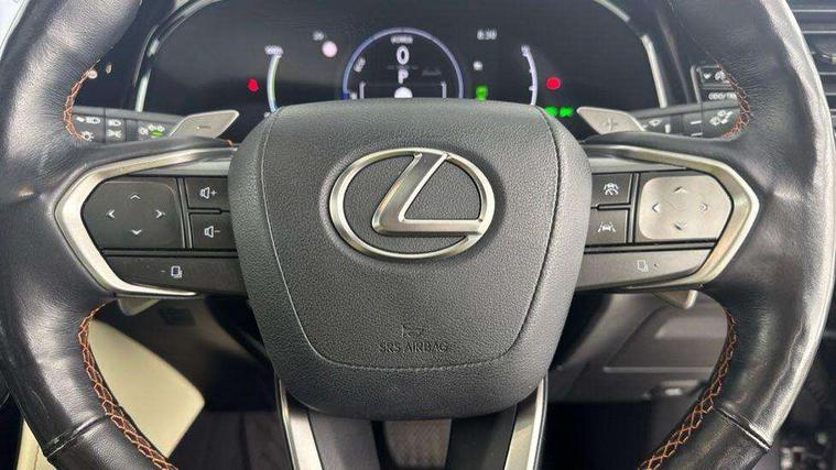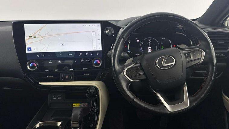 360 degree panoramic view monitor, 4 driving modes EV/Eco/Normal/Sport, 7" display in instrument binnacle, Blind spot monitoring with rear cross traffic alert, Bluetooth telephone connectivity, eCall emergency system, Electric speed sensitive power steering, Extended lexus safety+ system includes front cross traffic alert and lane change assist, Fully automated parking, Head up Display, Intelligent parking sensors - 4 front and 4 rear, Lane change flasher function, Lexus link connect - Cloud based navigation, cloud based voice assistant, always online, 14" HD touchscreen, embedded nav and faster CPU, Push button starter, Reversing camera with back guidelines, Service interval indicator, Tazuna cockpit with 7" improved meters display, 10" HUD and capacitive touch steering wheel switches, Wireless Apple CarPlay and wired Android Auto, Wireless Smartphone charger, 6.6 kW onboard charger, All Wheel Drive (AWD), Hybrid automatic transmission, Vehicle Dynamics Integrated Management (VDIM), Vehicle Stability Control (VSC), 10 speakers, 4 USB ports - 2 front, one USB C, 2 rear USB C, DAB Digital radio, 4 eye LED headlight with adaptive high beam, Automatic headlights, Digital rear view mirror, Double hidden exhaust pipes, Electric sunroof, Front and rear one touch power windows, with anti-jam protection, Headlight cleaners, Heated, auto-folding, auto-dimming outside mirrors with reverse tilt function and turn indicators, Illuminated door handles with puddle light, LED brake lights and rear lights with emergency brake signal, LED cornering lights, LED daytime running lights, LED front fog lights, LED Indicators, Power back door with kick sensor, Privacy glass, rear doors and tailgate, Rain sensor windscreen wipers, Rear side wing doors, Rear wiper, 12V accessory port centre console and luggage compartment, 2 cupholders in front centre console, 2 x fixed shopping bag hooks in boot, 2 x sun visors with vanity mirror and lamp, 3 seat bench in 2nd row, 4 way electrical lumbar adjustment for driver, 4 x tie down hooks in the boot, 60/40 split folding rear seat, 8 way driver/passenger electrically adjustable front seats, Adjustable rear seat backrest, Card holder installed in driver and passengers sun visors, Centre armrest with storage box, Door courtesy lights, Driver seat memory function, Dual zone climate control air conditioning system with humidity sensor, Front and rear head restraints, Front and rear textile carpet mats, Front passenger seat, Heated and ventilated front seats, Heated rear seats, Heated steering wheel, Leather gear lever, LED ambient lighting, LED interior illumination, Power adjustable leather steering wheel with paddle shifts, Rear centre armrest with 2 cupholders, Smooth leather upholstery, Whiplash Injury Lessening (WIL) feature (active headrest) for seats, 2 x Isofix child rear seat restraints, 3 point ELR front seatbelts with pretensioners, 3x3 point rear seat belts, ABS, Adjustable seat belt anchor points, Driver and front passenger 2 stage airbag, Driver/front passenger side airbags, Drivers knee airbag, E-Latch with safe exit assist, EBD + Brake Assist, ECB (Electronically Controlled Brake System), Electronic parking brake, Front and rear curtain shield airbags, Front center airbag, Front passenger seat cushion airbag, Hill assist control, Lexus safety system - dynamic radar cruise control, pre collision system day and night, lane tracing assist, road sign, OTA, Manual rear child locks, Passenger airbag cut-off device, Traction control, Tyre pressure warning, 2 x remote key fobs, Anti-theft system with alarm, intrusion sensor, glass breakage sensor, tilt sensor and engine immobiliser, Locking wheel nuts, Smart card key, Smart keyless entry, Speed sensitive auto door locking, Two motion door lock with double lock, VIN Window etching, Sumi blackwood inlay,