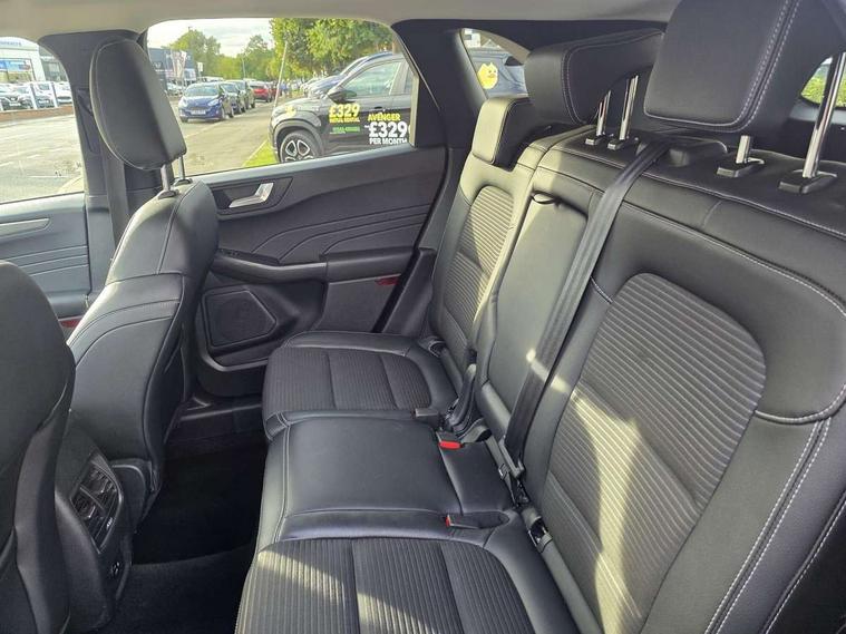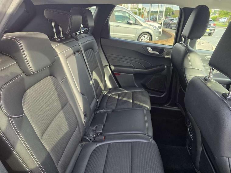 12.3" digital colour instrument cluster, Ford easy fuel, Ford SYNC 3 with 8" TFT LCD touchscreen, App Link, andriod auto/apple carPlay, emergency assistance and navigation with Ford pass connect, Front and rear parking sensors, Hands free power tailgate, Lane keeping aid with lane departure warning, Power assist steering, Rear view camera, Selectable drive modes, Service interval indicator, Standard suspension, Twist beam rear suspension, B&O premium audio system with 10 speakers and subwoofer, 2 USB ports, DAB radio/CD, Auto dimming rear view mirror, Auto headlamps with high and low beam, Auto wipers, Front LED fog lamps, LED daytime running lights, LED rear lights, Power folding heated door mirrors with puddle lights, Power front/rear windows with global close, Privacy glass, Quickclear heated windscreen, Rear spoiler, Silver roof rails, Third brake light, Twin exhausts, 10 way power adjustable drivers seat, 2nd row sliding seats with 60:40 split, 8 way manual passenger seat including lumbar support and height adjust, Ambient lighting, Centre console with electronic parking brake, Dual electronic automatic temperature control, Front and rear floor mats, Front and rear head restraints, Partial premium touch sensico leather upholstery with black cloth inserts, Rear charging point, Sports seats, 3x3 point rear seatbelts, Airbags - front driver/passenger, front and rear curtain, Drivers knee airbag, Electronic stability control (ESC) and ABS, Ford MyKey Gen 2 safety system, Manual child proof rear door locks, Post collision braking, Pre collision assist with autonomous emergency braking, Rear seat Occupancy alert, Tyre pressure monitoring system, Engine immobiliser, Keyless entry and Ford power start button (Keyless start), Locking wheel nuts, Remote powered central double locking doors, Thatcham category 1 alarm,