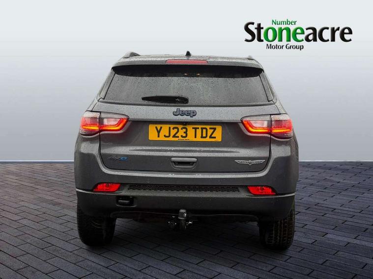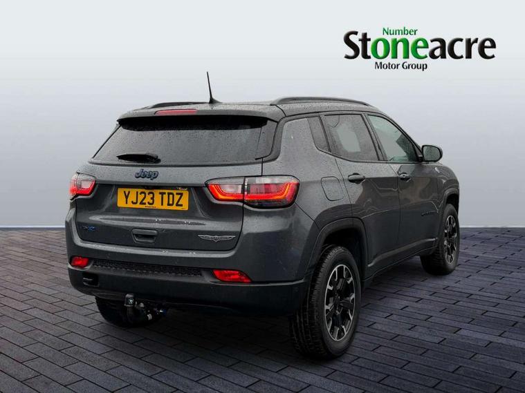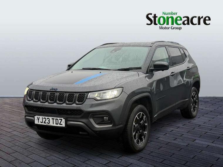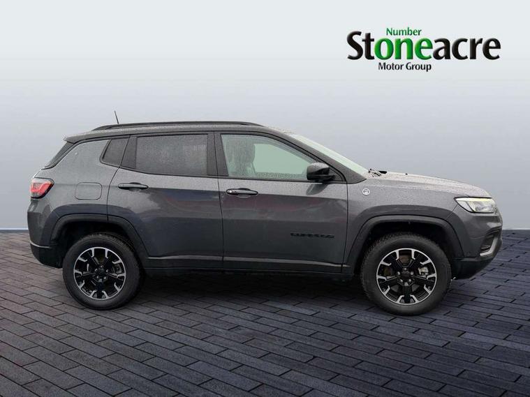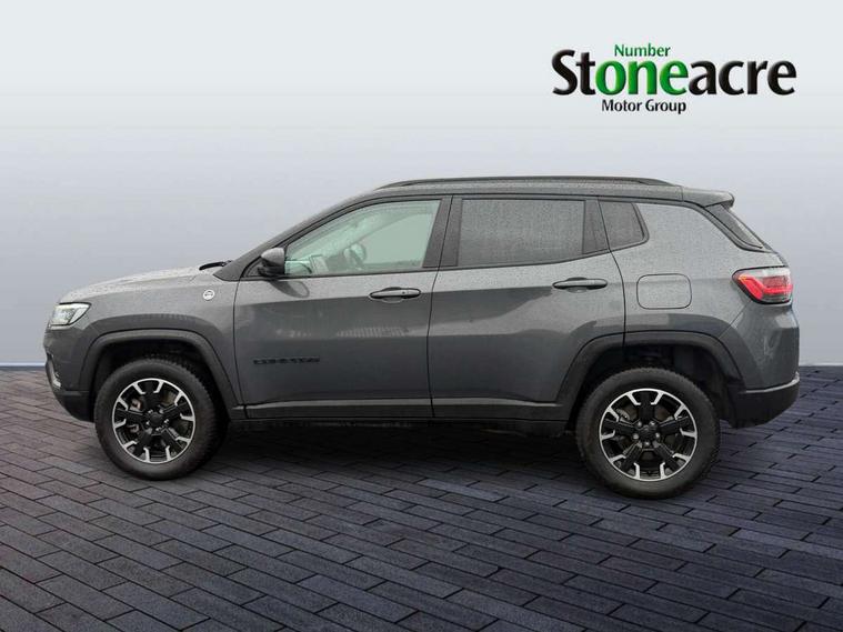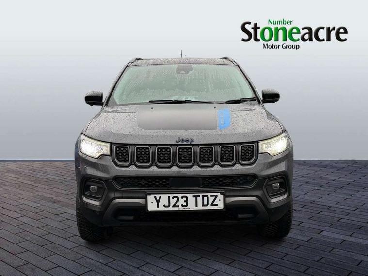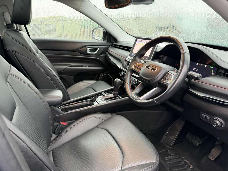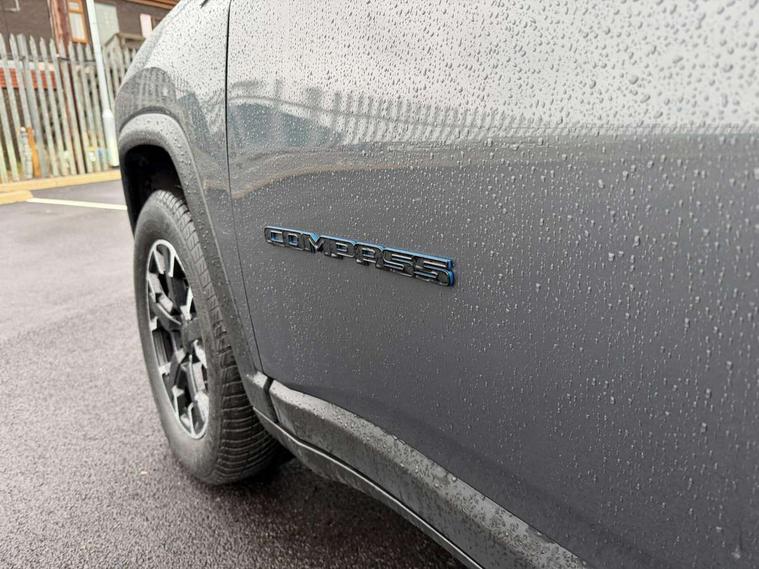 160 MPH primary speedometer, Active lane management, Active speed limiting device, Adaptive cruise control with Stop and Go, Drowsy driver detection, E-call, Electric power steering, English owners handbook, Full speed forward collision warning plus mitigation, Instrument cluster- 10.25" TFT Colour display, Instrument panel, Intelligent speed assist, Media centre electronic storage, Outside temperature display, Selec-Terrain system for Trailhawk with sport mode, Tachometer, TBM - Connected services (e-call), Traffic sign recognition (TSR), Vehicle information centre, Wireless charging pad, 7.4 kW onboard charger, Battery run - down protection, Battery skid plate, Boost and load point shift, CO2 improvement, E- launch, E-creeping, E-Parking, E-Queueing, Electric drive, Electronic roll mitigation, EV/PHEV mode 2 charging cable, Off road suspension, Bluetooth audio streaming, DAB Digital radio, Global telematics box module (TBM), Media hub (USB A-C TYPE), Steering wheel mounted audio controls, Uconnect 5 R1 Radio - 10.1" display without navigation, USB A and C type - second row, USB host flip, 4XE badge/e-Hybrid badge, Accent/body colour bumpers, Aspherical driver's exterior mirror, Auto dimming rear view mirror, Auto high beam, Automatic headlights, Belly pan - underbody protection, Black mic grille/neutral gray rings, Black side roof rails, Black window surrounds, Body colour door handles, Carry back MHEV, Coastdown and run-in optimization, Compass badge, Deep tint privacy glass, Door mirrors: power adjustable and folding, heated with auto folding function and indicators, Exterior door mirrors with heating element, Front fascia/belly pan skid plate, Front/rear grey insert, Gloss black badges, Gloss black exterior door mirrors, Headlamp leveling system, Headlamp off time delay, Heated rear window, Jeep badge, LED front fog lamps, LED rear lights, LED reflector headlamps high with segmented DRL, LED tail lights, Lower bodyside cladding in black, Neutral gray headlamp bezels, Neutral grey exterior accents, Off road bumper, Partial body cover protection, Power windows - driver and passenger express up/down, Rain sensitive windscreen wipers, Rear fascia, Rear fog lamps, Rear side wing doors, Rear windshield washer/wiper, Red rear tow hook, Removable short mast antenna, Skid plate shield - front suspension, Skid plate shield - fuel tank, Skid plate shield - transfer case, Skid plate shield - transmission, Smartbeam headlights, Third brake light, Trail rated badges, Trailer sway damping, Trailhawk badges, Trailhawk hood decal, UK front number plate bracket, Windshield wiper de-icer, 12V auxiliary power outlet - 2nd row, 3 rear seat head restraints, 3 seat bench in 2nd row, 60/40 split folding rear seat, All weather floormats with Jeep logo, Cargo area lights, Cargo compartment carpet, Cargo compartment cover, Cargo compartment organiser, Cargo compartment reversible mat, Cargo load floor, Cargo tie down loops, Centre console with sliding armrest, Centre rear 3 point seat belt, Child seat anchorage points, Coat hooks, Dash insulation, Driver assist handle, Dual zone temperature control with preconditioning capability and heater, Fold flat front passenger seat, Front head restraints, Front height-adjust seatbelts, Front map pocket LED lamps, Front map reading lights, Front seats back map pockets, Full length centre console, Glovebox light, Glovebox with damped soft close door, Heated front seats, Heated steering wheel, Illuminated door entry system, Interior door handle LED lamps, Internal rear grab handles, Leather wrapped gear knob, No Alternator, Overhead console, Overhead dome LED lamps, Passenger assist handles, Power 2-way driver lumbar adjustment, Rear air conditioning and heater vents, Rear seat armrest with cupholder, Red interior stitching accents, Single front passenger seat, Spare wheel storage insulation, Sunvisors with illuminated vanity mirrors, Tilt/telescopic steering column, Vinyl wrap steering wheel, Navigation pack - Jeep, Power pack - Jeep, Ventilated leather seats pack - Compass Trailhawk, AEB with pedestrian and cyclist detection, All speed traction control, Automatic electronic hold brake, Driver's front airbag, Dual note electric horns, Dual tyre pressure - turn changes, Electrical steering column shaft lock, Electronic parking brake, Electronic stability control, Energy recovery system, Front and rear side curtain airbags, Front passenger airbag, Front passenger airbag detector, Front side airbags, Hill descent control, Hill start assist, Jeep call assistance label, Passenger airbag deactivation switch, Rain brake support, Rear door child protection locks, Rear seat belt reminder, Tyre pressure monitoring display, Capless fuel filler, Occupant detection system, Passive entry and keyless go (Key fob without panic button), Power locking fuel filler door, Premium security alarm, Front and rear air vents, Speakers in satin chrome silver, 17" Alloy wheels, Temporary use spare tyre with non matching steel wheel,