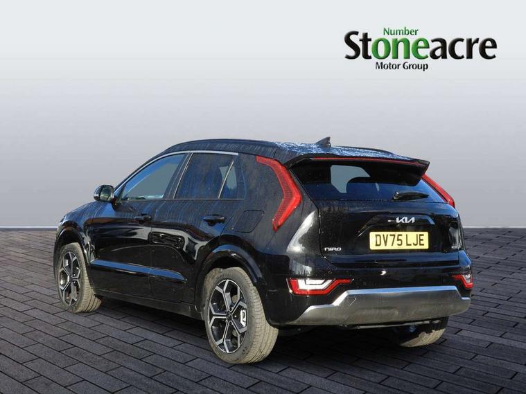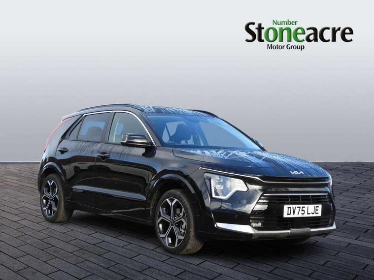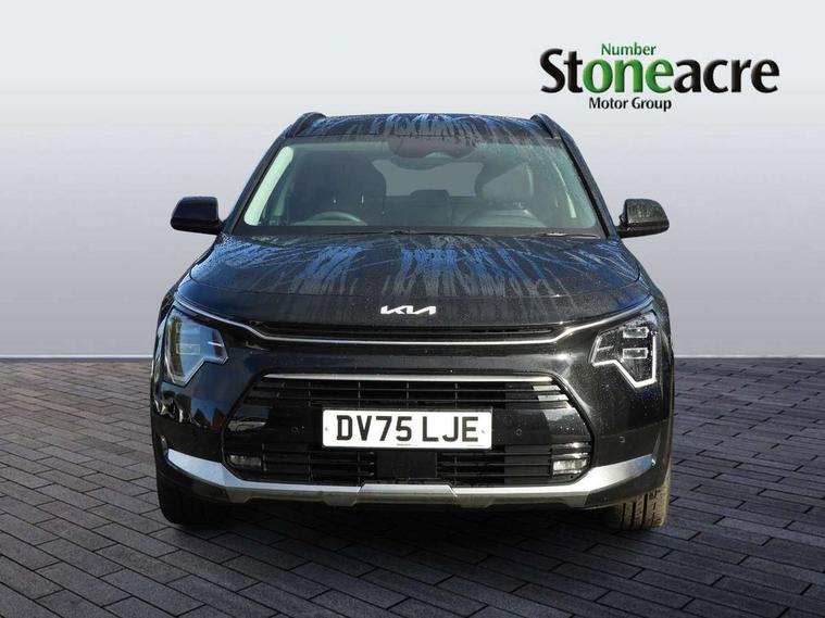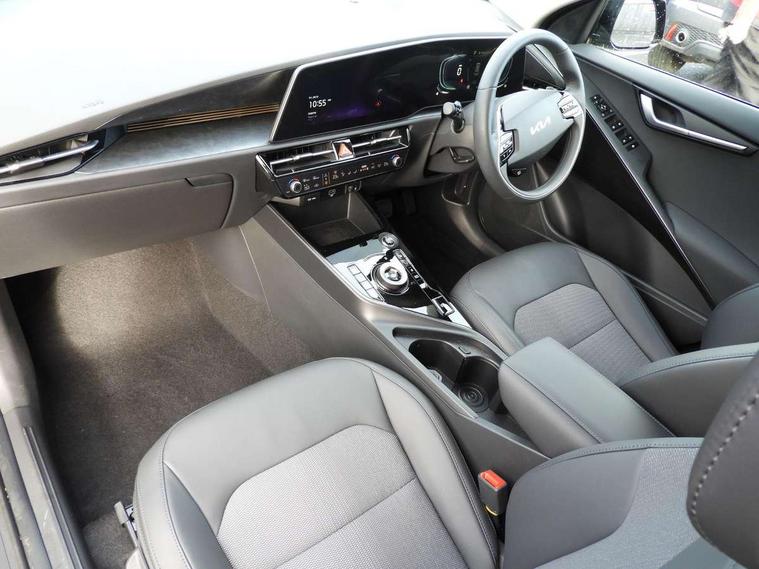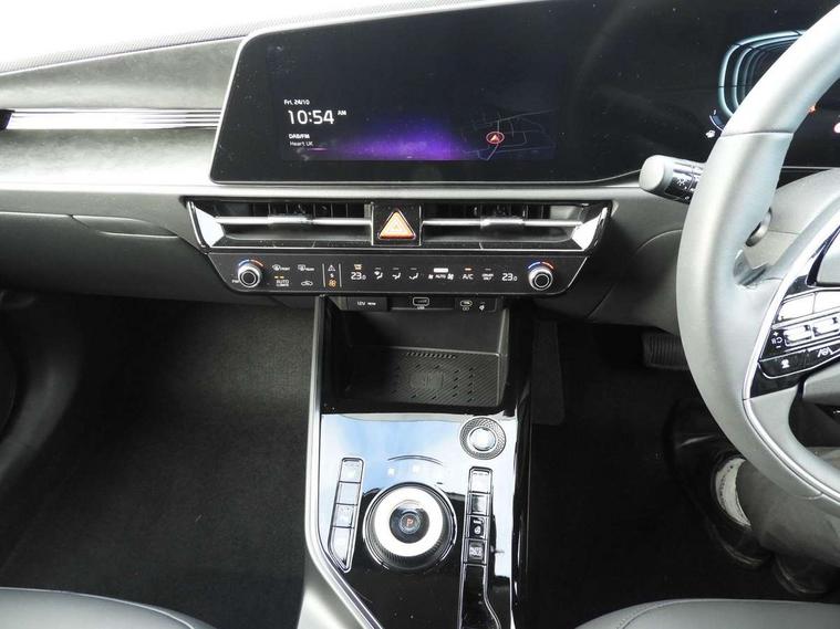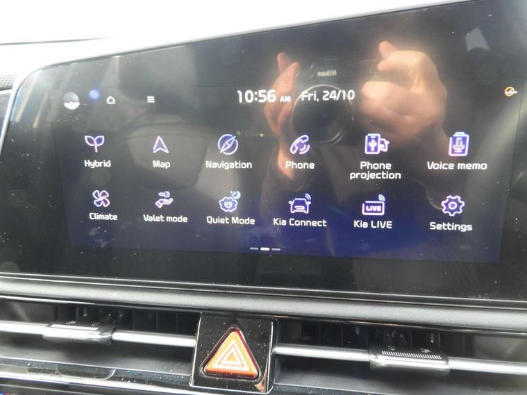 10.25" touchscreen satellite navigation, 4.2" driver display screen, Apple car play/Android Auto, Blind spot collision avoidance assist, Bluetooth connection, Drive mode select, E-call, Emergency stop signalling system, Forward Collision-Avoidance Assist (FCA) 1.5 - City/Pedestrian/Cyclist/Junction turning, Front parking sensors, Highway Driving Assist (HDA), Intelligent speed limit assist, Kia connect, Lane Following Assist (LFA), Lane keep assist, Motor driven power steering, Rear cross traffic collision avoidance assist (RCCA), Rear parking sensors, Reversing camera system, Safe exit warning (SEW), Smart cruise control with stop and go functionality, Tailgate, Trip computer with distance/fuel consumption/average speed, Wireless Smartphone charger, 220v AC Inverter, 'Shark fin' mobile antenna, 6 speakers, DAB Digital radio, Steering wheel mounted controls, USB port for connection of a media device, Acoustic windshield, All round electric windows with drivers and front passenger auto up/down and safety function, Auto dimming rear view mirror, Automatic defog system, Automatic headlight control system, Black window surrounds, Body colour bumpers, Body colour door mirrors, Body colour exterior door handles, Electrically adjustable and heated door mirrors with LED turn indicator, Electrically folding door mirrors, Front and rear chrome skid plates, Front fog lights, Gloss black radiator grille with chrome surround, Gloss black wheel arches, Heated rear window, LED daytime running lights, LED Headlights, LED High mounted brake light, LED rear combination lights, Privacy glass - Rear windows and tailgate, Rain sensing front wipers, Rear fog lights, Rear roof spoiler, Rear side wing doors, Rear wiper, Roof rails, Solar glass windscreen, Welcome and follow-me home light functionality, Windscreen Washer Level Warning, 12V socket in front, 12V socket in luggage compartment, 3 seat bench in 2nd row, 60:40 Split folding rear seats, All-round height adjustable headrests, Artificial leather steering wheel, Automatic air conditioning, Centre console cupholder, Centre console with storage box, Chrome coating interior door handles, Cloth / Artificial leather upholstery, Driver's power adjustable seat, Driver/passenger sunvisors with illuminated vanity mirrors, Drivers seat power lumbar support, Front and rear cabin lights, Front and rear door storage, Front cabin, rear & luggage compartment lights, Front passenger 1 x USB-C charging port, Front passenger seat manual adjustments, Glove box, Heated front seats, Heated steering wheel, ISOFIX Child seat top tethers and anchor fixings, Luggage area load cover, Luggage board, Manually adjustable steering column, Paddle shifts, Rear centre armrest with cupholder, Rear passenger 2 x USB-C charging ports, Seatback pocket - driver, Seatback pocket - front passenger, Shift by wire SBW, Single front passenger seat, Ventiliation ducts to rear compartment, 3 point seatbelts on all seats, ABS, Automatic unlocking of doors in case of impact, Curtain and side airbags, Dual shell horn, Electric parking brake with auto hold function, Electronic stability control, Front airbags, Front passenger airbag cut-off switch, Height adjustable front seatbelts, Hill start assist control (HAC), Knee airbags, Seatbelt reminder warning, Traction control, Tyre pressure monitoring system, Customisable automatic door locking, Customisable automatic door unlocking, Deadlocks, Engine Start/Stop Button with Smart Entry System, Locking wheel nuts, Manual child locks, Rear occupant alert, Smart key with motion sensor, Thatcham category 2 security alarm and immobiliser, Visible vehicle identification number, Warranty - 7 Years/ 100, 000 miles, Centre fascia chopped carbon, 18" Alloy wheels, Tyre mobility kit,