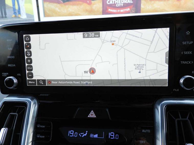10.25" touchscreen satellite navigation, 360 degree around view monitor, Apple car play/Android Auto with voice control, Blind spot collision avoidance assist, Blind spot monitor camera, Customisable Head Up Display, Digital cluster, Digital cockpit, Drive mode selector, Driver attention warning, eCall emergency system, Emergency stop signalling system, External temperature gauge, Forward Collision-Avoidance Assist (FCA) - City/Pedestrian/Cyclist/Junction, Front parking sensors, Highway Driving Assist (HDA), Intelligent speed limit assist, Lane follow assist, Parking collision avoidance assist (PCA), PAS, Rear cross traffic assist, Rear parking sensor, Remote Smart Park Assist (RSPA), Reversing camera system with dynamic guidelines (Integrated into centre fascia screen), Smart cruise control with stop and go functionality, Smart power tailgate, Tailgate, Trip computer, Wireless Smartphone charger, Intelligent All-wheel drive, Self levelling rear suspension, Terrain mode select (Mud, Snow, Sand), Bose premium sound system with 12 speakers, Multi device bluetooth connection with music streaming, Radio/MP3 player, Steering wheel mounted audio controls, USB port for connection of a media device, All round electric windows auto up/down function, Auto dimming rear view mirror, Automatic defog system, Automatic headlights control, Black door mirrors, Black roof rails, Black side sills, wheel arch body mouldings with silver sill detail, Black side window surrounds, Body coloured bumpers, Dark chrome exterior door handles, Dark chrome window surround, Electrically folding/adjustable/heated door mirrors with LED indicators, Front and rear silver skid plates, Gloss black radiator grille, Headlamp levelling, Heated rear window, LED Bi-Function headlights with LED indicators, LED daytime running lights, LED front fog lights, LED High-mounted Brake Light, LED rear combination lights, LED rear fog lights, Metal scuff plates, Panoramic sunroof with tilt/slide function and automatic electric roll blinds, Premium paint, Privacy glass, Rain sensing front wipers, Rear side wing doors, Rear spoiler, Rear wiper, Trailer stability assist, Variable front intermittent wipers, Windscreen Washer Level Warning, 10 way power adjustable driver seat with 4 way electric lumbar support and integrated memory system, 2 seat bench in 3rd row, 2 x 3rd row USB charge port, 2nd row window blinds, 3 bench rear seats in 2nd row, 3 step dual automatic air conditioning, 3 x 2nd row USB charge port and 12V socket, 3 x Front USB charge port and 12V socket, 3 x passenger assist grips, 50/50 split/folding 3rd row of seats, 60:40 split remote folding and reclining 2nd row seats, 8 way power adjustable front passenger seat with 2 way electric lumbar (sliding, reclining, tilt, height), Air conditioning for 3rd row of seats, Ambient lighting, Bespoke leather upholstery, Black headlining, Center fascia premium etching, Centre console cupholder, Centre console storage box and armrest, Cupholders in rear armrest and doors, Front and rear door storage, Front seatback pockets and net, Gearshift paddles, Heated front seats, Heated steering wheel, Height adjustable head restraints, Illuminated glovebox, Interior door lock/unlock function, ISOFIX Child seat top tethers and anchor fixings, Leather door inserts, Leather trimmed steering wheel, Load area cover, Luggage area LED light, Luggage net with hooks, Metal pedals, Outer 2nd row heated seats, Passenger walk-in switch, Rear air vents, Rear centre armrests, Row 3 cupholder, Single front passenger seat, Sunvisors with vanity mirror illumination (Driver and front passenger), Tilt/telescopic adjustable steering wheel, Ventilated front seats, 3 point seatbelts on all seats, ABS/EBD, Active front headrests, Downhill brake control, Electronic parking brake with auto hold, Electronic stability control, Front center airbag, Front passenger airbag cut-off switch, Front seatbelt pretensioners, Height adjustable front seatbelts, Hill start assist control (HAC), Impact sensing auto door unlocking, Multi collision brake assist, Rear door child safety locks, Twin front airbags, Twin front side airbags, Twin side airbags, Tyre pressure monitoring system, Advanced anti theft alarm system, Deadlocks, Engine Start/Stop Button with Smart Entry System, Immobiliser, Locking wheel nuts, Visible vehicle identification number, Gloss black centre console, 19" Alloy wheels, Temporary spare wheel (space saver),