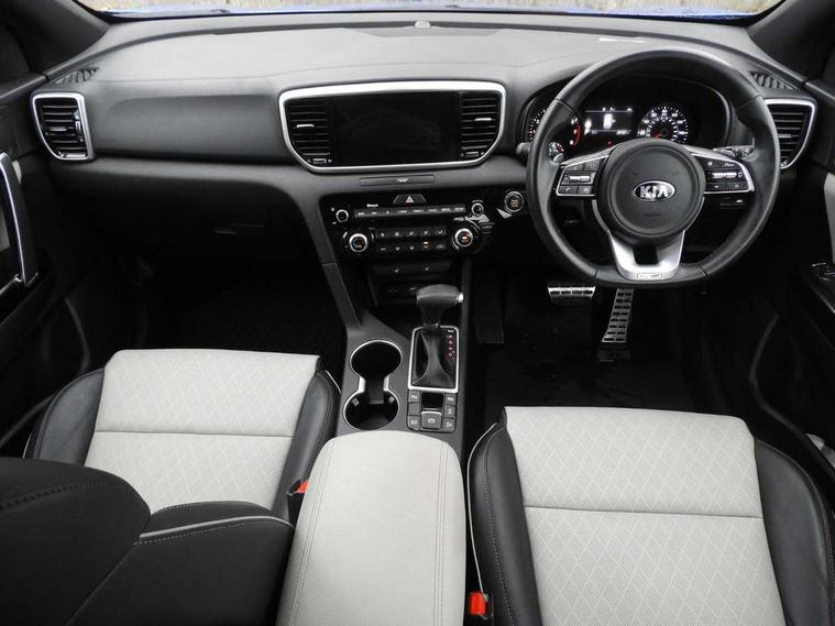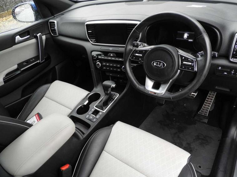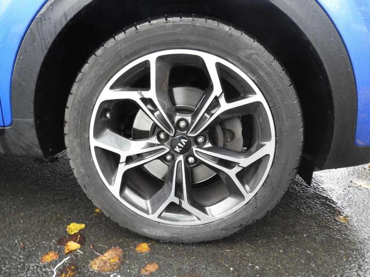 4.2" supervision colour cluster display, 8" touchscreen satellite navigation with European mapping and traffic messaging channel, Android auto with voice control, Apple car play with voice control, Cruise control + speed limiter, Drive mode selector, Driver attention warning, Emergency stop signalling system, Front parking sensor, Kia connected services featuring TomTom live, Lane keep assist, Rear parking sensor, Reversing camera, Speed limit information, Speed sensitive power steering, Telematics system with UVO connect services, Trip computer, Windscreen washer level indicator, Intelligent Stop and Go, 6 speaker audio system, Bluetooth audio streaming, DAB Radio with MP3, Rear USB port, Steering wheel mounted audio controls, USB/iPod/auxiliary input connections, All round electric windows with drivers auto up/down function, Auto dimming rear view mirror, Automatic lighting control, Automatic window defogger, Black wheel arch body mouldings and side sills with dark chrome insert, Body colour door handles with chrome inserts, Body colour door mirrors, Chrome window surround, Dark chrome front bumper insert, Dark chrome front grille surround, Electrically adjustable/heated/folding door mirrors with LED indicators, Front wiper de-icer, High beam assist, High gloss black blade mesh radiator grille, LED Bi-Function headlights, LED daytime running lights, LED ice cube front fog lights, LED rear lights, LED third brake light, Privacy glass - Rear windows and tailgate, Rain sensing front wipers, Rear spoiler, Rear wiper, Roof rails, Shark fin antenna, Silver painted front and rear skid plates, Tinted glass, Trailer stability assist, Welcome and follow-me home light functionality, Wide view drivers door mirror, 12V power in front and rear centre console, 3 x passenger assist grips, 60/40 split folding rear seat, Air filter, All-round height adjustable headrests, Aluminium door scuff plates, Aluminium pedals, Black headlining, Centre cabin light, Centre console storage box, Chrome boot sill guard, D-Shaped sports leather steering wheel and perforated inserts with GT-Line logo, Driver and front passenger side sunvisors with illuminated vanity mirrors, Driver's seat manual height adjust, Drivers seat power lumbar support, Dual zone automatic air conditioning, Front and rear door storage, Front cabin LED map light with sunglasses case, Front door courtesy reflectors, Front seat and rear pockets, Front/rear centre armrests, Gear shift indicator, Glovebox illumination, Heated front and outer rear seats, Interior door lock/unlock function, ISOFIX Child seat top tethers and anchor fixings outer rear seats, Leather trimmed door armrests, Leather trimmed gearshift, Luggage area light, Luggage area load cover, Luggage net with hooks, Paddle shift controls, Rear centre armrest with cupholder, Rear coat hooks, Satin chrome interior door handles, Tilt/telescopic adjustable steering wheel, Two tone leather upholstery, Ventilation ducts to rear compartment, Active front headrests, All round 3-point seatbelts, Anti-lock braking system with electronic brakeforce distribution, Dual front side airbags, Electronic parking brake, Electronic stability control with downhill brake control, Front passenger airbag cut-off switch, Front seatbelt pretensioners + load limiters, Height adjustable front seatbelts, Hill start assist control (HAC), Impact sensing auto door unlocking, Rear door child safety locks, Traction control, Twin curtain airbags with roll over sensor, Twin front airbags, Tyre pressure monitoring system, Advanced anti-theft system including immobiliser and alarm, Door deadlocks, Engine Start/Stop Button with Smart Entry System, Locking wheel nuts, Speed sensitive auto door locking, Visible vehicle identification number, High gloss black centre fascia, 19" alloy Wheels B-type, Tyre mobility kit,