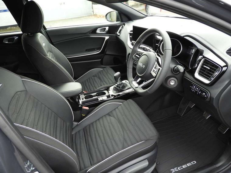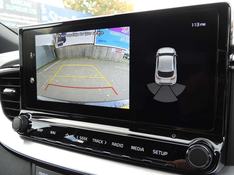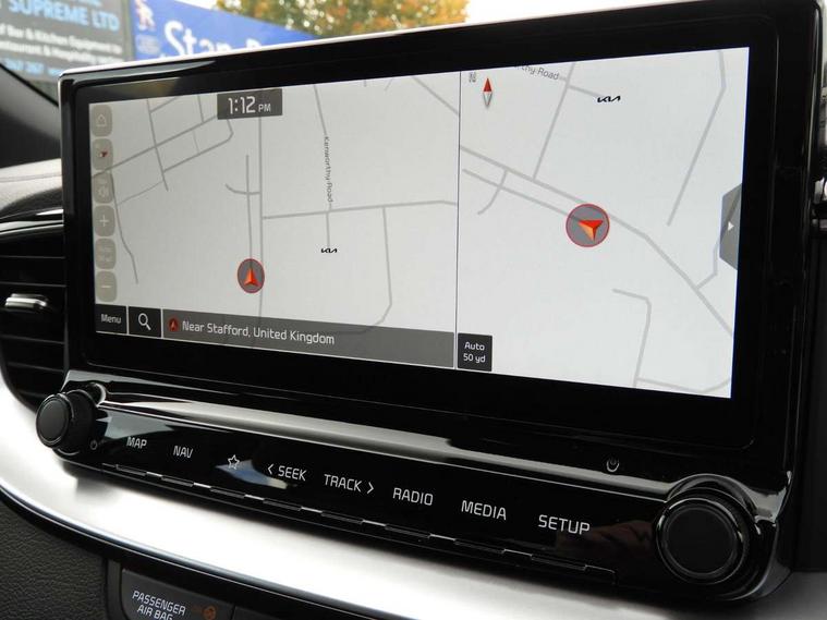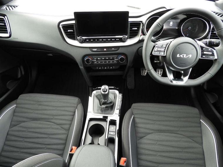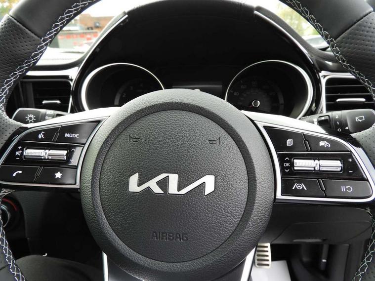 10.25" touchscreen satellite navigation, 4.2" supervision colour cluster display, Apple CarPlay and Android Auto, Bluetooth with Voice Recognition & Music Streaming, Cruise control, Drive mode select (Eco, Normal, Sport), Driver attention warning, Emergency call service, Forward Collision-Avoidance Assist (FCA) 1.0 - City/Pedestrian/Cyclist, Intelligent speed limit assist, Kia connected services, Lane Follow Assist 1.0, Lane keep assist, Motor driven power steering, Rear parking sensor, Reversing camera with dynamic guide lines, Speed limiter, Tailgate, Trip computer, 7 speakers, Front USB port for media connection, Auto dimming rear view mirror, Automatic defog system, Automatic headlights, Black side sill mouldings with body coloured inserts, Black wheel arch trim, Body colour bumpers, Body colour rear roof spoiler, Chrome window surround, Electric front/rear windows with one touch, Electrically folding, adjustable and heated door mirrors with integrated LED indicator lights, Front and rear chrome skid plates, Gloss black door mirrors, GT-Line exterior styling, Heated rear window, High gloss black roof rails, High glossy black and dark chrome radiator grille, LED daytime running lights, LED front fog lights, LED Headlights, LED High-mounted Brake Light, LED rear lights (Honeycomb design with sequential indicators), Privacy glass - Rear windows and tailgate, Rain sensing front wipers, Rear fog lights, Rear side wing doors, Rear wiper, 3 seat bench in 2nd row, 60/40 split folding rear seat, All-round height adjustable headrests, Alloy pedals, Automatic air conditioning, Centre console with storage box, Cloth / Artificial leather upholstery, Driver + front passenger electric lumbar support, Driver's seat height adjuster, Front and luggage area 12V power sockets, Front and rear door storage, Front cabin light with sunglasses case, Front passenger 1 x USB-C charging port, Front Passenger Seat Height Adjuster, GT-Line Interior Styling, Heated front seats, Heated steering wheel, Illuminated driver and front passenger sunvisors with vanity mirror, ISOFIX Child seat top tethers and anchor fixings outer rear seats, Leather steering wheel, Luggage area parcel shelf, Luggage hooks, Manual steering wheel adjustment, Rear and Luggage compartment light, Rear centre armrest with cupholders, Rear passenger 1 x USB-C charging port, Single front passenger seat, All round 3-point seatbelts, Anti-Lock braking system with emergency stop signalling, Electronic parking brake with auto hold function, Electronic stability control (ESC) and vehicle stability management (VSM), Front passenger airbag cut off switch, Front, side and curtain airbags, Height adjustable front seatbelts, Hill start assist control (HAC), Rear door child safety locks, Seatbelt reminder warning, Customisable automatic door locking, Customisable automatic door unlocking, Locking wheel nuts, Smart key with motion sensor, Thatcham category 2 security alarm and immobiliser, Visible vehicle identification number, 18" GT-Line alloy wheels, Tyre mobility kit,