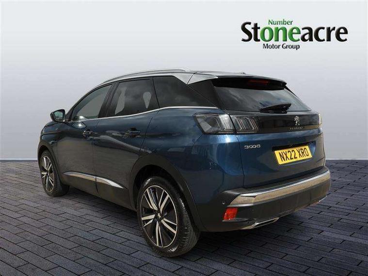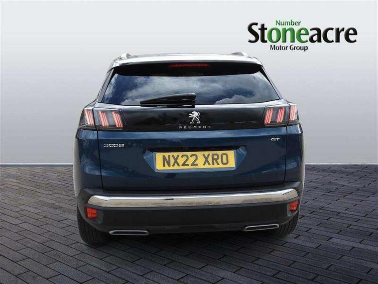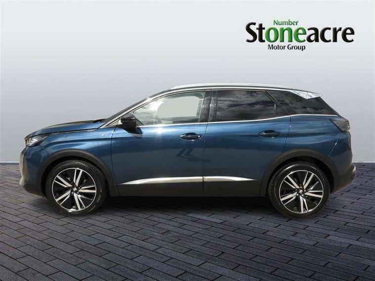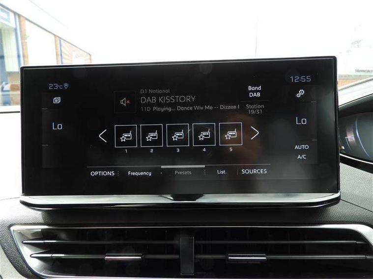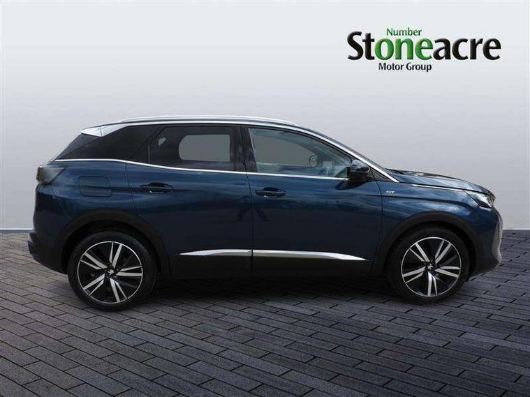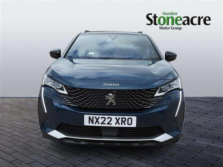 3D connected navigation with 10" HD touchscreen, Bluetooth telephone facility, Drive modes select (Eco, normal and sport), Driving Time Warning (DAA1), Emergency services call system, Extended traffic sign recognition, Exterior temperature indicator with ice warning, Front and rear parking sensors, Mirror screen with mirror link, apple carplay and android auto, Multi function trip computer, Passive blind spot monitoring without Steering correction, PEUGEOT i-Cockpit with 10" high definition capacitive touchscreen, Peugeot i-cockpit with compact multi-function sports steering wheel, PEUGEOT i-Cockpit with configurable 12.3" Head-up digital instrument panel, PEUGEOT SOS and assistance, Rear passenger USB charging sockets (x2) (type A), Speed limit recognition and recommendation, Visio park assist 360 with colour camera system + automatic parking assist, Voice recognition, Dynamic stability control and electronic anti-skid system, Stop/start function, DAB Digital radio, Focal premium HiFi sound system, USB socket, Auto self levelling headlights, Automatic hazard light activation upon heavy brake application, Automatic triggered rear windscreen wiper in reverse gear, Black with chrome detailed front wing trim, Body colour door handles, Body colour rear roof spoiler with stainless steel edging trim, Body protectors (bottom of front and rear bumpers + wheel arches + protection at bottom of doors) in black, Dark tinted rear side windows + tailgate window, Diamond Black door mirror shells, Door mirror mounted LED courtesy floor lighting, Electric folding door mirrors with exterior courtesy LED lighting, Electric operated/heated door mirrors, Fog Mode, Front windscreen wiper with magic wash cleaning system, Full LED headlights with LED fog lights with static cornering function, Gloss black B and C pillar and aerodynamic deflector trim, Gloss black front bumper air scoops, Gloss black rear cluster connecting strip, Gloss black windscreen trim, GT emblem in satin copper (front wings and tailgate), Headlights left on audible warning, Heated rear windscreen with integrated antenna, LED daytime running lights, LED front indicator, LED rear number plate lighting, LED side indicator lights integrated into door mirrors, LED third brake light, One touch electric front/rear windows with pinch protection, Rear LED Peugeot signature 'Claw Effect' lights, Rear side wing doors, Stainless steel roof arches, Twin exhaust tailpipe, 1/3 to 2/3 split folding rear seats, 12V Sockets in dashboard, rear cabin and load area, 2 cupholders in front centre console, 2 cupholders in rear armrest, 2 x Rear reading spotlights, 2x Rear coat hooks, 3x Isofix child seat fittings in the front passenger and outer rear seats, 4 Grab handles retractable and damped, Aikinite stitching in armrest, gear lever and dashboard facia, Aluminium pedals, Blue ambient lighting for connecting zone, Blue ambient lighting to front door panels, central storage and cupholders, Blue ambient lighting to headup instrument panel, Centre front armrest with butterfly wing opening and illuminated storage compartment, Dual zone automatic climate control, Electric power steering with reach and rake adjustable steering column, Flocked front door pocket interior with blue ambient lighting, Flocked glovebox interior, Focal tweeter speaker grilles in Belem bronze metal effect finish, Foldable front passenger seat with picnic table, Footwell illumination, Front interior light with 2 reading spotlights and rear interior light with timer, Front passenger seat manual adjustment (longitudinal and back rest angle), Front seat back map pockets, Gear shift indicator, Illuminated glovebox, Individual left and right controls in boot for seat folding, LED interior lighting in storage spaces and load area, LED roof interior lighting, Mistral floor mats with Aikinite contrast stitching, Mistral full grain perforated leather steering wheel with aikinite stitch detail and satin chrome 'GT' emblem, Rear bench seat with central armrest and ski hatch, Rear centre console ventilation system, Roof lining - Mistral black, Satin chrome dashboard trim, Satin chrome digital instrument panel and touchscreen trim, Satin chrome front door panel recess trim, Satin chrome interior door handles, Satin chrome scorpion's tail and toggle switch trim, Seatbelt not fastened audible and visual alert for front seats, Seatbelt unfastened on the move audible and visual alert for front and rear seats, Sunvisors with illuminated vanity mirrors, Two position boot floor, Drive assist plus pack - 3008, Driver sport pack - 3008 Auto, Safety plus pack with high beam assist - 3008, Visibility pack - 3008, 3x Rear three-point retractable seatbelts with force limiters in the outer rear seats, ABS (Anti-lock Braking System) with EBD (Electronic Brakeforce Distribution) and EBA (Emergency Braking Assistance), Adaptive driver and front passenger airbags with passenger airbag deactivation function, Driver and front passenger side airbags, Electric child locking functionality on rear windows and doors, Electric parking brake, Front and rear curtain airbags, Front optimised safety headrests and 3 x rear retractable headrests with height adjustable, Front three point retractable seatbelts with pre tensioners and force limiters, Front ventilated disc brakes and rear disc brakes, Hill start assist, Two tone horn, Automatic door locking when moving off, Electronic immobiliser, key operated exterior door lock from the left hand door, Perimetric and volumetric alarm with lift and tilt sensor, Peugeot Open and Go System, Remote control central locking with two plip keys, Puncture repair kit including compressor, sealant cartridge and towing eye,