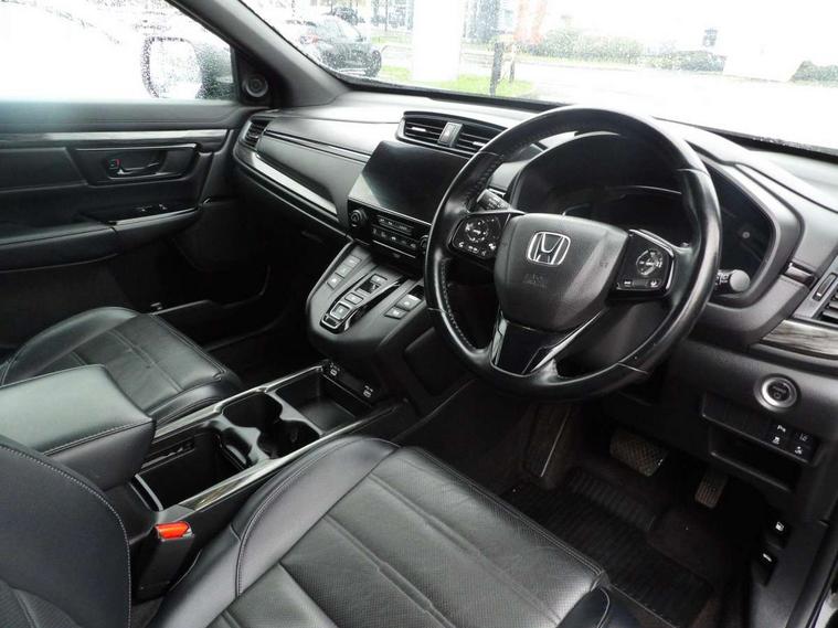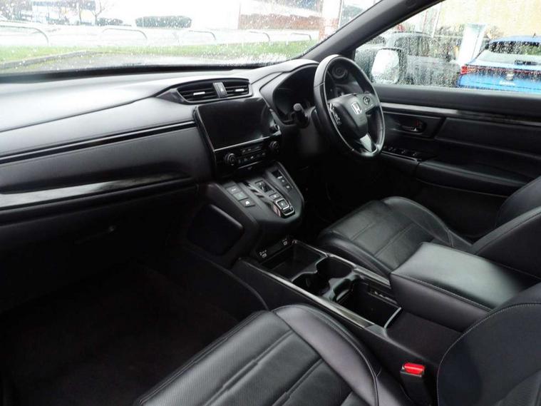 Adaptive cruise control, Agile handling assist, Bluetooth hands free telephone connection, Economy mode, Electric power steering, Emergency stop signalling system, Forward collision warning, Front and rear parking sensors, Honda CONNECT with GARMIN Navigation + 7" touchscreen, DAB radio, Apple CarPlay, Android Auto, Aha app integration and internet browsing, Intelligent multi info display, Lane departure warning system, Lane keep assist system, Low speed following, Rear view camera, Road departure mitigation, Speed limiter, Traffic sign recognition, Vehicle stability assist, 2 USB sockets in rear, 2x USB sockets in front, 9 speakers, DAB Digital radio, Dashboard centre speaker, Front tweeters, Steering wheel mounted controls, Subwoofer, Aspheric door mirrors, Auto dimming rear view mirror, Automatic headlights with dusk sensor, Black mirror caps, Body colour bumpers, Body colour door handles, Dark chrome grille, tailgate, front and rear bumper garnish, Door mirrors tilt when reversing, Electric front windows/one touch facility, Electric rear windows + one touch facility, Electrically adjustable and heated door mirrors, Electrically retractable door mirrors, High beam assist, LED daytime running lights, LED front fog lights, LED Headlights, LED rear lights, Pearlescent paint, Rain sensor, Rear privacy glass, Rear wiper, Shark fin roof aerial, Tailgate spoiler, Welcome home function, 60/40 split folding rear seat, Accessory sockets, Black edition embossed seats, Black headlining, Cargo hooks, Courtesy lights, Driver's electric adjustable lumbar support, Driver/passenger front seatback pockets, Driver/passenger sunvisors with illuminated vanity mirrors, Dual zone automatic climate control, Front centre armrest, Front map lights, Height adjustable driver's seat, Hybrid emblem, Illuminated glovebox, Isofix child seat preparation, Leather steering wheel, Leather upholstery, Paddle shift controls, Piano black interior door handles, Piano black shift knob, Piano black steering wheel, Rear air vents, Rear centre armrest, Rear headrests, Rear reading lights, Rear seat conversation mirror, Sunglasses holder with mirror, Tilt/telescopic adjustable steering wheel, Tonneau cover, Trunk light, 5 x 3 point seatbelts, ABS/EBD, Anti-whiplash front headrests, Brake assist function, Collision mitigation braking system, Deflation detection system, Driver airbag, Electronic parking brake with auto hold, Front and rear curtain airbags, Front and rear seat belts with emergency locking retractor (ELR), Front side airbags, Hill start assist, Passenger airbag deactivate switch, Honda super locks, Immobiliser, Security alarm, Smart entry + Smart start, Ultrasonic security sensor, Dark wood trim, 18" Black Alloy Wheels, Tyre repair kit,