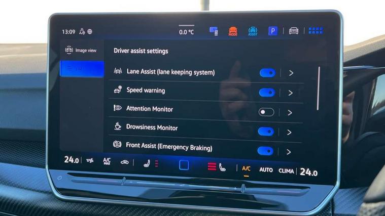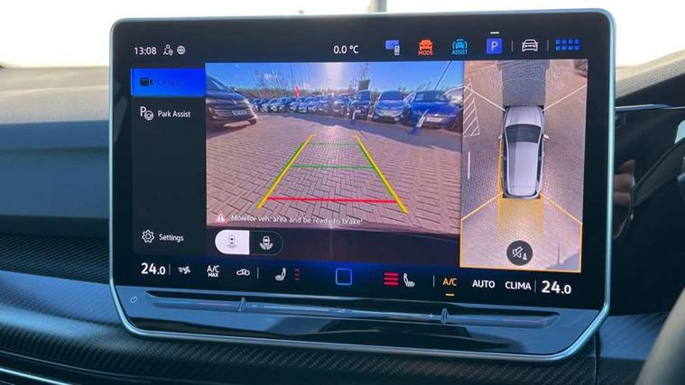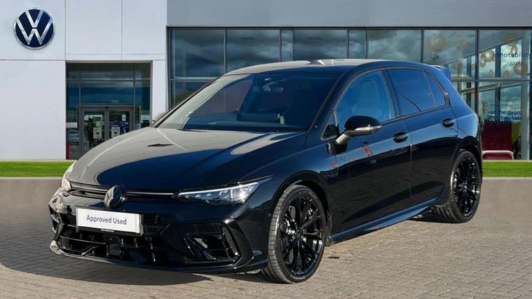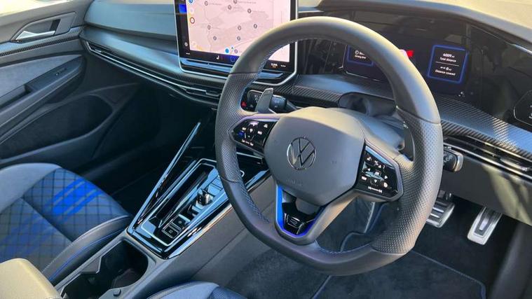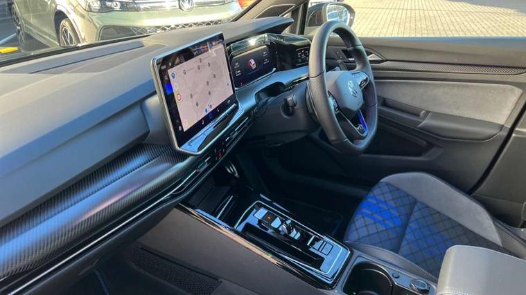 Activated carbon canister, Adaptive cruise control (ACC), Advanced driver attention and drowsiness monitor, Dynamic road sign display, E-Sim card for online connectivity, eCall emergency call system, Electronic maximum speed limit increased to 270 km/h, includes driving Modes 'drift' and 'special', larger roof spolier and GPS laptimer + G-Meter, Multi-color Digital cockpit pro, selection of different info profile possible, Multifunction front facing camera for distance control, Navigation system, Oncoming vehicle braking when turning including swerve support, Side assist blind spot lane change system, rear traffic alert and exit warning system, Speed limiter, Speedo, rev counter, electronic odometer, trip, service interval display, exterior temperature and fuel gauge, Traffic jam assist, Voice enhancer and voice control, Warning signal and warning light for front and rear seatbelts not fastened, We connect plus preparation, We connect preparation, Wireless app connect, All wheel drive - 4Motion, Petrol Particulate Filter, Start-stop system with battery regeneration (recuperation - energy recovery during braking), XDS electronic differential lock for improved traction and handling, 2 USB C ports in front, 2 USB charging sockets on the centre console in the rear charging capacity upto 45W, Digital radio reception (DAB), Diversity antenna for FM reception, Gaming platform via car app, Infotainment system with 12.9" display, Mobile phone interface with inductive charging feature, 3rd brake light, Auto dimming rear view mirror, Automatic headlamp activation with Coming home and Leaving home feature, Black badge on B-pillar, Black mirror caps, Black strips on radiator grille and headlights, Body colour door handles, Darkened headlights, Darkened R Logos and VW logos in front, rear and on fender, Exterior mirrors convex on the left and aspherical on the right, Front and rear electric windows, Front fog lamps and cornering light, Heat insulating windshield made of laminated glass, Illuminated lighting animation with wake up/goodbye scenario, LED matrix headlights with ambient light V2, advanced high beam, dynamic range contol with cornering, LED rear lamp with indicator, poor weather, LED separate daytime running light, R name plate, Rain sensor, Rear fog light on one side and reversing lights on both sides, Rear side wing doors, Rear tinted glass 65% light absorbing from B pillar backwards, Rear windscreen washer and wiper with interval delay, Remote electrically foldable door mirrors, puddle lights and reverse activated passenger's door mirror, Welcome light with surround lighting, 12V socket in front centre console, 12V socket in luggage compartment, 3 rear head restraints, 3 seat bench in 2nd row, 30 colour ambient lighting, illuminated center console storage compartment in front, Air care climatronic 3 Zone automatic climate control with rear air conditioning control panel, Aluminium gearshift handle, Brushed stainless steel pedals, Chrome plated radiator grille inserts, air vent surrounds and light switch surrounds, Entry lights, Front + rear black carpet mats, Front centre armrest, Integrated front head restraints, ISOFIX anchors for child seats on outer rear bench seats and on front passanger seat compatible for i-Size, Luggage compartment lighting, Rear cupholder and loadthough, Single front passenger seat, Soul black instrument panel, Soul black roof lining, Split folding backrest with centre armrest and unsplit rear seat bench, Sun visors with illuminated vanity mirrors, Driver assistance pack - Golf Estate/Hatchback Auto, R styling pack - Golf, Technology park and comfort pro package - Golf Hatchback, 3 point height adj front seatbelts + pretensioners, 3 rear three point seatbelts, ABS, Autonomous emergency braking front assist with pedestrian and cyclist monitoring, Child locks on rear doors, Driver and front passenger airbag with front passenger airbag deactivation, Electronic parking brake with auto hold, ESC (Electronic Stability Control), Extended pedestrian protection measures, Front and rear black brake calipers with darkened R-logo, Hill start assist, Rear disc brakes, Two tone horn, Tyre pressure loss indicator, Volkswagen roadside assistance, Anti theft wheel bolts, Preparation for alcohol interlock, 19" Estoril alloy wheels in black with progressive steering, Sporty vehicle dynamics, Tool kit for tyre mobility set, Tyre mobility kit Includes 12V compressor and tyre sealant, Wheel hub cover with darkened R-logo,