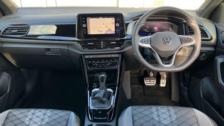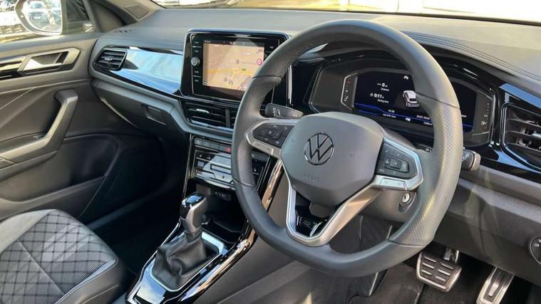 10.25" Digital cockpit pro, Advanced driver attention and drowsiness monitor, Emergency call service, Lane keeping system Lane Assist, Mobile phone interface, Modified key software - reduce switch off time for key status change to Long no motion, Online services, Park assist including front and rear parking sensors, Power assisted speed sensitive steering, Service interval indicator, Tailgate/trunk lid release from outside, Think blue trainer driver tips and journey analysis, Warning sound and light for front seatbelts unfastened, Wireless app connect, Battery regeneration during braking, Rear shock absorption chassis with increased ride height, Start/stop function with battery regeneration, DAB Digital radio, Diversity antenna for FM reception, Front and rear 6 speakers, Music playback - MP3, WMA and AAC files, Premium USB cable in choice of either Apple or Android smartphone compatibility, SD card slot, Simultaneous pairing of 2 compatible mobile devices, Title and cover art display, We Connect and We Connect Plus functionality, Auto dimming interior rear view mirror, Automatic hazard lights activation under emergency braking, Automatic headlight control with LED separate daytime running lights with coming/leaving home function, Dynamic cornering light, Electrically adjustable and heated door mirrors, Extended roof spoiler, Exterior mirrors aspherical on driver side, convex on front passenger side, External USB type C socket and charging sockets, Front windscreen wiper with intermittent wipe and 4 position delay, Heated rear window, Illuminated front grille, IQ LED matrix headlights, LED 3rd brake light, LED rear number plate lights, LED rear tail lights with dynamic turn signal, Light mode for poor weather, rain, fog or snow, Power windows with comfort operation and circuit breaker, R-Line design body coloured bumpers, Rain sensor, Rear exhaust tailpipe, Rear fog light on one side and reversing lights on both sides, Rear side wing doors, Rear wash/wipe with intermittent wipe setting, Remote electrically foldable door mirrors, puddle lights and reverse activated passenger's door mirror, 12V power socket in centre console, 3 rear head restraints, 3 seat bench in 2nd row, 4 load lashing points in luggage compartment, Air care climatronic air conditoning system with active combination filter and 2-zone temperature control, Artvelours cloth upholstery, Black roof lining, Chrome plated radiator grille inserts, air vent surrounds and light switch surrounds, Door and side trim panel with leatherette insert, Drawer under drivers seat, Driver seat height adjust, Driver's seat lumbar support, Front + rear carpet mats, Front centre armrest, Front comfort sports seats, Front cupholders x 2, Front footwell illumination, Front reading light, Front scuff plates with R Line logo, Front seat back storage pockets, Glove compartment door with light, Instrument lighting, white adjustable panel illumination, Interior ambient lighting and surround lighting, Interior light delay, Isofix child seat preparation, Leather gearshift handle, Leather wrapped multifunction steering wheel with paddle shift, Load-through provision with cup holder when folded down ('Unsplit rear seat bench, split folding backrest, with centre armrest), Luggage compartment lighting, Non-folding front passenger seat backrest, Passenger seat height adjuster, Passenger seat lumbar support, Single front passenger seat, Stainless steel pedals, Storage compartment in left and right luggage area, Storage compartment in rear doors, Storage compartments in driver and front passenger doors, Sunvisors with illuminated vanity mirrors, Variable boot floor, height adjustable and removable, Winter pack without heated windscreen washer jets - T-Roc, 3 point height adj front seatbelts + pretensioners, 3 point seatbelts in outer rear with ECE label, ABS, Child locks on rear doors, City emergency braking and pedestrian monitoring, Driver and front passenger airbag with front passenger airbag deactivation, Driver and front passenger safety-optimised head restraints, Drivers seatbelt reminder, Electronic parking brake, Electronic Stability Control (ESC) inc EDL (Electronic Differential Lock) and ASR (Traction Control), Front and rear passengers curtain airbag system including front side airbags, Front disc brakes, Hill start assist, Predictive pedestrian protection, Rear disc brakes, Two tone horn, Tyre pressure loss indicator, Volkswagen roadside assistance, Tool kit, Trims for alloy wheels, Tyre mobility kit including compressor and sealing foam,