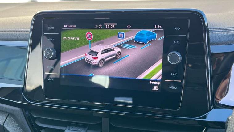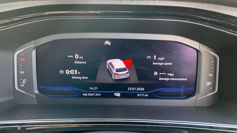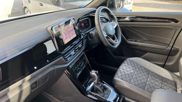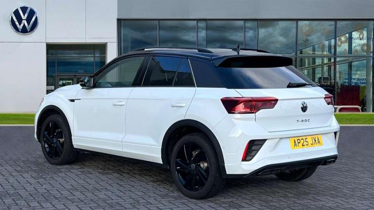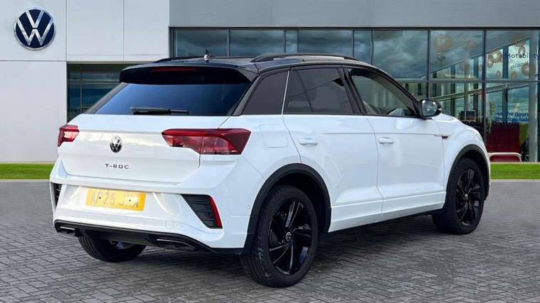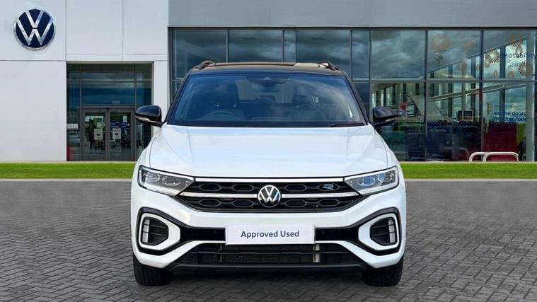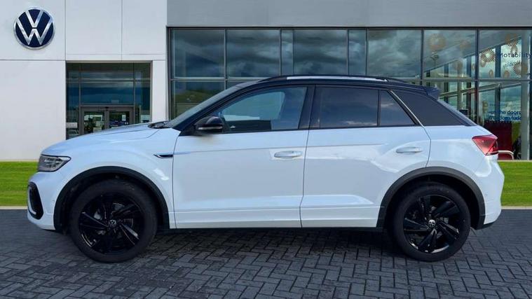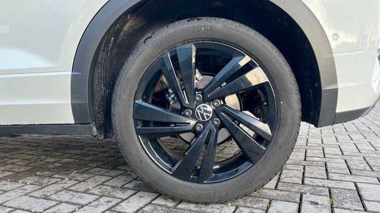 10.25" Digital cockpit pro, Advanced driver attention and drowsiness monitor, Emergency call service, Lane keeping system Lane Assist, Mobile phone interface, Modified key software - reduce switch off time for key status change to Long no motion, Online services, Park assist including front and rear parking sensors, Power assisted speed sensitive steering, Service interval indicator, Tailgate/trunk lid release from outside, Think blue trainer driver tips and journey analysis, Warning sound and light for front seatbelts unfastened, Wireless app connect, Battery regeneration during braking, Rear shock absorption chassis with increased ride height, Start/stop function with battery regeneration, DAB Digital radio, Diversity antenna for FM reception, Front and rear 6 speakers, Music playback - MP3, WMA and AAC files, Premium USB cable in choice of either Apple or Android smartphone compatibility, SD card slot, Simultaneous pairing of 2 compatible mobile devices, Title and cover art display, We Connect and We Connect Plus functionality, Auto dimming interior rear view mirror, Automatic hazard lights activation under emergency braking, Automatic headlight control with LED separate daytime running lights with coming/leaving home function, Dynamic cornering light, Electrically adjustable and heated door mirrors, Extended roof spoiler, Exterior mirrors aspherical on driver side, convex on front passenger side, External USB type C socket and charging sockets, Front windscreen wiper with intermittent wipe and 4 position delay, Heated rear window, Illuminated front grille, IQ LED matrix headlights, LED 3rd brake light, LED rear number plate lights, LED rear tail lights with dynamic turn signal, Light mode for poor weather, rain, fog or snow, Power windows with comfort operation and circuit breaker, R-Line design body coloured bumpers, Rain sensor, Rear exhaust tailpipe, Rear fog light on one side and reversing lights on both sides, Rear side wing doors, Rear wash/wipe with intermittent wipe setting, Remote electrically foldable door mirrors, puddle lights and reverse activated passenger's door mirror, 12V power socket in centre console, 3 rear head restraints, 3 seat bench in 2nd row, 4 load lashing points in luggage compartment, Air care climatronic air conditoning system with active combination filter and 2-zone temperature control, Artvelours cloth upholstery, Black roof lining, Chrome plated radiator grille inserts, air vent surrounds and light switch surrounds, Door and side trim panel with leatherette insert, Drawer under drivers seat, Driver seat height adjust, Driver's seat lumbar support, Front + rear carpet mats, Front centre armrest, Front comfort sports seats, Front cupholders x 2, Front footwell illumination, Front reading light, Front scuff plates with R Line logo, Front seat back storage pockets, Glove compartment door with light, Instrument lighting, white adjustable panel illumination, Interior ambient lighting and surround lighting, Interior light delay, Isofix child seat preparation, Leather gearshift handle, Leather wrapped multifunction steering wheel with paddle shift, Load-through provision with cup holder when folded down ('Unsplit rear seat bench, split folding backrest, with centre armrest), Luggage compartment lighting, Non-folding front passenger seat backrest, Passenger seat height adjuster, Passenger seat lumbar support, Single front passenger seat, Stainless steel pedals, Storage compartment in left and right luggage area, Storage compartment in rear doors, Storage compartments in driver and front passenger doors, Sunvisors with illuminated vanity mirrors, Variable boot floor, height adjustable and removable, Winter pack without heated windscreen washer jets - T-Roc, 3 point height adj front seatbelts + pretensioners, 3 point seatbelts in outer rear with ECE label, ABS, Child locks on rear doors, City emergency braking and pedestrian monitoring, Driver and front passenger airbag with front passenger airbag deactivation, Driver and front passenger safety-optimised head restraints, Drivers seatbelt reminder, Electronic parking brake, Electronic Stability Control (ESC) inc EDL (Electronic Differential Lock) and ASR (Traction Control), Front and rear passengers curtain airbag system including front side airbags, Front disc brakes, Hill start assist, Predictive pedestrian protection, Rear disc brakes, Two tone horn, Tyre pressure loss indicator, Volkswagen roadside assistance, Tool kit, Trims for alloy wheels, Tyre mobility kit including compressor and sealing foam,