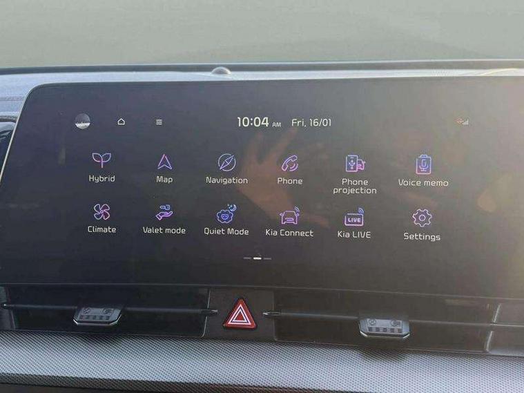 12.3" Driver display screen, 12.3" Touchscreen navigation system, 360 degree around view monitor, 5.3" Climate control touchscreen, Blind spot collision avoidance assist (BCA), Blind spot monitor, Bluetooth connection, Customisable head-up display, Drive mode select (Eco, normal, sport, snow and Mydrive), Driver attention warning, E-call, Fingerprint recognition, Forward Collision-Avoidance Assist (FCA) 2.0 - City/Pedestrian/Cyclist/Junction turning and junction crossing, Front parking sensors, Highway Driving Assist 2 with hand-on detection (HDA2 w HOD), Intelligent speed limit assist (ISLA), Lane Follow assist 2.0 with hands-On detection, Lane keep assist, Over the air (OTA) functionality, Parking collision avoidance assist (PCA), PAS, Rear parking sensors, Remote Smart Park Assist 2.0 (RSPA 2.0), Reversing camera, Safe exit warning (SEW), Side parking sensors, Smart cruise control 2.0 with stop and go functionality, Smart power tailgate, Wireless Apple CarPlay/Android Auto, Wireless Mobile Phone Charger, Vehicle-to-load (V2L) capability with adapter, 1x USB-C port in front, 2 USB-C charge ports in rear, Harmon Kardon premium sound system with 8 speakers and active sound design, USB-C port for connection of a media device, Auto dimming rear view mirror, Automatic defog system, Automatic headlight control system, Body colour exterior door handles - flush auto, Dual LED headlights with adaptive driving beam, Electric front/rear windows with one touch, Electrically folding/adjustable/heated door mirrors with LED indicators, Frunk, Gloss black door mirrors, Gloss black side sills, GT-Line exterior styling, Heated rear window, High gloss black door garnish with body colour wheel arches, LED daytime running lights, LED rear fog lights, LED rear lights, Panoramic sunroof with tilting and sliding function, Privacy glass (Rear Windows and Tailgate), Rain sensing front wipers, Rear side wing doors, Rear spoiler, Rear wiper, Solar glass windshield, Third brake light, 1 x Luggage compartment 12V socket, 3 Pin power socket, 3 seat bench in 2nd row, 3 spoke GT Line artificial leather steering wheel, 60:40 Split folding rear seats, All-round height adjustable headrests, Alloy pedals, Automatic air conditioning, Black headlining, Centre console with storage box, Customisable ambient lighting, Driver and front passenger premium relaxion seats, Driver and passenger sunvisors with illuminated vanity mirrors, Electric adjustable driver seat with memory function, Electric adjustable front passenger seat, Electrically adjustable front seats with lumbar support, Front 12V power socket, Front and rear door storage, Front cabin LED light, Frunk LED lights, GT-Line Interior Styling, Heated front seats, Heated steering wheel, Illuminated glovebox, ISOFIX rear child seat top tethers and anchor fixings, LED luggage compartment lighting, Luggage area load cover, Luggage board, Luggage net with hooks, Manual steering wheel adjustment, Metal paint interior door handles, Outer 2nd row heated seats, Rear cabin LED light, Rear centre armrest with cupholder, Single front passenger seat, Ski hatch, Two tone artificial leather upholstery, Ventilated front seats, All round 3-point seatbelts, Anti-Lock braking system with emergency stop signalling, Curtain airbags, Dynamic brake control, Electric parking brake with auto hold function, Electronic stability control, Front airbags, Front passenger airbag cut off switch, Height adjustable front seatbelts, Hill start assist control (HAC), Rear airbags, Regenerative braking paddle shifter with iPedal functionality, Seatbelt reminder warning, Side airbags, Tyre pressure monitoring system, Vehicle stability management, Customisable automatic door locking, Customisable automatic door unlocking, Digital key, Engine Start/Stop Button with Smart Entry System, Locking wheel nuts, Manual child locks, Rear occupant alert, Smart key with motion sensor, Thatcham category 2 security alarm and immobiliser, Visible vehicle identification number, 19" Alloy wheels with GT-Line styling, Tyre mobility kit,