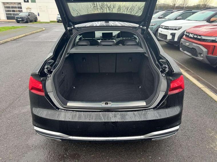 Audi connect safety and service (e-call), Audi connect with Amazon Alexa Integration, Audi drive select (Auto, Comfort, Dynamic, Efficiency and Individual), Audi parking system plus with front and rear sensors, Audi smartphone interface, Audi virtual cockpit - 12.3" full colour digital instrument cluster, vehicle/engine speed, Radio/media information+Driver assistance systems, Automatic start-stop system with coasting functionality and efficiency programme, Bluetooth interface, Electro-mechanical power steering, Email, calendar and text messages displayed via MMI, MMI nav+ with MMI touch - 10.1" high resolution MMI display, touch sensitive, 3D map, route/country info, dynamic route guide, personal route assist, Power operated tailgate, Rear view camera, Service interval indicator, Voice control system, Diesel particulate filter, Sports suspension lowered by 23mm, 8 passive loudspeakers, CD player, DAB digital radio reception, Two additional USB ports for rear passenger in rear centre console, Two SDXC card slots, Audi matrix LED headlights with LED rear lights + dynamic front and rear indicators, Auto dimming door mirrors, Auto dimming rear view mirror, Body colour bumpers, Body colour door handles, Body colour front spoiler lip, Body colour side sill trim, Body coloured door mirrors, Electric adjustable heated door mirrors, Electric folding door mirrors, Electric front windows, Front fog lights, Honeycomb structure radiator grille in grained matt black, Kerb-view function for passenger side, LED daytime running lights, LED side indicator lights integrated into door mirrors, LED third brake light, Matt aluminium silver tailpipe trim, Privacy glass, Rain and light sensors, Rear side wing doors, S line badges on front wings, S line front and rear bumpers with side skirts, S Line rear diffuser in matt titanium black with trim strip in matt aluminium silver, Side air inlets in grained matt black with matt aluminium silver inlay, Variable front intermittent wipers, Windscreen with acoustic glazing, 3 seat bench in 2nd row, 4 way electric lumbar support for driver and front passenger, 40/20/40 split folding 3 seater rear bench seat, Adjustable steering column, Black cloth headlining, Black perforated leather gearknob, Contrast stitching on seats, steering wheel and gear lever gaiter, Deluxe 3 zone electronic climate control, Front centre armrest, Front head restraints, Front/rear floor mats, Heated front seats, Illuminated door sill trim with S logo, ISOFIX child seat mounting and top tether, Luggage compartment mat, Manual seat adjustment, Rear centre armrest, Rear headrests, Single front passenger seat, Stainless steel pedals, Sunvisors with vanity mirrors, LED interior light pack - A5/RS5, 3x3 point rear seatbelts, 6 airbags - Driver, front passenger, curtain and side airbags, Electromechanical parking brake, Electronic Stabilisation Control (ESC) including ABS, ASR and EDL, Front passenger airbag deactivation, Height adjustable front seatbelts, Hill hold assist, Manual child lock in rear doors, Multi collision brake assist, Pop-up bonnet for pedestrian protection, Pre sense city, Seatbelt monitoring, Tyre pressure warning, Variable restraint system, Warning triangle and first aid kit, Anti theft alarm system, Anti theft wheel bolts, Immobiliser, Keyless Go, Remote central locking, Matt brushed aluminium inlays, Tool kit, Tyre repair kit,