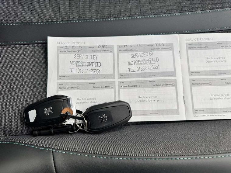 Bluetooth telephone facility, Driver attention warning, Exterior temperature indicator with ice warning, Lane keep assist, Mirror screen with mirror link, apple carplay and android auto, Multi function trip computer, PEUGEOT i-Cockpit with compact steering wheel, PEUGEOT i-Cockpit with configurable 3D headup instrument panel, PEUGEOT SOS and assistance, Smart phone docking station, Speed limit recognition and recommendation, Visio Park 1 with 180 degree Colour reversing camera, 2 front USB socket with USB-C, 2 USB sockets in rear, 6 speakers radio with mp3 compatible, DAB Radio (Digital Audio Broadcasting), Voice recognition for radio, navigation and telephony features, 2 X Rear number plate lights, Automatic front windscreen wipers, Automatic hazard light activation upon heavy brake application, Black front wing trim with gloss black detail, Body coloured exterior door handles, Colour coded door mirror shells, Colour coded rear spoiler, Colour coded roof, Dark tinted rear side and tailgate windows, Eco LED headlights, Electric, heated, and power folding door mirrors, Electrochrome rear view mirror, Front bumper - Silver lower trim, Gloss black finish on B pillar, Gloss black longitudinal roof rails, Gloss black rear cluster connecting strip, Gloss black roof bars, Headlights left on audible warning, LED daytime running lights with distinctive tooth design, LED front fog lamps with remote cornering function, Model designation badges front and rear, One touch electric front/rear windows with pinch protection, Radiator grille - gloss black top edge trim, Radiator grille chrome chequered, Rear full LED 3D peugeot signature claw effect lights with daylight function, Rear reversing lights, Rear windscreen wiper triggered automatically in reverse gear, Tailgate with heated rear windscreen and wiper blade, Wheel arch extensions, 1/3 to 2/3 split folding rear seats, 12V socket, Automatic air conditioning with pollen and active carbon filter, Central front armrest with storage compartment, Driver and front passenger comfort seats, Driver seat manual adjustment - height, longitudinal and back rest angle, Electric power steering with reach and rake adjustable steering column, Front LED interior light with 2 reading spotlights and rear interior light with timer, Front passenger seat manual adjustment - height, longitudinal and back rest angle, High centre console, Leather steering wheel, Mint green contrast stitching to front centre console, door panels and dashboard facia, Modular boot floor, Piano keys: Gloss black and chrome toggle switches to access main functions of the vehicle, Roof lining - light grey, Seatbelt unfastened on the move audible and visual alert for front and rear seats, Tri material cloth/leather upholstery, Visibility pack - 2008, 2x 2nd row ISOFIX child seat mountings, ABS (Anti-lock Braking System) with EBD (Electronic Brakeforce Distribution) and EBA (Emergency Braking Assistance), Acoustic vehicle alerting system, Active safety brake with night function/cyclists/pedestrians, Adaptive driver and front passenger airbags with passenger airbag deactivation function, Child locking functionality on rear doors, Driver/front passenger side airbags, Electric parking brake, ESP (Electronic Stability Program) + Hill Start Assist, Front and rear curtain airbags, Front and rear disc brakes, Front and rear three-point retractable seatbelts, with force limiters, Front optimised safety headrests and rear retractable headrests (x3), height adjustable, Tyre pressure sensor, Automatic door locking when moving off, Deadlocks, Electronic code immobiliser, Thatcham Cat.1 alarm, Carbon effect Dashboard, front and rear door panel finish, 17" Salamanca diamond cut alloy wheels,
