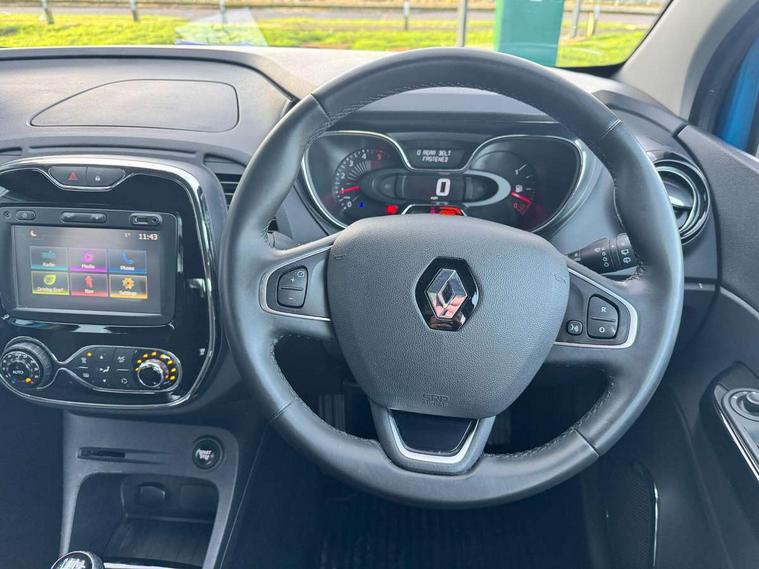 Bluetooth + USB, Cruise control + speed limiter, Renault MediaNav with 7" touch screen and Navteq Nav 'n' Go Satellite Navigation, Trip computer, Variable PAS, Voice control system, 4x20W Arkamys radio, Auxiliary input socket, DAB Digital radio, Fingertip controls for audio system, Automatic headlights + automatic windscreen wipers, Body colour door handles, Body coloured bumpers, Chrome headlight surround, Chrome insert to side strips, Chrome trim on tailgate, Cornering front fog lights, Electric adjustable heated door mirrors, Electric front windows + one touch + anti-pinch, Electric rear windows, LED daytime running lights, Rear wiper, Variable intermittent front wash/wipe, 12V Accessory socket, 3 rear headrests, 60/40 split rear seats, Centre console storage tray, Climate control, Compartment in glovebox, Front cupholder, Front seat backrest storage nets, Gloss black door armrest, Height adjustable driver's seat, Height adjustable front headrests, Height/reach adjust steering wheel, ISOFIX on front passenger and rear outer seats, Leather steering wheel and gear knob, Pollen filter, Removable storage between driver and passenger, Reversible boot floor, Storage area on top of dashboard, Storage compartments in doors, Variable boot floor, 3 point seatbelts on all rear seats, ABS+EBA, Driver/Front Passenger airbags, ESC - Electronic Stability Control + traction control, Front passenger airbag deactivation, Front side airbags(head+thorax), Hill start assist, Rear door child safety locks, Seatbelt warning, Tyre pressure monitor, Deadlocking system, Keyless entry, RAID (Renault Anti-Intruder Device) with automatic door locking, Thatcham Cat 2 engine immobiliser,