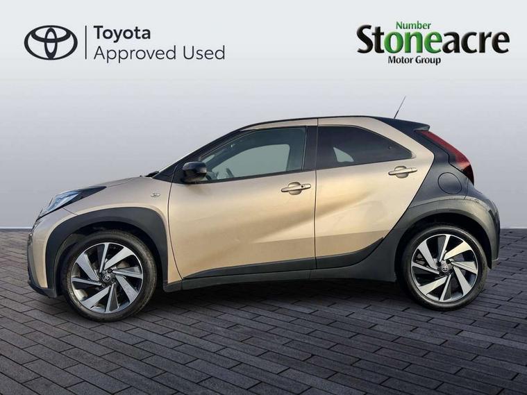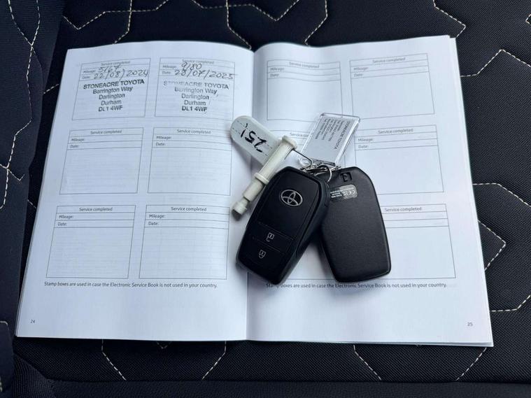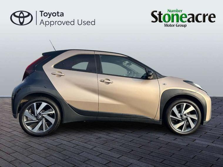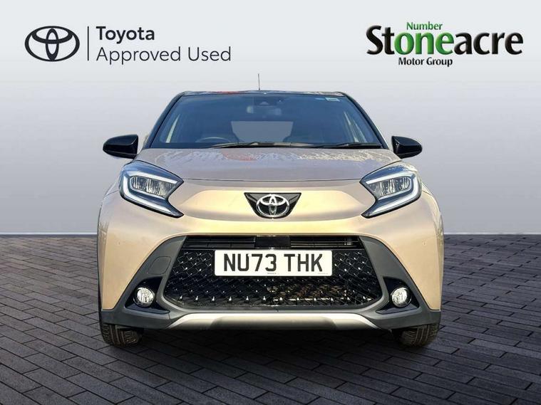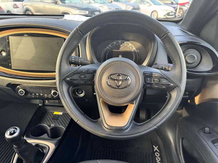 4.2" TFT colour screen, Adjustable speed limiter, Analogue speedometer, Bluetooth connectivity, Digital tachograph, Driver attention alert system, eCall emergency call system, Electric power steering, Front and rear parking sensors with auto brake, Intersection turn assist, Key reminder warning, Noise reduction kit, Pre collision system with emergency steering assist, Remote boot door release on key, Reversing camera with static guide lines, Smart entry and push button start, Speed limit display, Start and stop, Wireless charger, Wireless Smartphone Integration includes Apple CarPlay and Android auto, Vehicle Stability Control (VSC), 4 speakers, 9" HD multimedia display touch screen with Toyota smart connect, DAB digital audio broadcast, USB connector, Auto headlights, Auto wipers, Automatic headlights cut-off, Automatic high beam On/Off switch, Bicycle towing hook, Black fog light surrounds, Black side protection mouldings, Black wheel arch mouldings, Body colour door handles, Body coloured front bumper, Boot door scuff plate, Eclipse black rear bumper, Electric heated door mirrors, Follow me home headlights, Front and rear underruns in silver, Front fog lights, Front power windows, Gloss black door mirrors, Gloss black upper front grille, Headlight cut-off reminder, LED daytime running lights guide, LED front light guide, LED High mounted stop lamp, LED projector headlights, Manual day/night rear view mirror, Manual headlight levelling, Pagoda roof, Power adjustable door mirrors, Power back door, Privacy glass, Rain sensor, Rear combination lights LED bulb type, Rear side wing doors, Rear windscreen defogger, Rear windscreen wiper, Remote hazard lights system, Short antenna, Variable intermittent windscreen wipers, 12v power outlet - front, 2 seat bench in 2nd row, 3 spoke leather steering wheel, 50/50 split folding rear seat, Adhesive roof headlining, Adjustable speed limiter switch on steering wheel, Audio and telephone switches on steering wheel, Auto air conditioning, Black roof lining, Body colour satin anodised insert on steering wheel, Boot light, Centre room light, Chrome interior door handles, Chrome surround on air conditioning buttons, Clean air filter, Console box storage, Floor mats, Front and rear cup holders, Front head rest deco art, Front head restraints, Height adjustable driver seat, Intelligent adaptive cruise control switch on steering wheel, ISOFIX child restraint system on rear seats, Lane departure alert switch on steering wheel, Leather gearshift knob, Light blue ambient lighting in centre console, Manual tilt steering wheel, Manually reclining and sliding driver seat, Manually reclining and sliding front passenger seat, Multimedia switches on steering wheel, Partial synthetic leather upholstery, Pollen filter, Rear door pockets, Rear head restraints, Satin silver insert on gear shift knob, Single compartment glovebox with lights, Single front passenger seat, Soft tonneau cover, Sun visors with mirror on driver and passenger side, Voice recognition switch on steering wheel, Toyota safety sense pack - Aygo X, Anti lock braking system + Electronic brake force distribution, Child safety door lock, Emergency brake light signal (EBS), Hill start assist control (HAC), Passenger airbag on/off switch, Seat belt reminder for front and rear seats, Supplement restraints system (SRS) - 6 airbags, Traction control, Tyre pressure warning system, Immobiliser, Remote power door locks, Black wheel centre caps, Tyre repair kit,