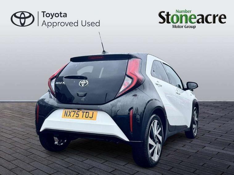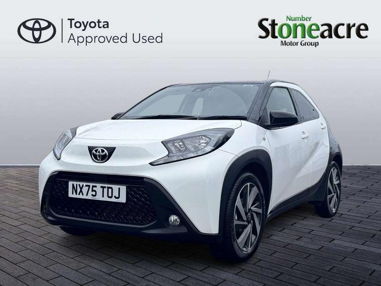 4.2" TFT colour screen, Adjustable speed limiter, Analogue speedometer, Bluetooth connectivity, Digital tachograph, Driver attention alert system, eCall emergency call system, Electric power steering, Intersection turn assist, Key reminder warning, Noise reduction kit, Pre collision system with emergency steering assist, Reversing camera with static guide lines, Smart phone integration with Apple car play/Android Auto, Speed limit display, Start and stop, Vehicle Stability Control (VSC), 4 speakers, 9" HD multimedia display touch screen with Toyota smart connect, DAB digital audio broadcast, USB connector, Auto headlights, Auto wipers, Automatic headlights cut-off, Bicycle towing hook, Black contrast roof, Black side protection mouldings, Black wheel arch mouldings, Body colour door handles, Body coloured front bumper, Boot door scuff plate, Eclipse black rear bumper, Electric heated door mirrors, Follow me home headlights, Front fog lights, Front power windows, Gloss black door mirrors, Gloss black upper front grille, Headlight cut-off reminder, LED daytime running lights, LED front light guide, LED High mounted stop lamp, Manual day/night rear view mirror, Manual headlight levelling, Pagoda roof, Power adjustable door mirrors, Power back door, Privacy glass, Projector halogen headlights, Rain sensor, Rear combination lights LED bulb type, Rear side wing doors, Rear windscreen defogger, Rear windscreen wiper, Short antenna, Variable intermittent windscreen wipers, 12v power outlet - front, 2 seat bench in 2nd row, 3 spoke leather steering wheel, 50/50 split folding rear seat, Adhesive roof headlining, Adjustable speed limiter switch on steering wheel, Audio and telephone switches on steering wheel, Auto air conditioning, Black insert on steering wheel, Black roof lining, Boot light, Centre room light, Chrome interior door handles, Chrome surround on air conditioning buttons, Clean air filter, Console box storage in body color, Fabric upholstery, Floor mats, Front and rear cup holders, Front head rest deco art, Front head restraints, Height adjustable driver seat, Intelligent adaptive cruise control switch on steering wheel, ISOFIX child restraint system on rear seats, Lane departure alert switch on steering wheel, Leather gearshift knob, Manual tilt steering wheel, Manually reclining and sliding driver seat, Manually reclining and sliding front passenger seat, Multimedia switches on steering wheel, Pollen filter, Rear door pockets, Rear head restraints, Satin silver insert on gear shift knob, Single compartment glovebox with lights, Single front passenger seat, Soft tonneau cover, Sun visors with mirror on driver and passenger side, Voice recognition switch on steering wheel, Toyota safety sense pack - Aygo X, Anti lock braking system + Electronic brake force distribution, Child safety door lock, Emergency brake light signal (EBS), Hill start assist control (HAC), Passenger airbag on/off switch, Seat belt reminder for front and rear seats, Supplement restraints system (SRS) - 6 airbags, Traction control, Tyre pressure warning system, Immobiliser, Remote power door locks, Black wheel centre caps, Tyre repair kit,