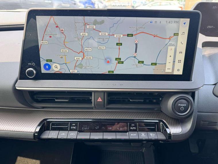 12.3" multimedia display screen, 7" Multi information screen, Acceleration suppression at low speed, Adaptive cruise control [ACC] switch on steering wheel, Blind spot monitor and safe exit assist, Bluetooth connectivity, Digital speedometer, Driver monitoring camera, Dynamic guide lines on reversing camera, eCall emergency call system, Emergency driving stop system, Emergency steering assist with active support and pre collision system, Front Cross Traffic Alert, Hybrid system indicator, Intelligent adaptive cruise control, Intelligent parking sensors front and rear with rear pedestrians, Lane change assist, Lane trace assist, Multi information display switches on steering wheel, MyT connected services, PAS, Pre collision system with intersection detection, Precaution Illumination on dashboard ambient light, Proactive driving assist (PDA), Rear cross traffic alert with brake assist, Remote boot door release in cabin, Reversing camera, Road sign assist - RSA, Safe exit assist, Smart entry and push button start, Smart voice assist, Speed limiter switch on steering wheel, Speed limiter with road sign assist, Telephone switches on steering wheel, Touch 2 Go navigation system, Toyota smart connect multimedia system, Voice recognition, Wireless charger, Wireless Smartphone integration incl Apple CarPlay, 3.3 kW Standard charger, Fast charger 32A Mennekes cable, Vehicle Stability Control (VSC), 2 USB-C connectors front, 2 USB-C connectors rear, 2x USB sockets in front armrest, 6 speakers, DAB Radio (Digital Audio Broadcasting), Road events, Anti-jam protection on power windows, Auto headlights, Auto up and down function on power windows, Auto wipers, Automatic high beam, Automatic rear flashing hazard lights, Black door moulding, Black rear bumper, Black surround on lower front grill, Black wheel arch mouldings, Boot door release with push button, E-switch operated rear door handles, Electric heated door mirrors, Follow me home headlights, Grille shutter, Indicators integrated on door mirrors, Infrared filter on windshield, LED daytime running lights, LED Headlights, LED High mounted stop lamp, LED Indicators, LED rear combination lights, Manual day/night rear view mirror, Manual front door handles, Manual headlight levelling, Noise reduction layer on windscreen, Power adjustable door mirrors, Power retractable door mirrors, Privacy glass for rear window, Rear fog lights, Rear side wing doors, Rear spoiler, Rear window wiper, Rear windscreen defogger, Shark fin antenna, Silver lower front grille, UV-filter on driver and front passenger windows, 12v power outlet - front, 2 cup holders in front, 2nd row rear passenger room LED light, 3 seat bench in 2nd row, 3 spoke premium animal friendly leather steering wheel, 60/40 split folding 2nd row rear seats, Adjustable rear headrests, Ambient lighting on dashboard, Assist grips front, Assist grips rear, Boot 230V power outlet, Boot light, Boot underfloor storage, Charge cable bag, Driver and front passenger personal LED lights, Driver and front passenger Whiplash Injury Lessening seats, Foldable tonneau cover, Front and rear door pockets, Front head restraints, Front passenger seatback pockets, Gear shift indicator, Gloss black insert on centre pillar, Glovebox with light, Heat pump system with humidifier, ISOFIX child restraint system, LED front room light, Luggage floor board with protection mat, Manual telescopic steering wheel, Manual tilt steering wheel, Manually height adjustable driver seat, Manually reclining driver seat, Manually reclining front passenger seat, Manually sliding driver seat, Manually sliding front passenger seat, Microphone on front personal light, Mirror on driver sun visor, Mirror on passenger sun visor, Multimedia switches on steering wheel, Nanoe-X air purifier, Pollen air filter with deodorising odour eliminator, Power adjustable lumbar support on driver seat, Power window switches with satin chrome inserts, PVC gear shift knob, Rear cup holders, Rear headrests, Remote dual zone automatic air conditioning, Satin chrome interior door handles, Single front passenger seat, Soft-touch front door armrests, Soft-touch rear door armrests, Sports fabric upholstery, White ambient lighting in footwell, 3 point seatbelts on all seats, Acoustic vehicle alerting system, Anti lock braking system + Electronic brake force distribution, Child safety door lock, Driver and passenger central airbags, Driver and passenger front airbags, Driver and passenger side airbag, Driver knee airbag, Electronic parking brake, Front to front oncoming car and motorbike daytime detection, Passenger airbag on/off switch, Pre collision system with pedestrian, cyclist and motorbike detection, Pre-tensioners and force limiters, Rear seat reminder alert, Toyota safety sense with over the air updates, Tyre pressure warning system, Driver power door lock, Glass-breaking alarm sensors, Immobiliser, Intrusion alarm, Intrusion sensor, Motion sensor alarm, Remote door lock, Smartphone remote door lock, Smartphone remote hazard lights system, Wheel Nuts, Metallic effect insert on dashboard, Soft-touch front door trim, 17" 5 spoke dark grey aerodynamic alloy wheels with full wheel caps, Tyre repair kit,