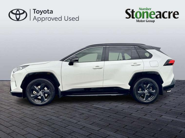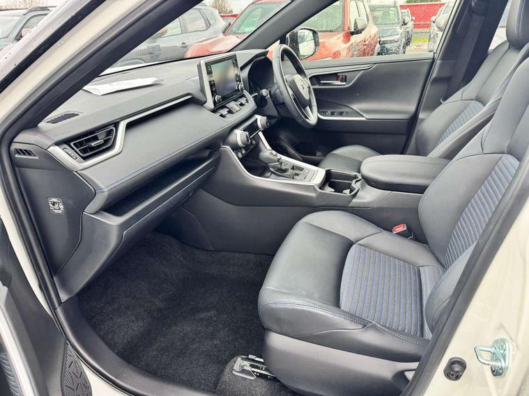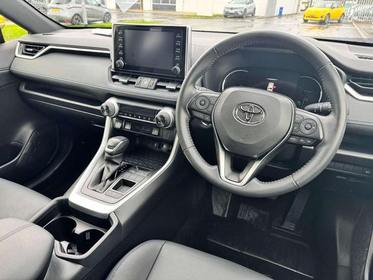 7" colour TFT display, Adaptive cruise control with lane trace assist, Adjustable speed limiter, Apple car play and Android auto, Blind spot monitoring with rear cross traffic alert, Bluetooth system, Cyclist Detection, Drive mode selector, eCall emergency call system, ECO-driving indicator, Electric power steering, EV audible alert, Hybrid system indicator, Lane departure warning system, Lights on warning, Night Time Pedestrian Detection, Pedestrial detection, Power boot opening and closing, Rear parking camera, Rear parking sensors, Remote boot door release in cabin, Tachometer, Touch 2 Go navigation system including 3D maps and voice control, Traffic sign recognition, Trip computer, Voice control system, Vehicle Stability Control (VSC), 6 speakers, 8" Multimedia display touch screen, Auxiliary socket for external MP3 player, DAB audio, Steering wheel mounted audio controls, Toyota touch media system, USB connection, Auto dimming interior mirror, Auto high beam, Automatic headlamp levelling, Automatic headlights, Automatically retractable door mirrors, Bi-tone black roof, Black door mirrors, Black rear spoiler, Black roof rails, Black Shark-fin antenna, Body colour door handles, Body coloured bumpers, Door mirror puddle lights, Electric adjustable door mirrors, Emergency brake-light signal (EBS), Follow me home headlights, Front fog lights, Gloss black front bumper insert, Gloss black rear bumper insert, Headlight cleaners, Heated door mirrors, LED daytime running lights, LED High mounted stop lamp, LED rear lights, Meshed upper front grille, Power front windows, Power rear windows, Privacy glass, Projector LED headlights, Rear screen wiper - intermittent, Rear windscreen defogger, Silver front under-run, Silver rear under-run, Trailer sway control, Turning signal integrated indicators in door mirrors, 3 rear headrests, 60/40 split fold rear seat back, Black roof lining, Boot light, Clean air filter, Driver and front passenger personal light, Driver and front passenger Whiplash Injury Lessening seats, Driver and passenger sunvisors with illuminated vanity mirrors, Dual sided deck board in boot, Dual zone automatic air conditioning, Floor mats, Folding rear centre armrest, Front and rear bottle holders, Front centre armrest, Front footwell lights, Front headrests, Front seat and rear pockets, Front sport seats, Front/rear roof mounted assist grips, Heated driver and front passenger seats, Isofix child seat preparation, Leather gear shift with chrome surround, Light blue ambient lighting on front cupholders and open tray, Manual telescopic and tilt 3-spoke leather steering wheel with Chrome insert, Manually reclining and sliding front passenger seat, Pollen filter, Power height-adjustable sliding reclining and lumbar support for driver seat, Rear coat hooks, Rear door armrests, Rear passenger air vents, Reclining rear seats, Satin chrome interior door handles, Sunglasses holder, Synthetic leather upholstery, 3x3 point rear seatbelts, ABS/EBD, Adjustable front driver and passenger seat belt extender, Brake assist function, Child proof door locks, Collision mitigation braking system, Driver/Front Passenger airbags, Driver/front passenger side airbags, Drivers knee airbag, Electronic parking brake, Electronic Stability Programme (ESP), Emergency brake light system (EBS), Front and rear curtain airbags, Front and rear seatbelt reminder, Hill start assist, Passenger airbag cut-off device, Seatbelt pretensioners with load limiters, Traction control, Tyre pressure warning, Alarm/immobiliser, Glass-breaking alarm sensors, Light - on and Key in reminder, Remote central locking, Smart entry + Smart start, Speed sensitive auto door locking, Tilt detection sensors, Piano black centre console with silver insert, Soft-touch black lower dashboard, Soft-touch black upper dashboard with silver insert, Full size spare wheel,
