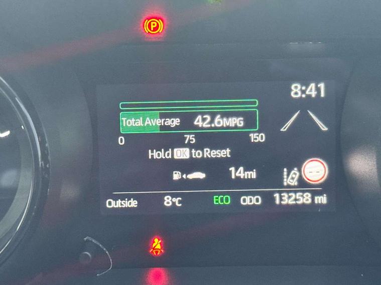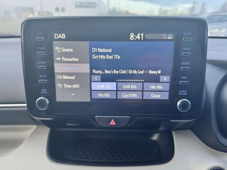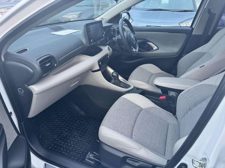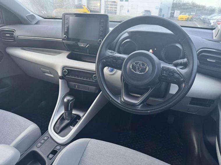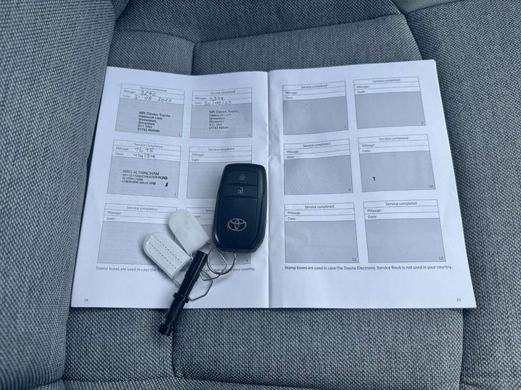 Adaptive cruise control, Adjustable speed limit with speed warning, Blind spot monitoring, Bluetooth connectivity, Colour binocular inspired displays with digital speedometer, E-call, Electric power steering, Front and rear parking sensors and intelligent clearance sonar with automatic braking, Hybrid energy display, Multi information display switches on steering wheel, Reversing camera, Smartphone integration with Apple CarPlay and Android auto, Vehicle Stability Control (VSC), 6 speakers, 8" Multimedia display touch screen, USB connection, Acoustic windscreen glass, Automatic headlights, Automatic windscreen wipers with rain sensor, Automatically retractable door mirrors, Body coloured door mirrors, Electric adjustable heated door mirrors, Follow me home headlights, Front auto power windows with anti jam protection, Full LED rear lights, LED daytime running lights, LED front fog lights, LED Headlights, LED High mounted stop lamp, Painted front grille, Rear auto power windows with anti jam protection, Rear privacy glass, Rear side wing doors, Rear spoiler, Rear wiper, Satin lower front grille, Shark fin antenna, Turning signal integrated indicators in door mirrors, 3 adjustable rear headrests, 3 spoke leather steering wheel, 60/40 split folding rear seat, Active headrests, Adjustable boot height, Coat hooks in rear grab handles, Cup holders (2 front & door), Data Communication Module (DCM) connected services, Dual zone automatic air conditioning, Fabric seat with partial synthetic leather upholstery, Front armrest, Front sport seats, Glovebox, Height adjustable driver's seat, Height adjustable passenger seat, Isofix seat fixing, Leather gearshift, Map pockets on the backs of the front seats, Pollen filter, Shopping bag hooks, Single front passenger seat, Tilt/telescopic steering column, 3 point seatbelts on all rear seats, ABS+EBD+Brake assist, Electronic parking brake, Emergency brake light system (EBS), Front passenger airbag on/off switch, Front seatbelt reminder, Hill start assist control (HAC), Rear child proof door locks, Rear seat belt reminder, Supplemental Restraint System (SRS) 8 airbags: Driver & passenger's airbags, dual side curtain airbags, side impact airbags, front centre airbag, Toyota Safety Sense 2, Precollison + Night time Pedestrian & Cyclist Detection, Lane Trace Assist, Auto High Beam, Intelligent ACC & Road Sign Assist, Tyre pressure warning system, Alarm/immobiliser, Keyless smart entry with push button start, Remote powered central double locking doors, Satin chrome interior styling, Soft touch instrument panel, Space saver spare wheel,