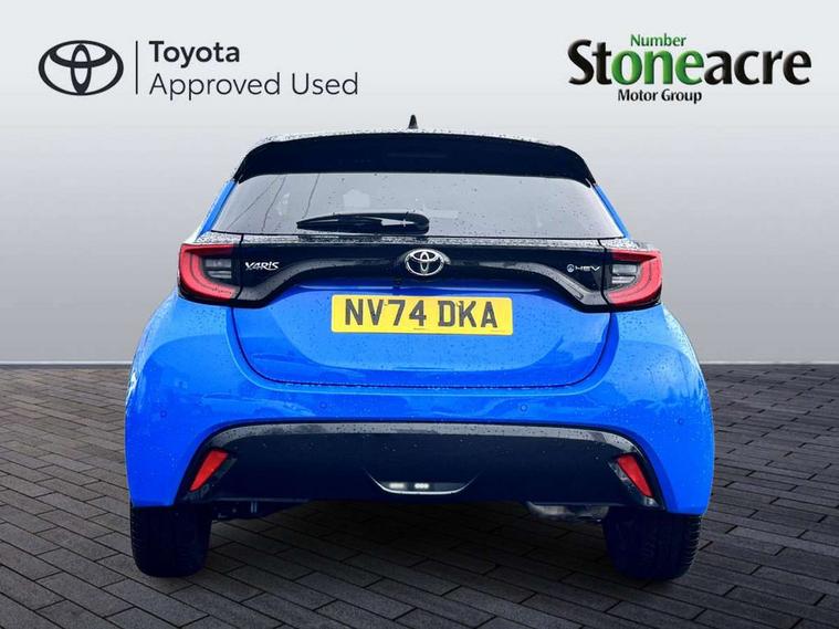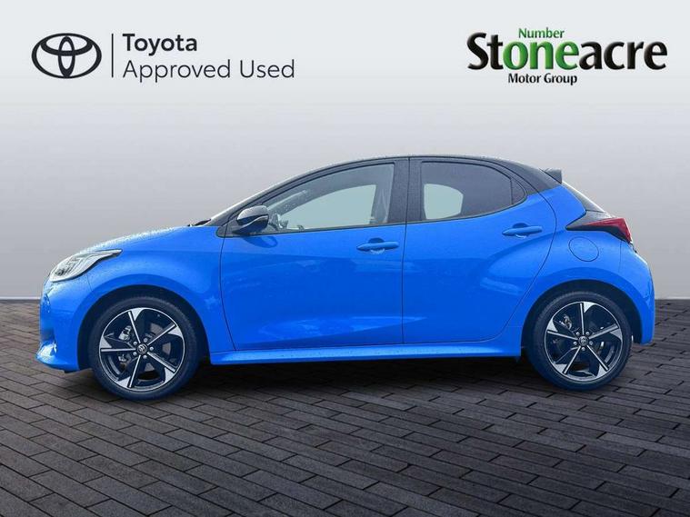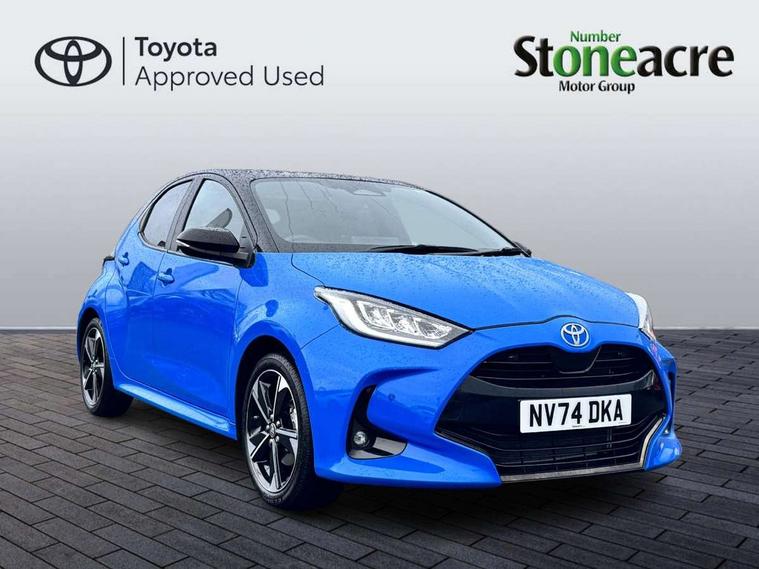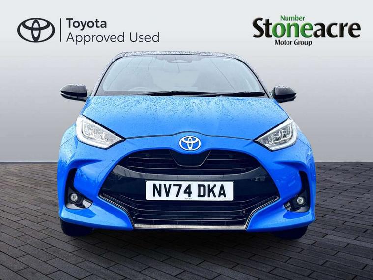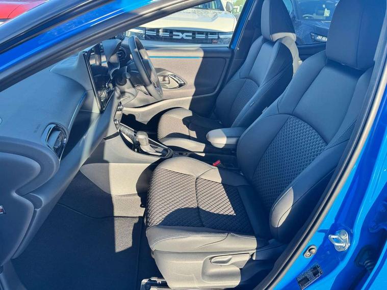 12.3" Digital Combimeter, Adaptive cruise control, Adjustable speed limit with speed warning, Bluetooth connectivity, Colour binocular inspired displays with digital speedometer, E-call, Electric power steering, Head up Display, Hybrid energy display, Multi information display switches on steering wheel, Reversing camera, Tailgate, Voice recognition, Wireless charger, Vehicle Stability Control (VSC), 10.5" Toyota smart connect multimedia with wireless smartphone integration incl apple car play and cloud Navigation, 6 speakers, 8 Speakers, JBL speaker system, Toyota Touch 3 system with DAB radio, USB connection, Acoustic windscreen glass, Auto windscreen wipers, Automatic headlights, Body coloured door mirrors, Dark chrome lower front grille, Electric adjustable heated door mirrors, Follow me home headlights, Front auto power windows with anti jam protection, Full LED rear lights, LED daytime running lights, LED front fog lights, LED front light guide, LED Headlights, LED High mounted stop lamp, LED Indicators, LED rear light guide, Manual headlight levelling, Painted chequered front grille with hot stamp in mesh design, Rain sensor, Rear auto power windows with anti jam protection, Rear privacy glass, Rear side wing doors, Rear spoiler, Rear wiper, Shark fin antenna, Turning signal integrated indicators in door mirrors, Variable front intermittent wipers, 3 adjustable rear headrests, 3 seat bench in 2nd row, 3 spoke leather steering wheel, 60/40 split folding rear seat, Active headrests, Adjustable boot height, Black roof lining, Coat hooks in rear grab handles, Cup holders (2 front & door), Data Communication Module (DCM) connected services, Dual zone automatic air conditioning, Front armrest, Front sport seats, Glovebox, Height adjustable driver's seat, Height adjustable passenger seat, Isofix seat fixing, Leather gearshift, Map pockets on the backs of the front seats, Nanoe-X air purifier, Partial leather upholstery, Pollen filter, Shopping bag hooks, Single front passenger seat, Tilt/telescopic steering column, Safety pack - Yaris, 3 point seatbelts on all rear seats, ABS+EBD+Brake assist, Electronic parking brake, Emergency brake light system (EBS), Front passenger airbag on/off switch, Front seatbelt reminder, Hill start assist control (HAC), Rear child proof door locks, Rear seat belt reminder, Supplemental Restraint System (SRS) 8 airbags: Driver & passenger's airbags, dual side curtain airbags, side impact airbags, front centre airbag, Toyota Safety Sense 3 with over the air updates, Tyre pressure warning system, 2x Master key, Alarm/immobiliser, Keyless smart entry with push button start, Remote AC via MyT, Remote locking via MyT, Remote powered central double locking doors, Smart digital key, Piano black interior trim, Soft touch instrument panel, 17" Black Machined-face, 5 double spoke alloys wheels, Space saver spare wheel,