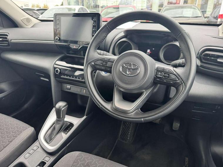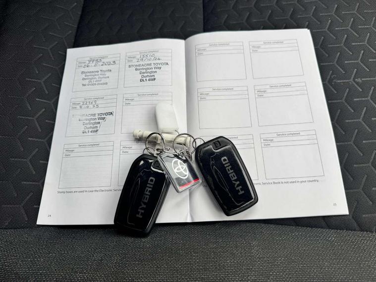 4.2" multi information display, 8" Toyota touch 2 multimedia system with Smartphone integration with Apple CarPlay and Android auto, Adjustable speed limiter, Bluetooth connectivity, Digital speedometer, Driver attention alert system, eCall emergency system, Electric power steering, Full range intelligent adaptive cruise control, Hybrid system indicator, Key reminder warning, Lane trace assist, Multimedia, audio, telephone and voice recognition switches on steering wheel, My T Connected services, Pre-collision system enhanced with emergency steering assist, Reversing camera, Road sign assist - RSA, Steering assisted vehicle stability control, 6 speakers, DAB Digital radio, USB connection, 3rd brake light, Acoustic windscreen glass, Anti-jam protection on power windows, Auto high beam [AHB] with on/off switch, Automatic headlights, Black lower front grille, Black Shark-fin antenna, Black upper front grille, Black wheel arch mouldings, Body colour door handles, Body colour front bumper, Body colour rear bumper, Electric adjustable heated door mirrors, Follow me home headlights, Front and rear electric windows with auto up/down function, Front intermittent wipers, Halogen projector headlights, Headlight cut off reminder, Indicators integrated on door mirrors, Intermittent rear wiper, LED daytime running lights, LED Indicators, Manual headlight levelling, Manually retractable door mirrors, Noise reduction layer on windscreen, Rain sensor, Rear side wing doors, Rear spoiler, Rear window defogger, 12v power outlet - front, 2x Rear coat hooks, 3 seat bench in 2nd row, 3 spoke leather steering wheel, 60/40 split folding rear seat, Adjustable speed limiter switch on steering wheel, Auto air conditioning, Boot light, Central armrest, Driver and front passenger personal lights, Fabric door trim, Fabric upholstery, Front console box, Front cup holders, Front head restraints, Glovebox, Grey roof lining, Height adjustable driver's seat, Height adjustable front passenger seat, ISOFIX child restraint system, Lane departure alert switch on steering control, Leather gearshift, Manual telescopic and tilting steering wheel, Mirror on driver and passenger sun visor, Pollen air filter, Rear head restraints, Single front passenger seat, Soft tonneau cover, 3x3 point rear seat belts, ABS+EBD+Brake assist, Driver and passenger central airbags, Driver and passenger front airbags, Driver and passenger side airbags, Electronic parking brake, Emergency brake light system (EBS), Front seat belt reminder, Hill start assist control (HAC), Passenger airbag on/off switch, Pre-collision system with pedestrian and cyclist detection, Rear door child safety locks, Rear passenger side airbags, Rear seat belt reminder, Traction control, Tyre pressure warning system, Immobiliser, Intrusion alarm, Keyless smart entry with push button start, Power door locks, Power passenger window lock, Remote door lock, 16" 10 spoke alloy wheels, Tyre repair kit,