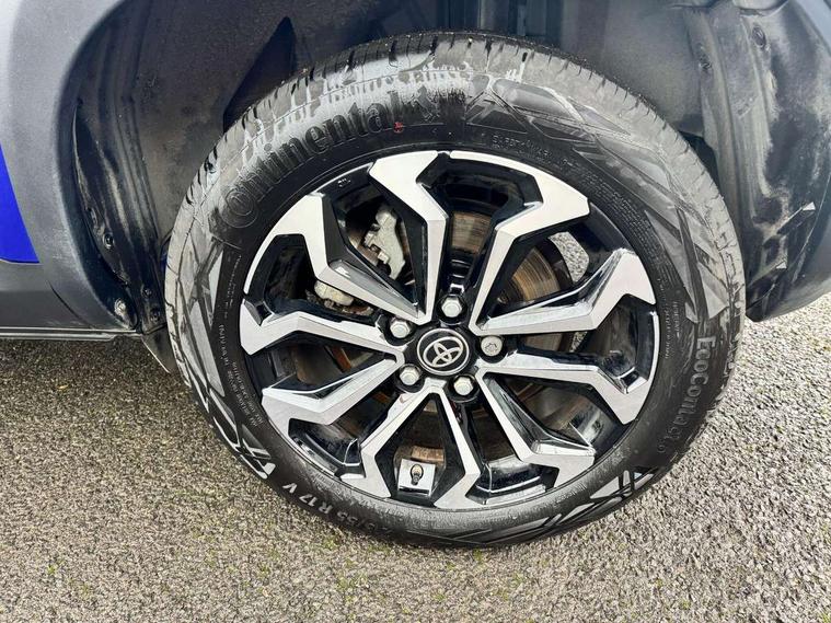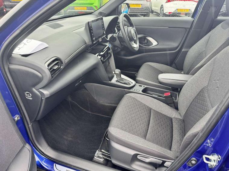 7" Multi information display screen, 8" Toyota touch 2 multimedia system with Smartphone integration with Apple CarPlay and Android auto, Adjustable speed limiter, Bluetooth connectivity, Driver attention alert system, eCall emergency system, Electric power steering, Full range intelligent adaptive cruise control, Hybrid system indicator, Key reminder warning, Lane trace assist, Multimedia, audio, telephone and voice recognition switches on steering wheel, My T Connected services, Pre-collision system enhanced with emergency steering assist, Reversing camera, Road sign assist - RSA, Steering assisted vehicle stability control, 6 speakers, DAB Digital radio, USB connection, 3rd brake light, Acoustic windscreen glass, Aluminium roof rails, Anti-jam protection on power windows, Auto high beam [AHB] with on/off switch, Automatic headlights, Black lower front grille, Black Shark-fin antenna, Black upper front grille, Black wheel arch mouldings, Body colour door handles, Body colour front bumper, Body colour rear bumper, Electric adjustable heated door mirrors, Follow me home headlights, Front and rear electric windows with auto up/down function, Front intermittent wipers, Headlight cut off reminder, Indicators integrated on door mirrors, Intermittent rear wiper, LED daytime running lights guide, LED front fog lights, LED front light guide, LED Indicators, LED projector headlights, LED rear light guide, Manual headlight levelling, Manually retractable door mirrors, Noise reduction layer on windscreen, Privacy glass, Rain sensor, Rear LED lights with sequential indicators, Rear side wing doors, Rear spoiler, Rear window defogger, 12v power outlet - front, 2x Rear coat hooks, 3 seat bench in 2nd row, 3 spoke leather steering wheel, 40:20:40 split folding rear bench seat, Adjustable speed limiter switch on steering wheel, Auto air conditioning, Black roof lining, Boot light, Central armrest, Centre console in light blue ambent lighting, Driver and front passenger personal lights, Fabric door trim, Fabric upholstery, Footwell in light blue ambient lighting, Front console box, Front cup holders, Front head restraints, Glovebox, Height adjustable driver's seat, Height adjustable front passenger seat, Hooks for luggage holding belts, ISOFIX child restraint system, Lane departure alert switch on steering control, Leather gearshift, Light blue ambient lighting on front doors, Manual telescopic and tilting steering wheel, Mirror on driver and passenger sun visor, Pollen air filter, Rear cup holders, Rear head restraints, Single front passenger seat, Soft tonneau cover, 3x3 point rear seat belts, ABS+EBD+Brake assist, Driver and passenger central airbags, Driver and passenger front airbags, Driver and passenger side airbags, Electronic parking brake, Emergency brake light system (EBS), Front seat belt reminder, Hill start assist control (HAC), Passenger airbag on/off switch, Pre-collision system with pedestrian and cyclist detection, Rear door child safety locks, Rear passenger side airbags, Rear seat belt reminder, Traction control, Tyre pressure warning system, Immobiliser, Intrusion alarm, Keyless smart entry with push button start, Power door locks, Power passenger window lock, Remote door lock, Tyre repair kit,
