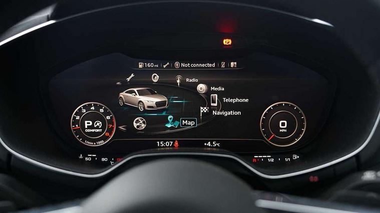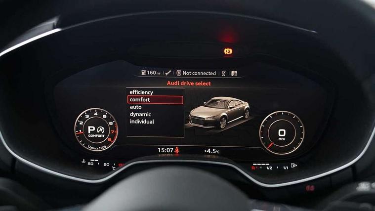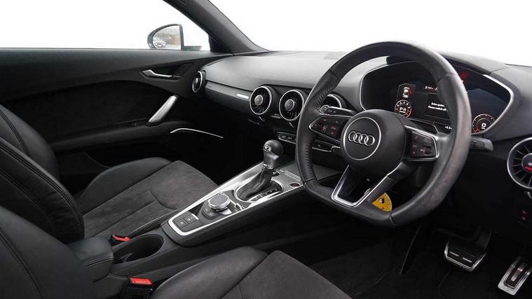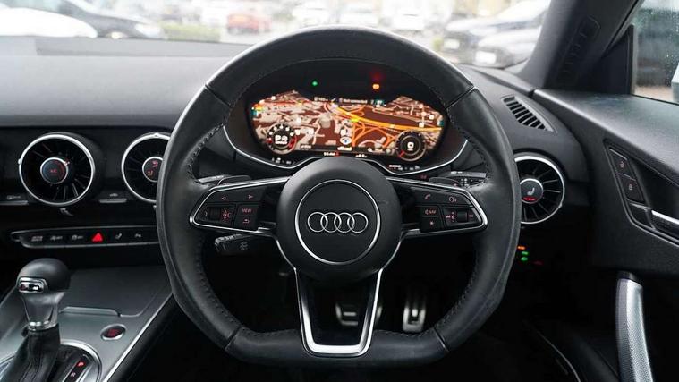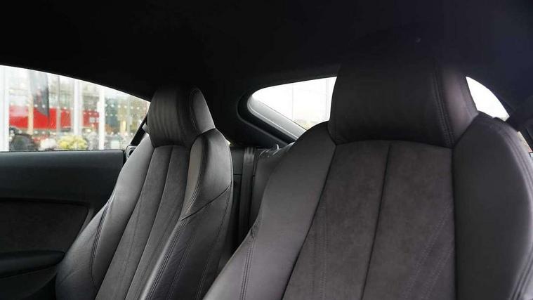 Audi drive select with 4 Pre configured modes, Audi virtual cockpit - 12.3" high-resolution LCD display with fully customisable instrument cluster, Cruise control + speed limiter, MMI touch panel, Progressive power assisted steering, Rear parking sensors, Service interval indicator, Start/Stop system with energy recuperation, TP memo, Sports suspension, 8 Speakers, AM/FM radio, Audi music interface, Bluetooth audio streaming, DAB Digital radio, MMI Radio with CD player and SD/XC card slot, Auto dimming rear view mirror, Auto headlight range control, Body colour bumpers, Electric front windows, Front fog lights, Green tinted heat insulating glass, Light and rain sensors, Retractable rear boot spoiler, Xenon headlights with LED daytime running lights with automatic headline range control + LED rear lights, brake lights and rear indicators, 12V socket, 3 spoke flat bottomed high multi-function leather sport steering wheel with gearshift paddles, Alcantara/Leather upholstery includes seat centre panels, door trim inserts in black Alcantara with side bolsters, head restraints in black leather, Aluminium door sill trims, Front centre armrest, Heated front seats, Height adjustable driver's seat, Height adjustable front head restraints, Height/reach adjust steering wheel, ISOFIX child seat mounting for front passenger seat with airbag deactivation, Reading lights, Rear top tether child seat ISOFIX attachment, Split folding rear seat, Top tether anchor plate for isofix child seat, Non smoking pack - TT/TT RS, 3 point front seat belts, ABS, ASR traction control, Brake energy regeneration, Curtain airbags, Driver and front passenger airbag with front passenger airbag deactivation, EDL traction control, Electromechanical parking brake, ESP, First aid kit, Front side airbags, Head airbags, Hill hold assist, Seatbelt warning, Tyre pressure warning, Warning triangle, Anti theft alarm, Anti theft wheel bolts, Immobiliser, Keyless Go, Remote central locking, Aluminium design inlays, Tool kit, Tyre repair kit,
