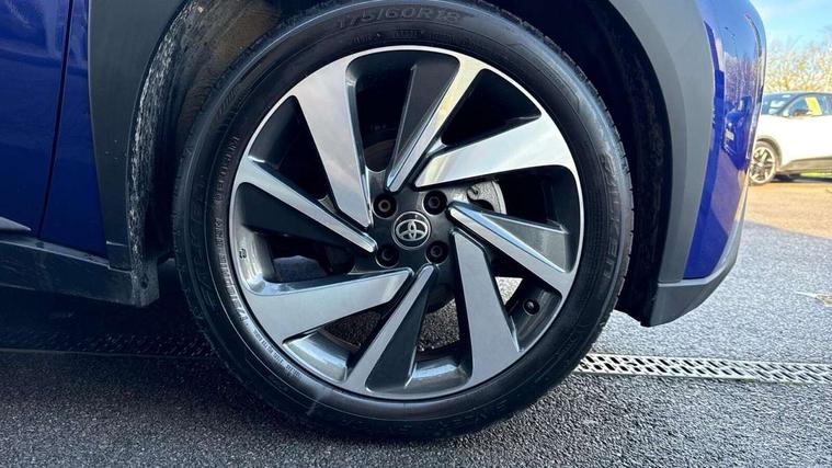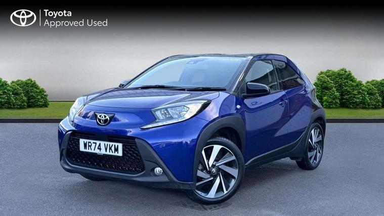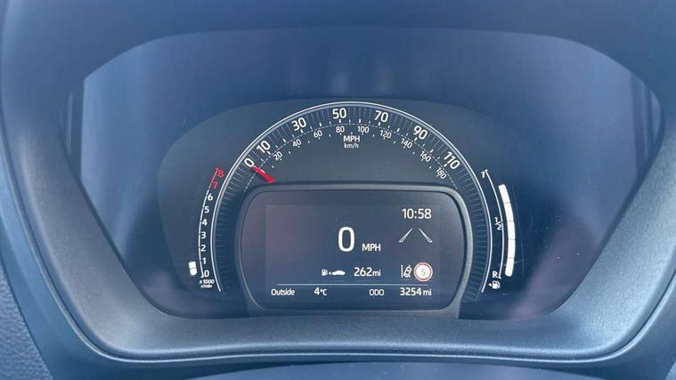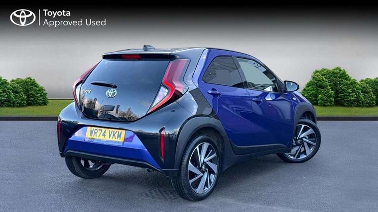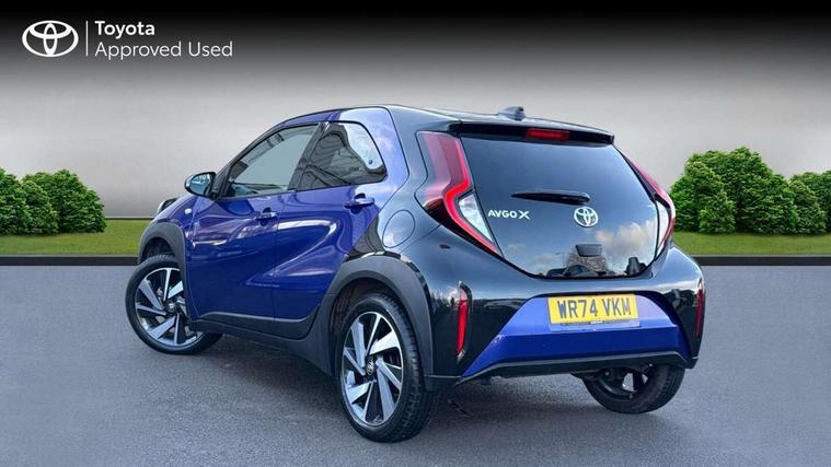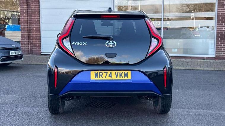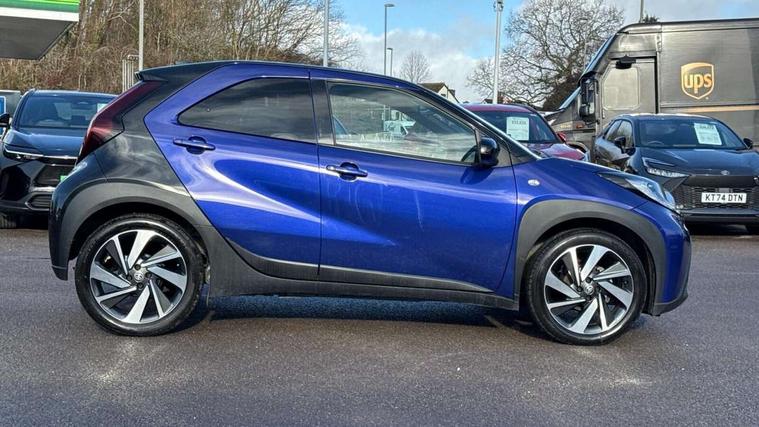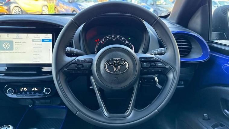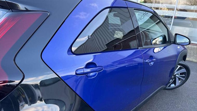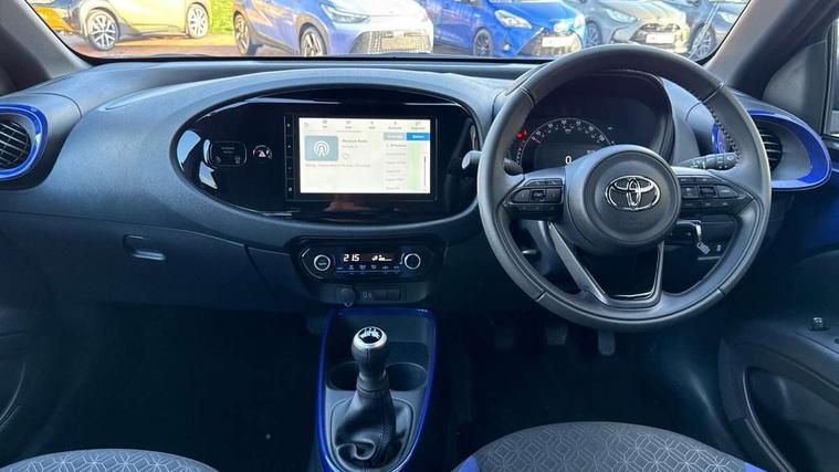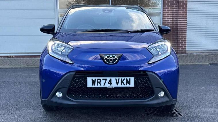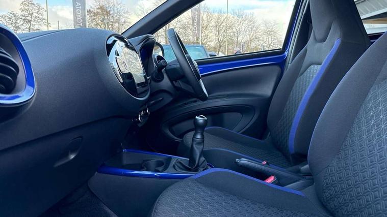 4.2" TFT colour screen, Adjustable speed limiter, Analogue speedometer, Bluetooth connectivity, Digital tachograph, Driver attention alert system, eCall emergency call system, Electric power steering, Intersection turn assist, Key reminder warning, Noise reduction kit, Pre collision system with emergency steering assist, Reversing camera with static guide lines, Smart phone integration with Apple car play/Android Auto, Speed limit display, Start and stop, Vehicle Stability Control (VSC), 4 speakers, 9" HD multimedia display touch screen with Toyota smart connect, DAB digital audio broadcast, USB connector, Auto headlights, Auto wipers, Automatic headlights cut-off, Bicycle towing hook, Black contrast roof, Black side protection mouldings, Black wheel arch mouldings, Body colour door handles, Body coloured front bumper, Boot door scuff plate, Eclipse black rear bumper, Electric heated door mirrors, Follow me home headlights, Front fog lights, Front power windows, Gloss black door mirrors, Gloss black upper front grille, Headlight cut-off reminder, LED daytime running lights, LED front light guide, LED High mounted stop lamp, Manual day/night rear view mirror, Manual headlight levelling, Pagoda roof, Power adjustable door mirrors, Power back door, Privacy glass, Projector halogen headlights, Rain sensor, Rear combination lights LED bulb type, Rear side wing doors, Rear windscreen defogger, Rear windscreen wiper, Short antenna, Variable intermittent windscreen wipers, 12v power outlet - front, 2 seat bench in 2nd row, 3 spoke leather steering wheel, 50/50 split folding rear seat, Adhesive roof headlining, Adjustable speed limiter switch on steering wheel, Audio and telephone switches on steering wheel, Auto air conditioning, Black insert on steering wheel, Black roof lining, Boot light, Centre room light, Chrome interior door handles, Chrome surround on air conditioning buttons, Clean air filter, Console box storage in body color, Fabric upholstery, Floor mats, Front and rear cup holders, Front head rest deco art, Front head restraints, Height adjustable driver seat, Intelligent adaptive cruise control switch on steering wheel, ISOFIX child restraint system on rear seats, Lane departure alert switch on steering wheel, Leather gearshift knob, Manual tilt steering wheel, Manually reclining and sliding driver seat, Manually reclining and sliding front passenger seat, Multimedia switches on steering wheel, Pollen filter, Rear door pockets, Rear head restraints, Satin silver insert on gear shift knob, Single compartment glovebox with lights, Single front passenger seat, Soft tonneau cover, Sun visors with mirror on driver and passenger side, Voice recognition switch on steering wheel, Toyota safety sense pack - Aygo X, Anti lock braking system + Electronic brake force distribution, Child safety door lock, Emergency brake light signal (EBS), Hill start assist control (HAC), Passenger airbag on/off switch, Seat belt reminder for front and rear seats, Supplement restraints system (SRS) - 6 airbags, Traction control, Tyre pressure warning system, Immobiliser, Remote power door locks, Black wheel centre caps, Tyre repair kit,
