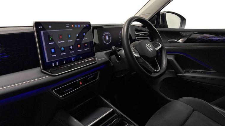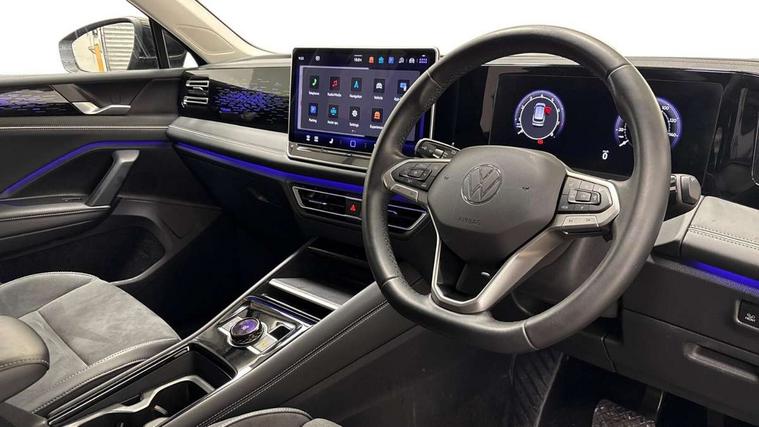 Adaptive cruise control (ACC), Advanced driver attention and drowsiness monitor, Bluetooth mobile phone interface, Comfort drive travel assist, lane keeping system, lane assist and emergency assist, Digital Cockpit Pro - 10.25" high resolution dash display screen with customisable menus and information, Dynamic road sign display, E-Sim card for online connectivity, eCall emergency call service, Front Assist - Autonomous emergency braking with pedestrian and cyclist monitoring, Lane change system, Side assist, Rear traffic alert and Exit warning system, Multifunction front facing camera, Oncoming vehicle braking when turning including swerve support, Park assistance plus with front and rear parking sensors, Power assisted steering with speed sensitive, Start/stop system with regenerative braking, Warning signal and warning light for front and rear seatbelts not fastened, Wireless App-Connect, Front wheel drive, Digital radio reception (DAB), Diversity antenna for FM reception, Ambient lighting with logo projection, Auto dimming interior rear view mirror, Automatic headlight control system, Body colored bumpers in R-Line style, Body coloured door handles, Body-coloured exterior mirror housings, Chrome moldings on the side windows, Coming/leaving home lighting function, Heat insulating glass in side and rear windows, Heated rear window, Heated windscreen washer jets, High level 3rd brake light, Illuminated door handle recesses, Illuminated lightline between headlamps, Laminated safety glass from B-pillar backwards 90% tinted, Laminated safety glass windshield, Rain sensor windscreen wipers, Rear fog light on one side, reversing light on both sides, Rear side wing doors, Rear wiper, Silver roof rails, 12V outlet in center console rear and in luggage compartment, 12V socket in centre console, 3 bench rear seats in 2nd row, Air care climatronic 3 zone air conditioning system with rear air conditioning control panel, Carpet mats, front and rear, Centre console with illuminated storage compartment with sliding cover and two drinks holders, Ceramique headlining, Chrome elements on the mirror switch and power window switches and door pulls, Door and side trim panel with leatherette insert, Door sill protectors, Front centre armrest, Interior ambient lighting with 30 colour options, ISOFIX anchors for child seats on outer rear seats and front passenger seat compatible with i-Size, Mechanical rear seat release, Power adjustable lumbar support in front, Rear bench seat, split folding, longitudinally movable and folding with load-through hatch and centre armrest, Safety optimised front head restraints, Single front passenger seat, Sports comfort seats in front, Sun visors with illuminated vanity mirrors, Three rear head restraints, Variable luggage compartment floor, Comfort package incl. Memory feature for Park assist and Safelock - Tiguan, Driver assistance package - Tiguan, 3 point seat belt for centre rear seats, 3 Point seat belts in front with pretensioners, 3 point seatbelts in outer rear with ECE label, Driver and front passenger airbag with front passenger airbag deactivation, Electronic parking brake with auto hold, Front and rear curtain airbags, Front and rear side airbags, Front centre airbag, Front disc brakes, Manual child proof rear door locks, Rear disc brakes, Two tone horn, Warning triangle, Anti theft wheel bolts, Decorative inserts Cross in dash and front door panels, Interior door handle in matte chrome, Soul instrument panel,