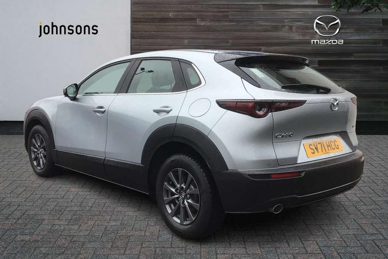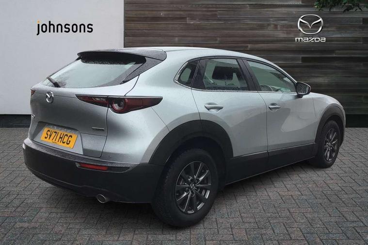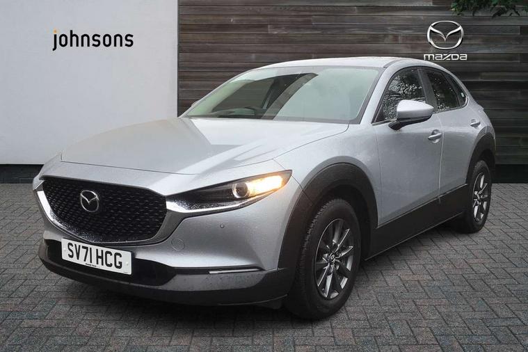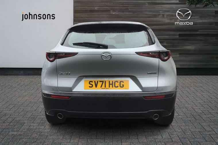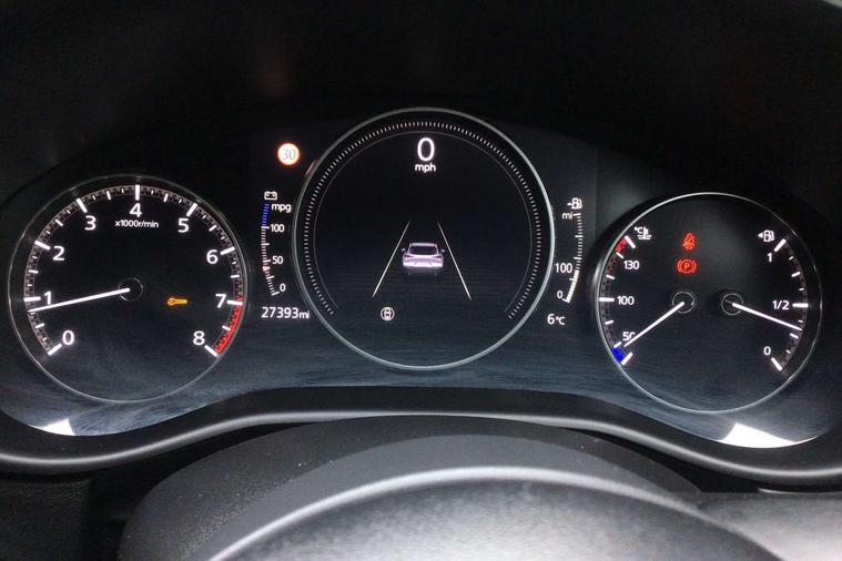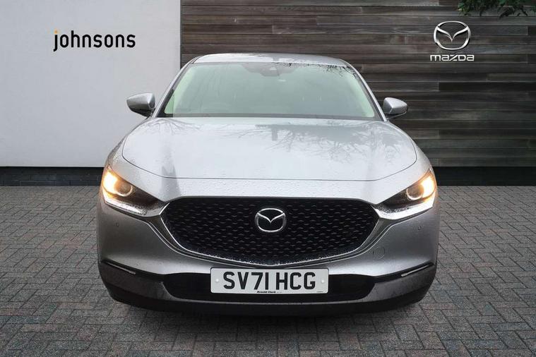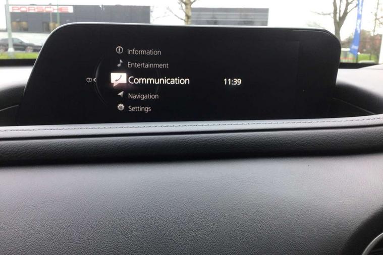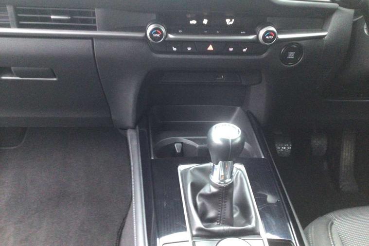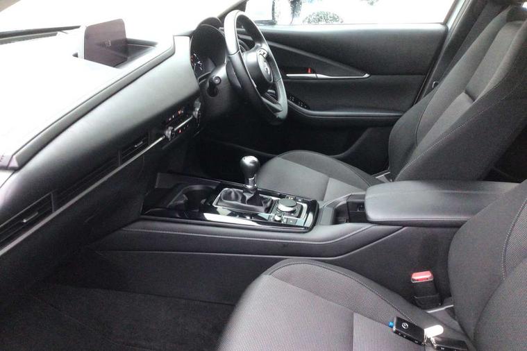 7" TFT Colour driver instrument panel display, 8.8" Colour centre touch screen display with Mazda Connect infotainment, Adaptive cruise control (Mazda radar cruise control), Apple car play/Android Auto, Blind spot monitoring with rear cross traffic alert, Driver attention alert system, E-call with GPS, Emergency stop signalling system, Engine start/stop button, Front and rear parking sensors, Integrated bluetooth, Integrated Mazda navigation system, Intelligent speed assist, Lane keep assist system (LAS) with Lane departure warning system (LDWS), Mazda connected services, PAS, Reversing camera, Service indicator, Traffic sign recognition, Trip computer, Cylinder Deactivation, i-stop, 2 USB charging ports in front inner central armrest, AM / FM / DAB radio with 8 speakers, Multimedia Commander including separate volume dial, Steering wheel mounted audio/bluetooth controls, B-pillar and C-pillar garnishes in satin black finish, Auto dimming driver's door mirror, Auto dimming rear view mirror, Auto headlight levelling, Body coloured, electrically adjustable, heated auto power folding door mirrors with integrated indicators, Chrome finish signature wing in front grille, Coming/leaving home lighting function, Dual chrome exhaust, Dusk sensing headlights, Electric front/rear windows with one touch auto up/down, Front kodo turn signal, Gloss black rear roof spoiler, LED headlights with halogen daytime running lights and high beam control, LED rear combination lights, Rain sensing front wipers with adjustable speed and intermittent wipe, Rear fog lights, Rear wiper, Satin black front grille, 12V power outlet in centre console, 60/40 split fold down rear seats, Cloth upholstery with interior accents, Dark cloth door panel inserts, Dashboard, door cards and front centre armrest in black cloth, Driver and front passenger visors with covered vanity mirror and driver ticket holder, Driver seat manual slide, recline, height and seat tilt adjust, Driver, front passenger and two rear door storage, Driver, Front passenger and two rear grab handles with coathooks, Dual zone climate control air conditioning with rear air vents, Folding rear centre armrest with two cup holders, Front and rear (x3) head restraints, Front and rear LED lighting, Front armrest, Front centre storage with two cupholders, Front passenger seatback pockets, Front passengers seat manual slide, recline and height adjustment, Gear shift indicator, Glovebox illumination, Heated front seats with 3 stage setting, ISOFIX child seat anchorage points attached on outer rear seats, Leather wrapped gear shift knob, Leather wrapped steering wheel with telescopic and tilt adjustment, LED luggage compartment lighting, Light roof headlining and pillars, Roof mounted sunglasses holder, 3 point ELR front seat belts x2 with pretensioners, 3 point ELR rear seat belts, Anti-lock braking system (ABS), Drivers knee airbag, DSC - Dynamic Stability Control, Electronic parking brake with auto disengage function and auto hold function, Front and rear curtain airbags, Front dual stage driver and single stage front passenger airbags, Front passenger airbag cut-off switch, Front side airbags, Front smart city brake support, G-Vectoring control plus, Hill launch assist, Mild Hybrid system with regenerative braking, Seatbelt reminder for driver/front passenger and rear seats, Traction control system (TCS), Tyre pressure monitoring system (TPMS), Remote central locking with deadlocking and automatic door lock when driving, Smart keyless entry, Thatcham accredited alarm and immobiliser, 16" Grey alloy wheels, Emergency tyre repair kit,