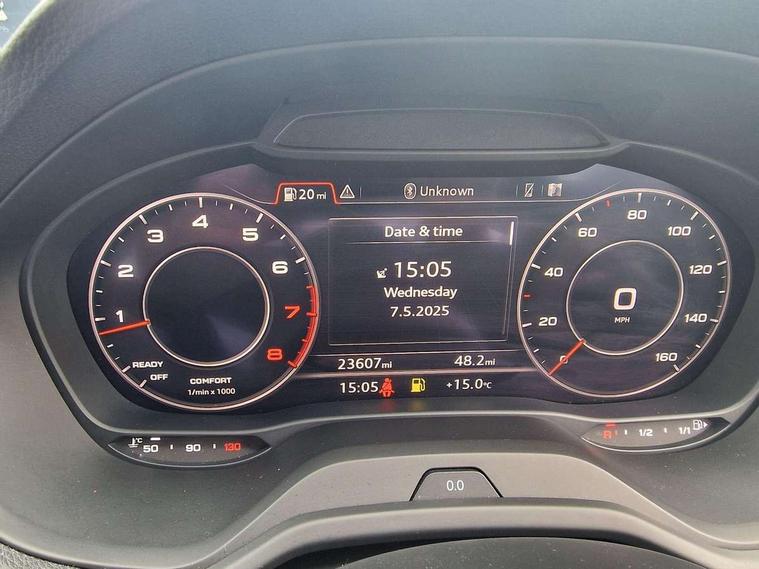 3D map display, Audi connect navigation and infotainment includes innovative services, Audi connect remote and control connects your vehicle to your smartphone, Audi drive select: power steering assistance + engine (modes: comfort, auto, dynamic, efficiency, individual), Audi smartphone interface - Apple carplay/Android Auto, USB connect, 2xSDXC card readers, voice control for navi, telephone, music and 3rd party apps, Audi virtual cockpit, Automatic start/stop system with recuperation, Bluetooth interface includes bluetooth audio streaming, Cruise control, E-call, Jukebox hard drive memory for music (10GB), MMI navigation plus with 8.3" colour MMI screen and MMI touch, Natural voice recognition, Power operated tailgate, Progressive steering, Rear parking sensors, Sport suspension, 6 passive loudspeakers, DAB Digital radio, Auto dimming rear view mirror, Black window trims, Body colour door mirrors, Electrically adjustable, folding, auto dimming and heated door mirrors with integrated LED side indicators, Front windscreen with grey tinted sunband, LED daytime running lights, LED headlights with dipped beam, high beam, position lights, indicators, LED rear lights, LED third brake light, Privacy glass - dark tinted rear and rear side windows from B-pillar backwards, Rear side wing doors, Rear wiper, S Line badges on the front wings, S Line body styling - front and rear bumpers, side skirts, radiator grille, rear diffuser insert and front air intakes, Variable front intermittent wipers, Wheel arch trims in manhattan grey, 12v socket in front, 3 seat bench in 2nd row, 3 spoke multi-function leather steering wheel with S badging, 4-way electric lumbar support for front seats including manual seat height adjustment for both front seats, 60/40 split folding rear seat bench, Black carpets, Black cloth headlining, Front and rear head restraints, Front centre armrest, Front sport seats, Front/rear floor mats, Height/reach adjust steering wheel, Illuminated door sill trims with S logo, ISOFIX child seat mounting in front passenger and rear outer seats, Manual air conditioning, Single front passenger seat, Stainless steel pedals, 3x3 point rear seatbelts, 6 airbags - Front, curtain and front side airbags, Electromechanical parking brake, Electronic stabilisation control including ABS, ASR and EDL, Front passenger airbag deactivation, Hill hold assist, Pre-sense front with pedestrian recognition, Seatbelt monitoring, Tyre pressure warning light with visual and acoustic warning, Warning triangle and first aid kit, Anti theft alarm, Anti theft wheel bolts, Electronically operated child locks, Remote central door locking, Aluminium interior element, Black dashboard, Matt brushed aluminium trim inlays, Tool kit,