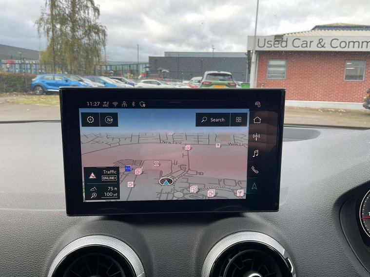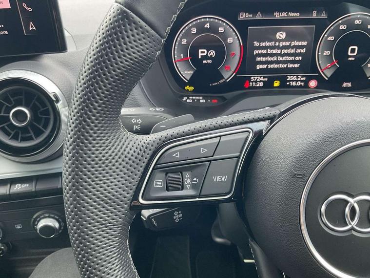 3D map display, Audi connect navigation and infotainment includes innovative services, Audi connect remote and control connects your vehicle to your smartphone, Audi drive select: S tronic - power steering assistance + engine + gearshift (modes: comfort, auto, dynamic, efficiency, individual), Audi smartphone interface - Apple carplay/Android Auto, USB connect, 2xSDXC card readers, voice control for navi, telephone, music and 3rd party apps, Audi virtual cockpit, Automatic start/stop system with recuperation, Bluetooth interface includes bluetooth audio streaming, Camera based traffic sign recognition, Cruise control, Distraction and Fatigue warning, E-call, Jukebox hard drive memory for music (10GB), Lane departure warning, MMI navigation plus with 8.8" touchscreen, Natural voice recognition, Power operated tailgate, Progressive steering, Rear parking sensors, Sport suspension, 6 passive loudspeakers, DAB Digital radio, USB type C port, Audi beam, Auto dimming rear view mirror, Black window trims, Bumper in full body colour paint finish, Electrically adjustable, folding, auto dimming and heated door mirrors with integrated LED side indicators, Front windscreen with grey tinted sunband, LED daytime running lights, LED headlights with dipped beam, high beam, position lights, indicators, LED rear lights, LED third brake light, Privacy glass - dark tinted rear and rear side windows from B-pillar backwards, Rear side wing doors, Rear wiper, Variable front intermittent wipers, Wheel arch trims in manhattan grey, 12v socket in front, 3 seat bench in 2nd row, 3 spoke flat bottomed multi-function leather sport steering wheel with gear shift paddles, 4-way electric lumbar support for front seats including manual seat height adjustment for both front seats, 60/40 split folding rear seat bench, Black carpets, Black cloth headlining, Front and rear head restraints, Front centre armrest, Front sport seats, Front/rear floor mats, Height/reach adjust steering wheel, Illuminated door sill trims with S logo, ISOFIX child seat mounting in front passenger and rear outer seats, Manual air conditioning, Single front passenger seat, Stainless steel pedals, Black styling pack - Q2, 3x3 point rear seatbelts, 6 airbags - Front, curtain and front side airbags, Electromechanical parking brake, Electronic stabilisation control including ABS, ASR and EDL, Front passenger airbag deactivation, Hill hold assist, Pre-sense front with pedestrian recognition, Seatbelt monitoring, Tyre pressure warning light with visual and acoustic warning, Warning triangle and first aid kit, Anti theft alarm, Anti theft wheel bolts, Electronically operated child locks, Remote central door locking, Aluminium interior element, Black dashboard, Gloss black centre console, Matt brushed aluminium trim inlays, Tool kit,