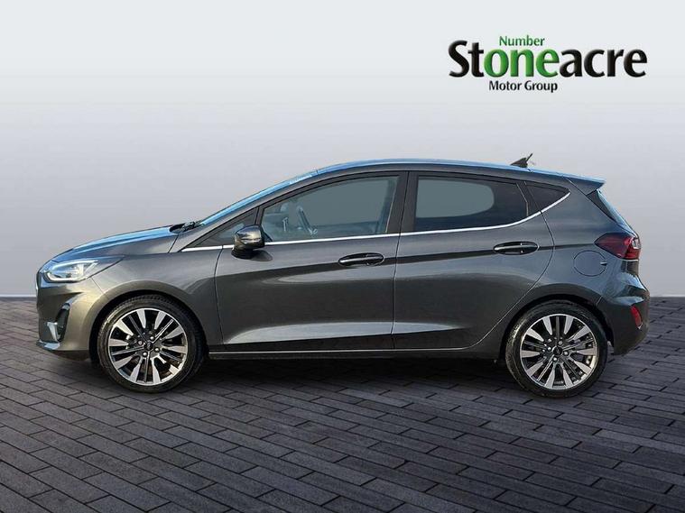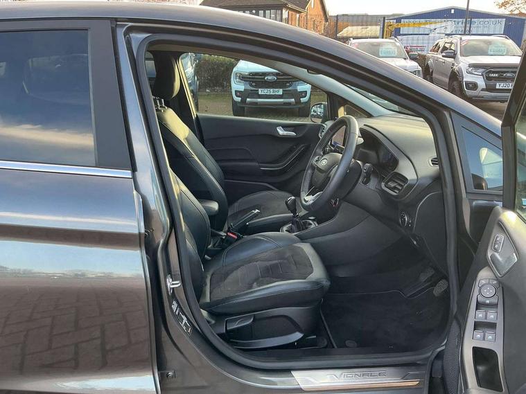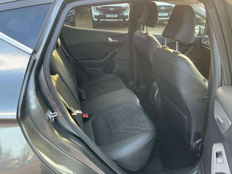 12.3" Full digital cluster, Driver alert system, Electric power steering, Ford easy fuel, Ford SYNC 3 Nav with DAB radio, 8" touch screen, voice control, emergency assist, Apple CarPlay/Android auto, 2x USB, 6 speaker, Ford pass connect, Rear parking distance sensors, Rear view camera, Selectable drive modes (Normal, Sport, Track), Speed sign recognition, Trip computer, Wrong way alert, Standard suspension, Auto high beam, Body colour bumpers, Body coloured electrically operated with side indicators, Electric front windows/one touch facility, Front titanium scuff plates, High gloss chrome surround with satin grille insert, LED Night signature to rear lights, LED third brake light, Quickclear heated windscreen, Rain sensing wipers and auto dimming rear view mirror, Rear privacy glass, Rear side wing doors, Rear wiper, 3 seat bench in 2nd row, 4 way manually adjustable passenger seat, Adjustable head restraints, Centre console with opening armrest, 2x cupholders, 12v and USB, Drivers and Passenger lumbar support, EATC - Electronic Auto Temperature control, Front floor mats in velour, Leather gaiter, LED ambient lighting (Ice blue), Manual 4-way driver seat adjust, Sensico partial premium leather upholstery with metal grey stitching, Sensico wrapped steering wheel, Single front passenger seat, NCAP Pack - Fiesta, Winter pack [GTBAB]- Fiesta, 3 point seatbelts on all rear seats, Electronic stability control with hill start assist, Manual child lock in rear doors, Tyre pressure monitoring system, Ford keyfree system with Keyless entry and keyless start, MyKey system, Remote central locking, Thatcham alarm with power door dead locks, 17" 10 spoke alloys with pearl grey machined finish,