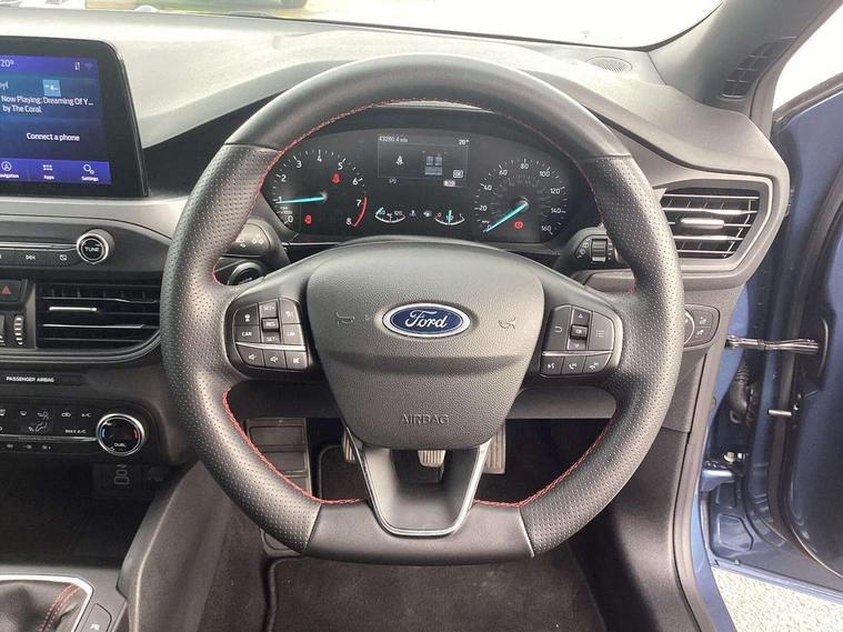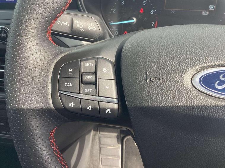 4.2" Colour TFT Ice blue illumination analogue cluster with trip computer, Bluetooth system, Digital clock, Easy fuel capless refuelling system, eCall emergency call system, Eco mode, Lane keeping system - lane keeping alert and lane keeping aid, PAS, Rev counter, Selectable drive mode, Service interval indicator, Sports tuned suspension, 2 USB ports, Auto headlamps (on/off), Body coloured door handles, Electrically operated front and rear windows with one touch opening and closing, Electrically operated heated power fold door mirrors with puddle lamp with side indicators, Front variable intermittent wipers with electric wash, Full fixed LED headlamps, Heated rear window, LED daytime running lamp, LED rear lamps, LED third brake light, Polished twin tailpipe, Privacy glass, Quickclear heated windscreen, Rain sensor, Rear side wing doors, Tailgate wash/wipe, Unique ST-Line grille, full bodystyling kit, and large body coloured rear spoiler, 3 rear headrests, 3 seat bench in 2nd row, Cloth upholstery, Dual zone electronic air temperature control, Height adjustable front headrests, Isofix child seat preparation, Reach + rake adjustable steering column, Single front passenger seat, 3x3 point rear seatbelts, ABS+Electronic Brake force Distribution, Auto hold function, Driver airbag, EDL traction control, Electronic parking brake, Electronic stability control, Front and rear seatbelt reminder, Front inertia reel height adjustable seatbelts with pre-tensioners, Front passenger airbag, Front side airbags, Passenger airbag deactivate switch, Post collision braking, Pre collision assist with autonomous emergency braking and pedestrian/cyclist detection, Remote/power child rear door locks, Side curtain airbags, Three rear inertia reel lap/diagonal seatbelts, Tyre pressure monitoring system, Keyless entry and keyless start, MyKey system, Remote central locking & engine immobiliser, Thatcham alarm with power door dead locks, 17" 5 spoke Rock mettalic finish alloy wheels with mini spare wheel,
