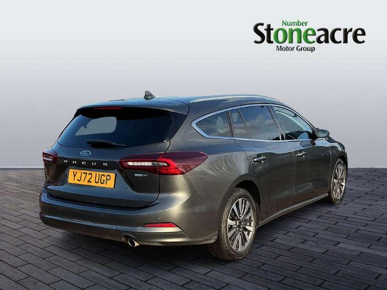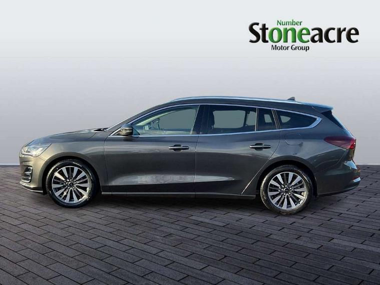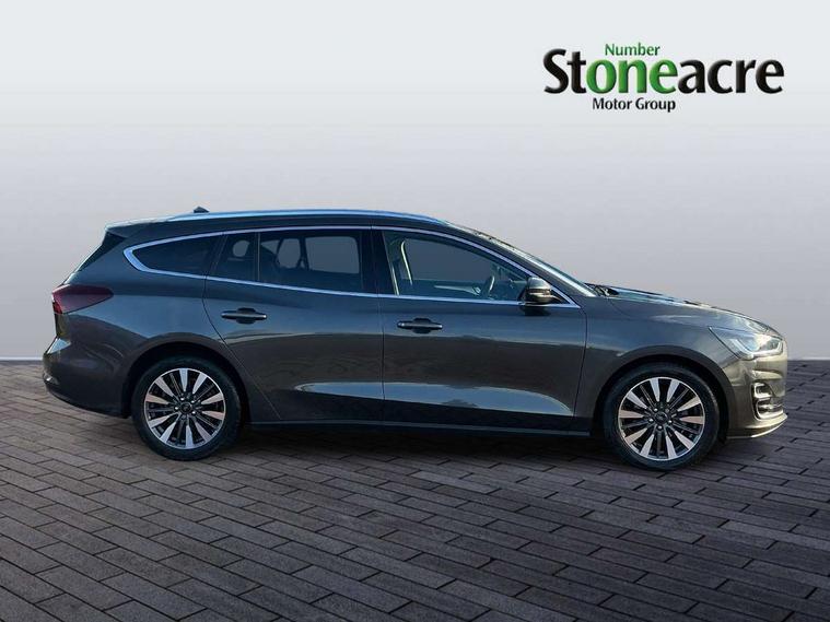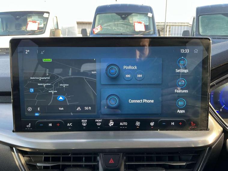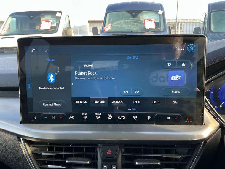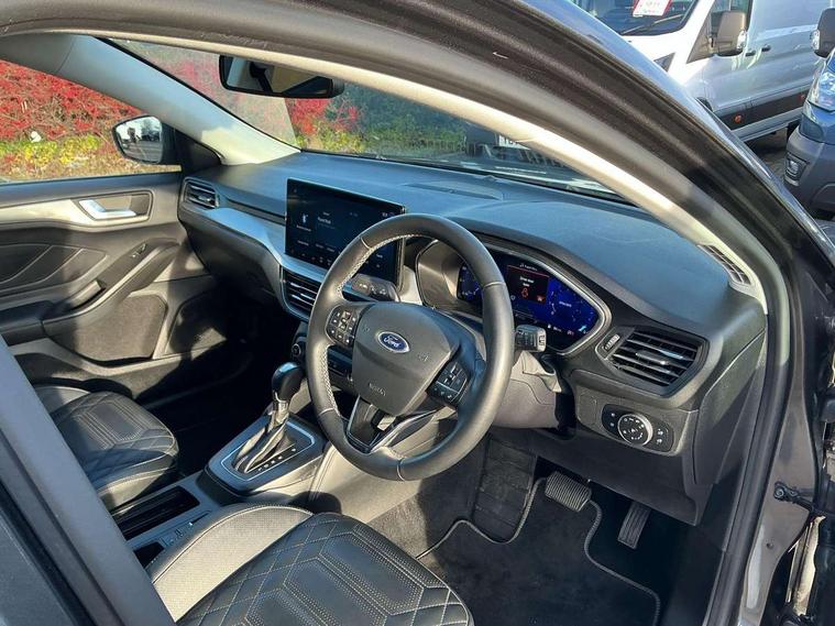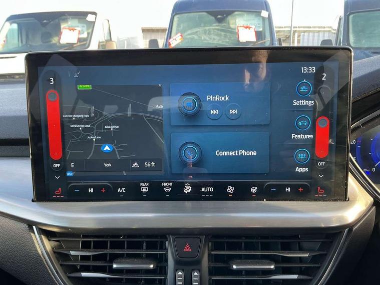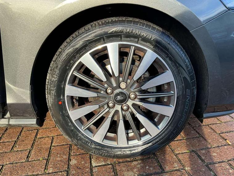 12.3" Digital instrument cluster, Bluetooth system, Digital clock, Easy fuel capless refuelling system, Eco mode, Ford SYNC4 Nav with 13.2'' touchscreen, DAB, Emergency Assistance, Apple Carplay & Android Auto, B&O Premium Audio with 10 speakers, FordPass Connect, Lane keeping system - lane keeping alert and lane keeping aid, PAS, Rev counter, Selectable drive mode, Service interval indicator, Trip computer, Wireless charging pad, Auto headlamps (on/off), Body coloured door handles, Electrically operated front and rear windows with one touch opening and closing, Electrically operated heated power fold door mirrors with puddle lamp with side indicators, Front variable intermittent wipers with electric wash, Grille with chrome bars and self colour surround, Heated rear window, LED daytime running lamp, LED rear lamps, LED third brake light, Privacy glass, Quickclear heated windscreen, Rain sensor, Rear side wing doors, Tailgate wash/wipe, 3 rear headrests, 3 seat bench in 2nd row, Dual zone electronic air temperature control, Full sensico premium upholstery, Height adjustable front headrests, Isofix child seat preparation, Load through ski hatch, Manual 2-way passenger seat adjust, Power 4-way driver seat adjust, with power lumbar adjust, Reach + rake adjustable steering column, Single front passenger seat, Winter pack - Focus, 3x3 point rear seatbelts, ABS+Electronic Brake force Distribution, Auto hold function, Driver airbag, EDL traction control, Electronic parking brake, Electronic stability control, Front and rear seatbelt reminder, Front inertia reel height adjustable seatbelts with pre-tensioners, Front passenger airbag, Front side airbags, Passenger airbag deactivate switch, Post collision braking, Pre collision assist with autonomous emergency braking and pedestrian/cyclist detection, Remote/power child rear door locks, Side curtain airbags, Three rear inertia reel lap/diagonal seatbelts, Tyre pressure monitoring system, Keyless entry and keyless start, MyKey system, Remote central locking & engine immobiliser, Thatcham alarm with power door dead locks, 17" 5x3 spoke alloy wheels with Pearl grey machined finish with mini spare wheel,