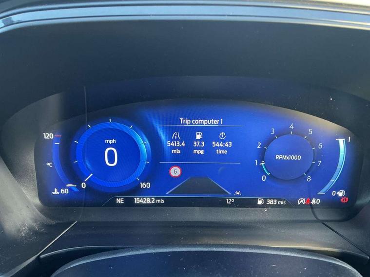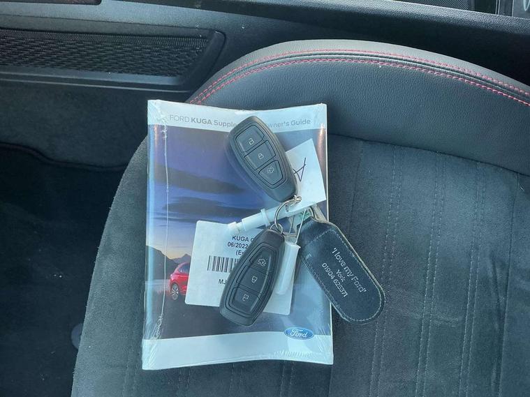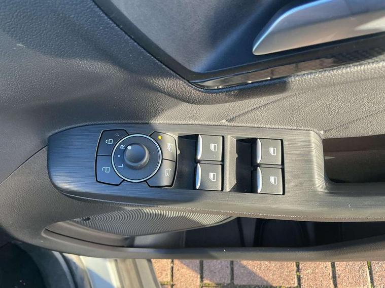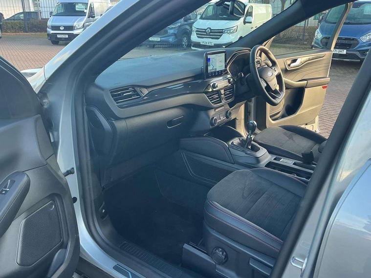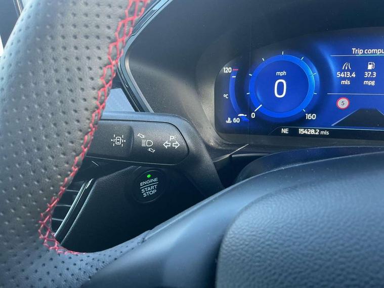 12.3" digital colour instrument cluster, Ford easy fuel, Ford SYNC 3 with 8" TFT LCD touchscreen, App Link, andriod auto/apple carPlay, emergency assistance and navigation with Ford pass connect, Front and rear parking sensors, Hands free power tailgate, Lane keeping aid with lane departure warning, Power assist steering, Rear view camera, Selectable drive modes, Service interval indicator, Sports suspension, Twist beam rear suspension, B&O premium audio system with 10 speakers and subwoofer, 2 USB ports, DAB radio/CD, Auto headlamps with high and low beam, Black roof rails, Body colour bumpers, Day/night rear view mirror, Front LED fog lamps, Large rear roof spoiler, LED daytime running lights, LED rear lights, Power folding, electrically adjustable and heated door mirrors with puddle lights, Power front/rear windows with global close, Power opening panoramic roof, Quickclear heated windscreen, Rain sensing wipers, Rear privacy glass, Rear side wing doors, Rear wiper, ST Line body styling kit with unique front and rear fascia and bumper, rear painted diffuser, front painted skid plates, dark mesh upper grille, ST Line front scuff plates, Third brake light, Twin exhausts, 2nd row sliding seats with 60:40 split, Alloy pedals, Centre console with electronic parking brake, Dark headlining and pillars, Electronic automatic temperature control (EATC), Flat bottomed leather steering wheel in sensico with red stitching, Front and rear head restraints, Heated passenger and driver seats, Heated rear seats, Heated steering wheel, Partial premium touch Sensico with black cloth inserts and red stitching, Rear centre head restraint, Single front passenger seat, Sports seats, ST Line front and rear floor mats, ST Line gear knob, 3x3 point rear seatbelts, Airbags - front driver/passenger, front and rear curtain, Drivers knee airbag, Electronic stability control (ESC) and ABS, Ford MyKey Gen 2 safety system, Manual child proof rear door locks, Post collision braking, Pre collision assist with autonomous emergency braking, Rear seat Occupancy alert, Red brake calipers, Tyre pressure monitoring system, Engine immobiliser, Keyless entry and Ford power start button (Keyless start), Locking wheel nuts, Remote powered central double locking doors, Thatcham category 1 alarm,