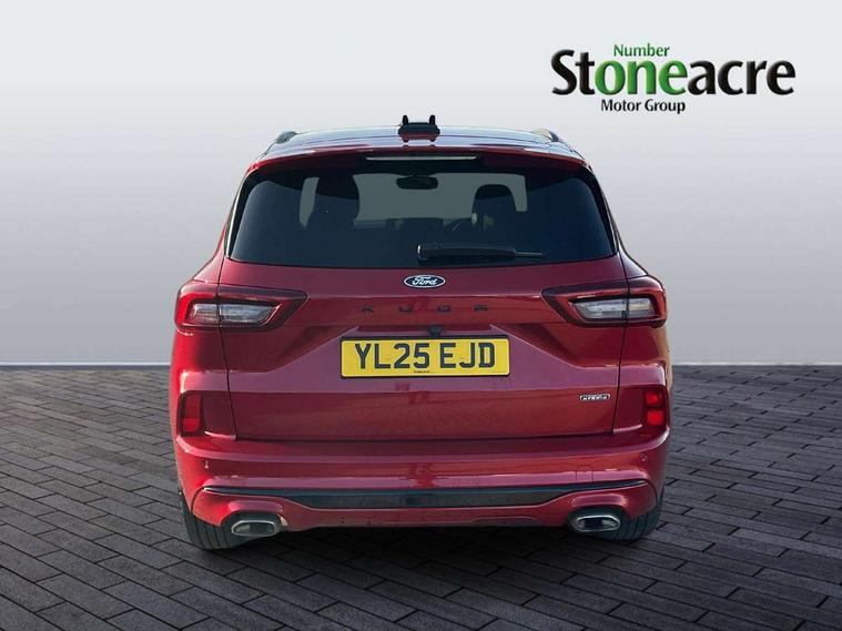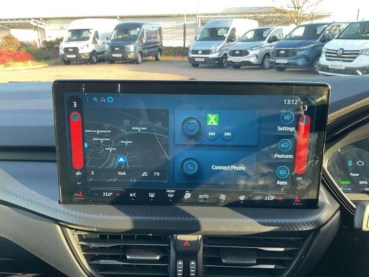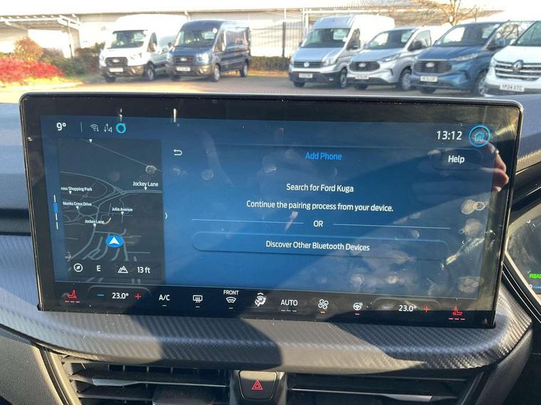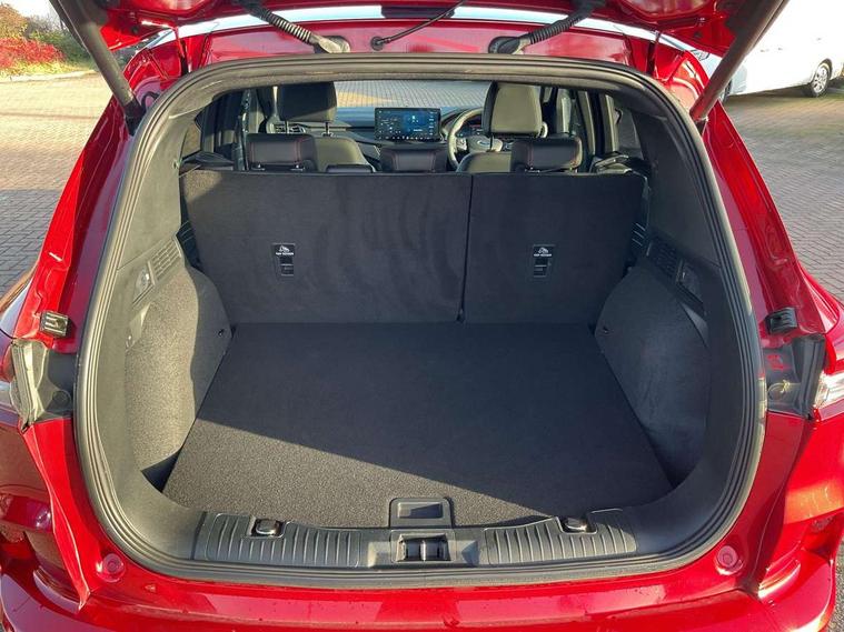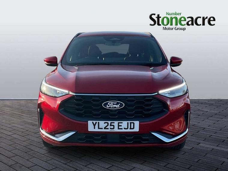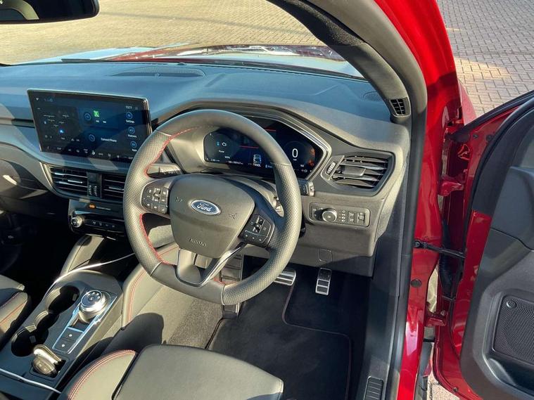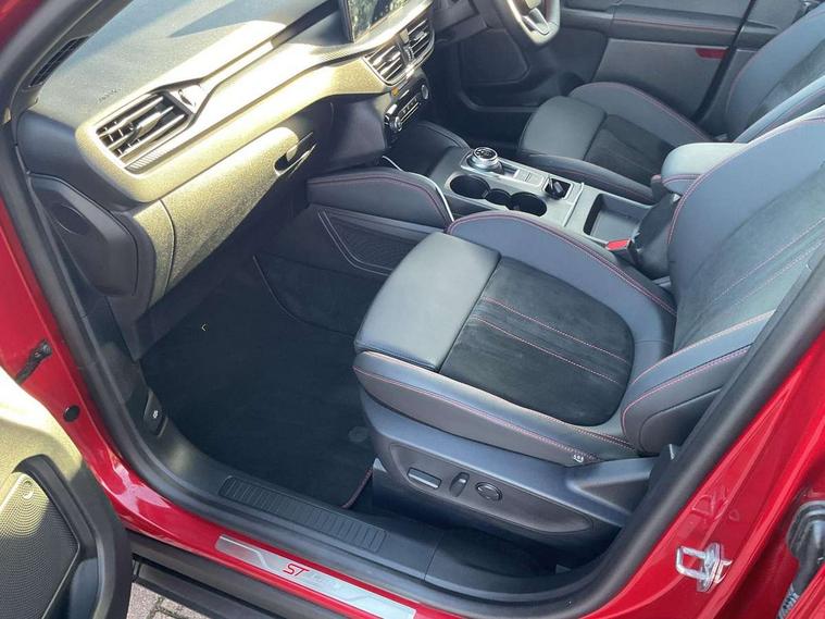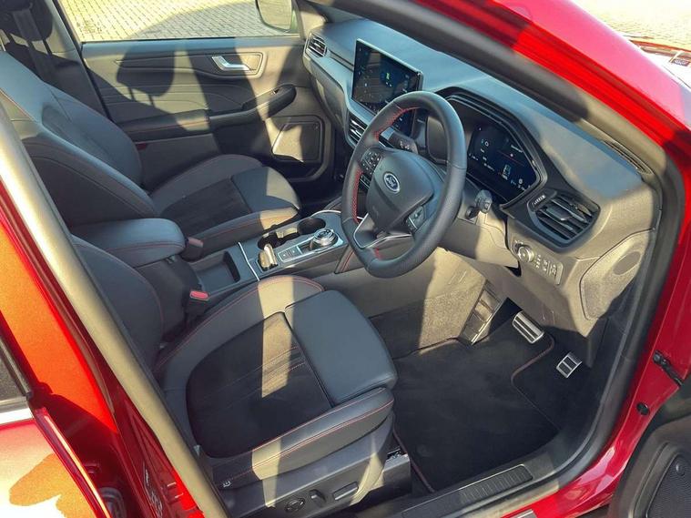 12.3" digital colour instrument cluster, 360 degree view camera, e-Call (emergency call), Ford easy fuel, Ford SYNC 4 Navigation with 13" touchscreen, DAB radio, emergency assistance, Andriod Auto/Apple CarPlay, 5G modem & Ford Pass connect, Front and rear parking sensors, Hands free power tailgate, Lane centering assist, Lane keeping aid with lane departure warning, Power assist steering, Selectable drive modes, Service interval indicator, Sports suspension, Twist beam rear suspension, B&O premium audio system with 10 speakers, subwoofer and 2 USB ports, Auto headlamps with high and low beam, Black roof rails, Body colour bumpers, Front LED fog lamps, Large rear spoiler, LED daytime running lights, LED rear lights, Pop out door edge protectors, Power front/rear windows with global close, Power heated folding door mirrors with puddle lights, memory function and camera, Quickclear heated windscreen, Rain sensing wipers, Rear privacy glass, Rear side wing doors, Rear wiper, ST-Line body styling kit, Third brake light, 12 way ergonomic power adjust driver's seat with memory (AGR certified), 12 way ergonomic power adjust passenger seat (AGR certified), 2nd row sliding seats, Electronic automatic temperature control (EATC), Front and rear head restraints, Partial premium touch sensico upholstery, Rear centre head restraint, Single front passenger seat, Sports seats, Driver assistance pack with intelligent adaptive cruise control - Kuga FHEV/PHEV, 3x3 point rear seatbelts, Airbags - front driver/passenger, front and rear curtain, Drivers knee airbag, Dynamic brake support, Electronic stability control (ESC) and ABS, Evasive steering assist, Ford MyKey Gen 2 safety system, Manual child proof rear door locks, Pre collision assist with autonomous emergency braking, Rear seat Occupancy alert, Red brake calipers, Tyre pressure monitoring system, Engine immobiliser, Keyless entry and Ford power start button (Keyless start), Locking wheel nuts, Remote powered central double locking doors, Thatcham category 1 alarm,