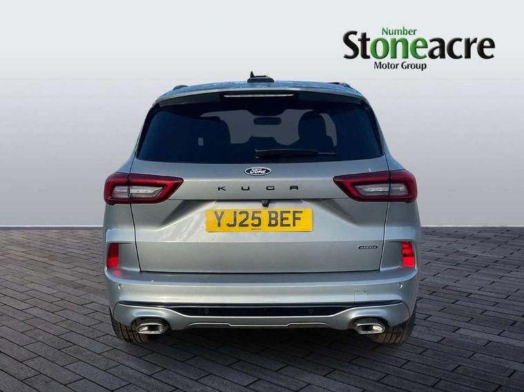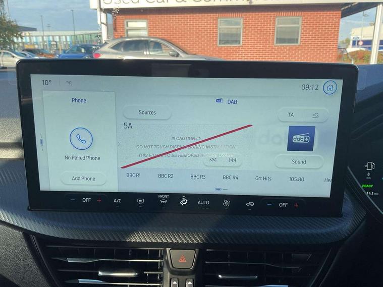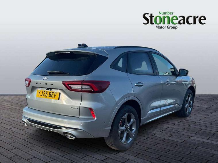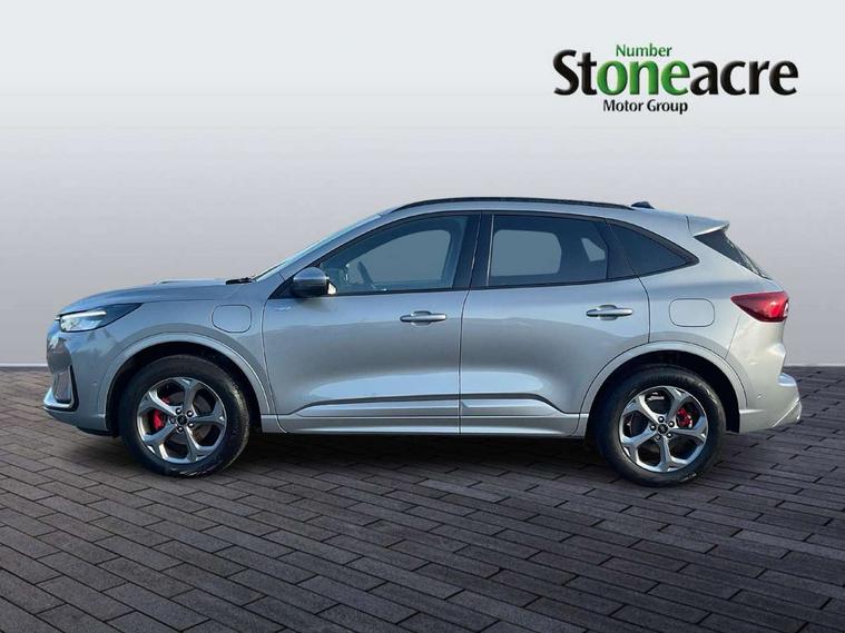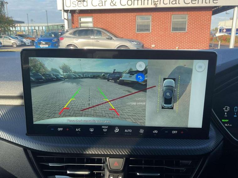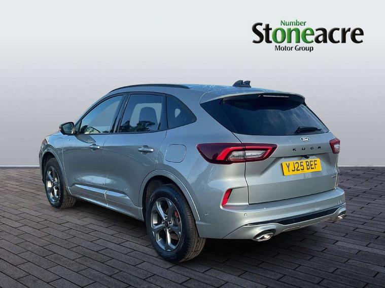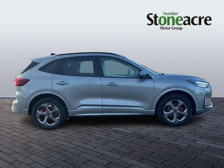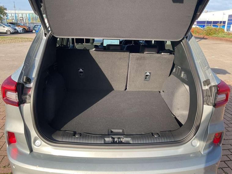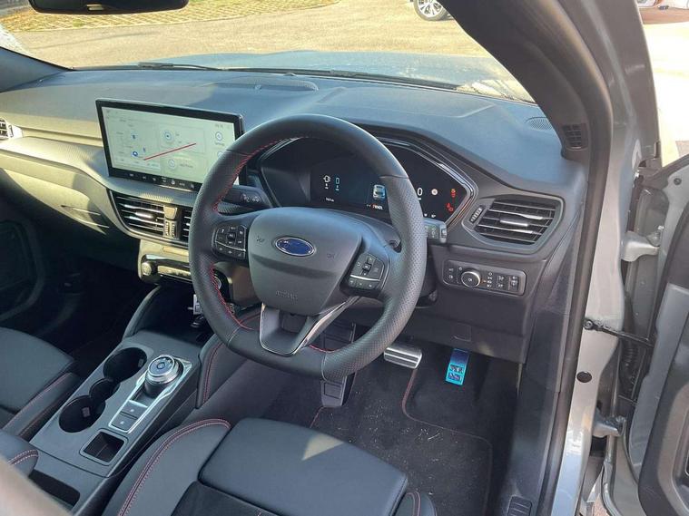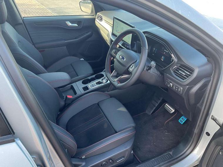 12.3" digital colour instrument cluster, 360 degree camera, e-Call (emergency call), Ford easy fuel, Ford SYNC 4 Navigation with 13" touchscreen, DAB radio, emergency assistance, Andriod Auto/Apple CarPlay, 5G modem & Ford Pass connect, Front and rear parking sensors, Hands free power tailgate, Lane centering assist, Lane keeping aid with lane departure warning, Power assist steering, Selectable drive modes, Service interval indicator, Sports suspension, Twist beam rear suspension, B&O premium audio system with 10 speakers, subwoofer and 2 USB ports, Auto headlamps with high and low beam, Black roof rails, Body colour bumpers, Front LED fog lamps, Large rear spoiler, LED daytime running lights, LED rear lights, Pop out door edge protectors, Power front/rear windows with global close, Power heated folding door mirrors with puddle lights, memory function and camera, Quickclear heated windscreen, Rain sensing wipers, Rear privacy glass, Rear side wing doors, Rear wiper, ST-Line body styling kit, Third brake light, 12 way ergonomic power adjust driver's seat with memory (AGR certified), 12 way ergonomic power adjust passenger seat (AGR certified), 2nd row sliding seats, Electronic automatic temperature control (EATC), Front and rear head restraints, Partial premium touch sensico upholstery, Rear centre head restraint, Single front passenger seat, Sports seats, Driver assistance pack with intelligent adaptive cruise control - Kuga FHEV/PHEV, 3x3 point rear seatbelts, Airbags - front driver/passenger, front and rear curtain, Drivers knee airbag, Dynamic brake support, Electronic stability control (ESC) and ABS, Evasive steering assist, Ford MyKey Gen 2 safety system, Manual child proof rear door locks, Pre collision assist with autonomous emergency braking, Rear seat Occupancy alert, Red brake calipers, Tyre pressure monitoring system, Engine immobiliser, Keyless entry and Ford power start button (Keyless start), Locking wheel nuts, Remote powered central double locking doors, Thatcham category 1 alarm,