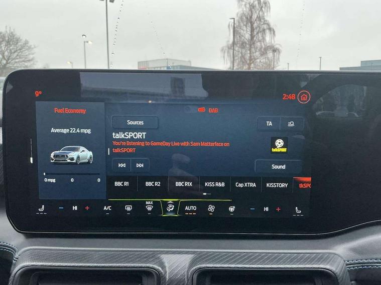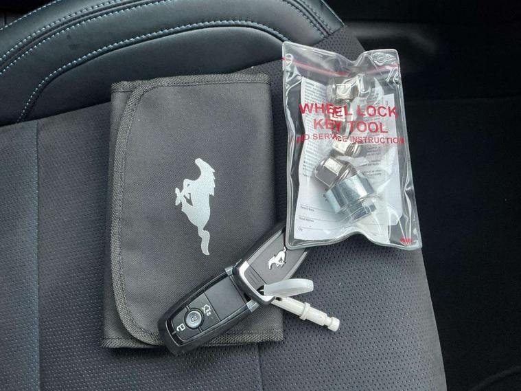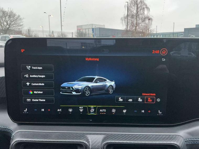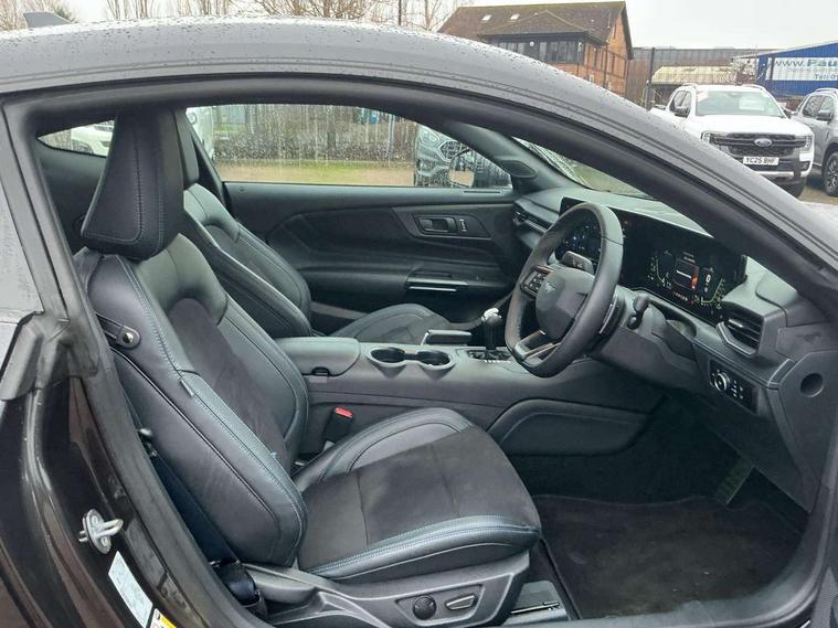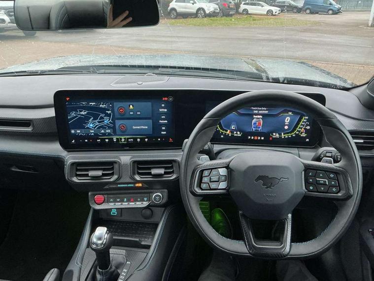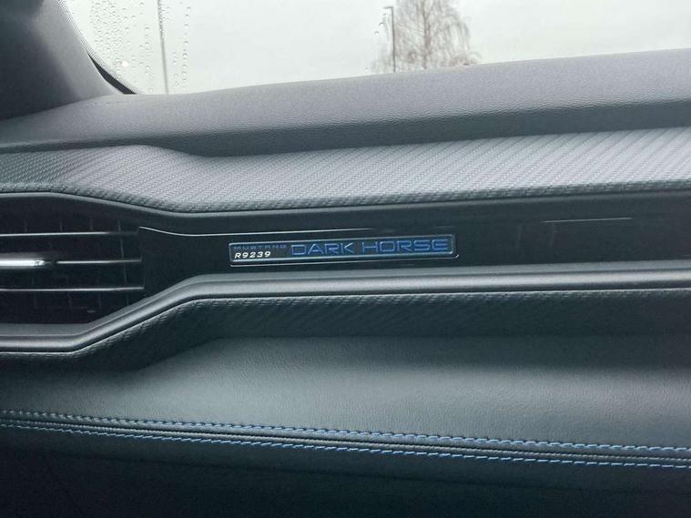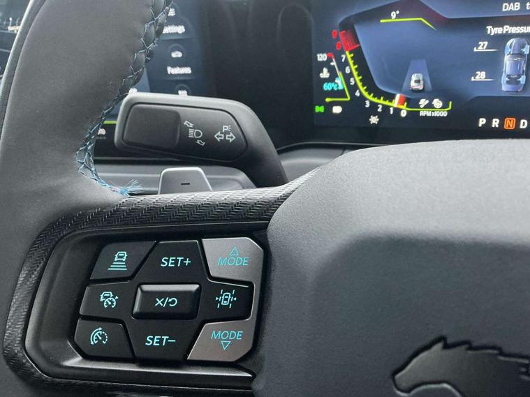 12" digital LCD instrument cluster, Adaptive cruise control with adjustable speed limiter, Apple car play/Android Auto, Bluetooth connectivity with voice control, Electric power steering, Emergency services call system, Ford pass connect embedded modem, Fully customisable 13.2" Touchscreen with wireless smartphone integration, FordPass connect & connected navigation, Lane keeping aid with lane keeping assist, Oil pressure gauge, Rear view camera with rear parking sensors, Selectable driving modes - normal, mymode, snow/wet, sport+, track and drag mode, Service interval indicator, SYNC Emergency Assistance, Track apps with accelerometer technology, Trip computer, Wireless charging and USB charging port, Limited slip differential, Magneride adaptive suspension system with unique Dark Horse calibration and pothole mitigation, Magneride damping system with pothole mitigation, Bang & Olufsen 12-speaker surround sound audio system, DAB Digital radio, USB connection, 3rd brake light, Active exhaust system with quad tailpipes, Auto dimming rear view mirror, Auto high beam, Automatic headlights, Automatic rain sensing wipers, Body colour bumpers, Body colour door mirrors, Bonnet air intake, Dark Horse front grille with dark pony badge, Dark Horse extrior badging and quad tailpipes in black, Dark Horse specific bodykit with exclusive aerodynamic enhancements, Dark Triple-LED headlamps with welcome / farewell animation, Electric front windows, LED daytime running lights, LED rear lights with sequential indicators and welcome / farewell animations, Power-folding door mirrors including blind spot informaion system and mustang logo projection puddle lamps, Rear boot, 6 way power adjustable front seats, Ambient lighting, Cup holders, Electronic automatic temperature control (EATC), Front headrests, Heated leather flat bottom steering wheel with blue stitching and Dark Horse badging, Illuminated entry system, Individually folding 2 rear seats in 2nd row, Isofix system on outer rear seats, Leather gearknob, Reach and rake adjustable leather steering wheel with integrated controls, Rear head restraints, Single front passenger seat, 4 seatbelts, ABS, Drivers knee airbag, Dual front airbags, Electronic Line Lock, Electronic Stability Control (ESC) with three settings, ESP, Front side airbags, Performance brake system with brembo 6 piston front callipers and electronic brake prefill, Pre-collision assist with AEB and pedestrian and cyclist detection, Side curtain airbags, Tyre pressure monitor, Ford key free system with power starter button and keyless entry, Immobiliser, Thatcham Cat.1 alarm, 19" Unique aluminium wheels, Tyre repair kit,