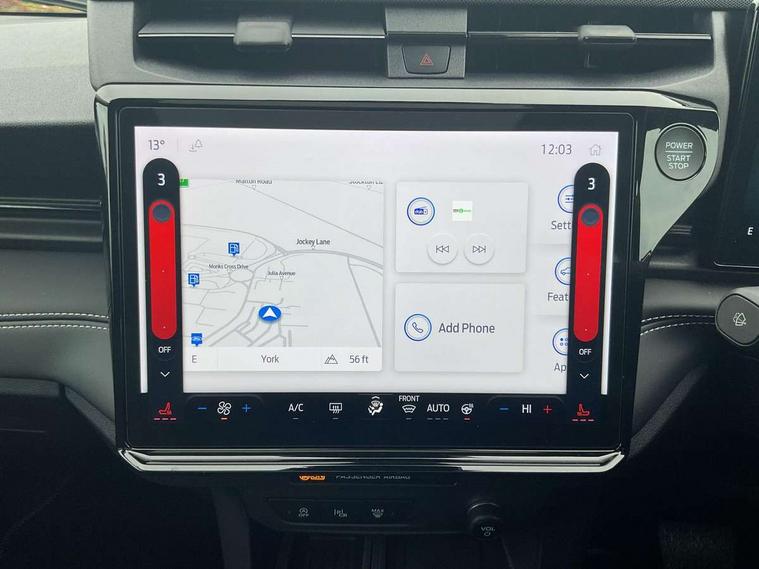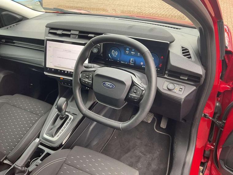 Driver impairment monitor, Emergency call service, Ford easy fuel, Full digital 12.8" instrument cluster, Lane keeping aid with lane departure warning, Power assist steering, Selectable drive modes(Normal, sport, Eco, trail, slippery), Speed sign recognition, Standard suspension, 12" landscape touchscreen display with wireless apple car play and android auto 6 speaker audio system, Ford pass connect and emergency assistance, Ford SYNC4 with connected navigation, Automatic headlights with rain sensing wipers and auto high beam, Front fog lamps, LED daytime running lights, LED rear lamps, LED third brake light, Quickclear heated windscreen, Rear privacy glass, Rear side wing doors, Rear wiper, 3 seat bench in 2nd row, Centre console with armrest and stowage, Electronic automatic temperature control (EATC), Ford megabox extended bootspace, Front and rear head restraints, Front floor mats, Manual 4 way driver seat adjust with lumbar adjustment, Single front passenger seat, Titanium cloth upholstery, 3 rear seatbelts, Child safety lock, Electronic stability control (ESC) and hill start assist, Pre-collision assist with autonomous emergency braking, pedestrian/cyclist detection & post-collision braking, Tyre pressure monitoring system (TPMS), Thatcham alarm, 17" Absolute black machined finish alloy wheel,