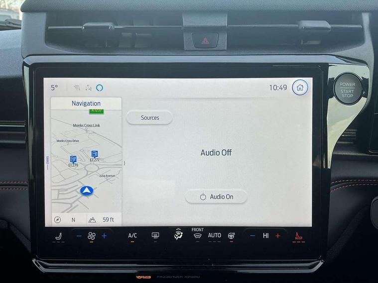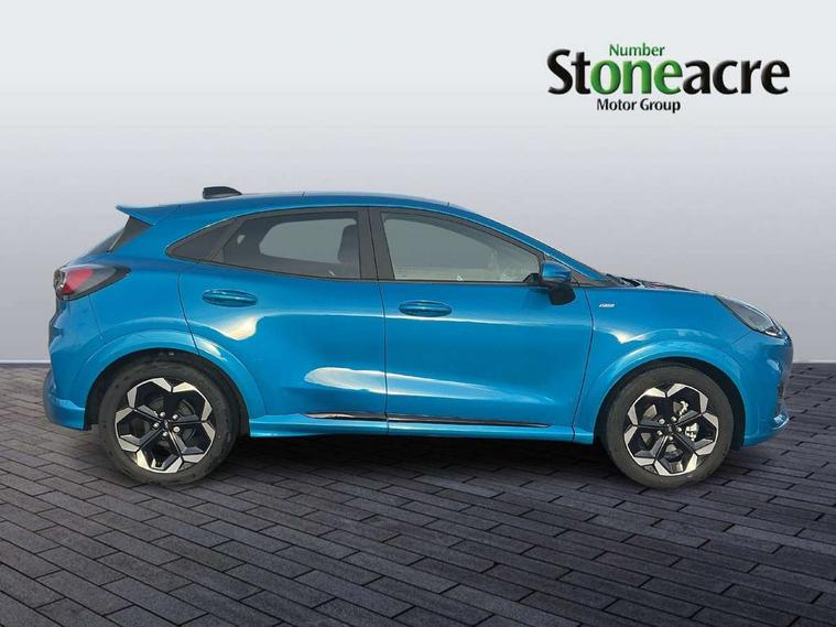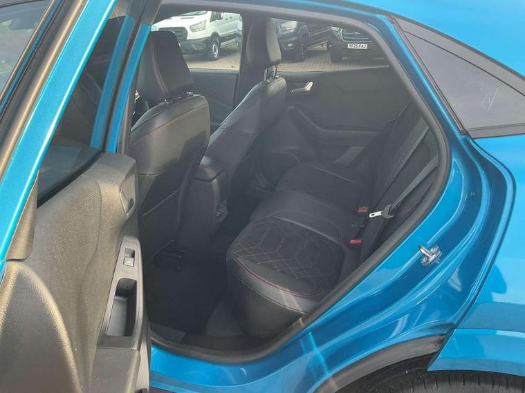 Driver impairment monitor, Emergency call service, Ford easy fuel, Full digital 12.8" instrument cluster, Lane keeping aid with lane departure warning, Power assist steering, Selectable drive modes(Normal, Eco, Sport, Slippery and Trail), Speed sign recognition, Sport suspension, 12" landscape touchscreen display with wireless apple car play and android auto premium B&O audio system with 10 speakers, Ford pass connect and emergency assistance, Ford SYNC4 with connected navigation, Automatic headlights with rain sensing wipers and auto high beam, Front fog lamps, LED daytime running lights, LED rear lamps, LED third brake light, Power foldable heated door mirrors with puddle lamps and puma logo protection, Quickclear heated windscreen, Rear privacy glass, Rear side wing doors, Rear wiper, ST-Line X body styling kit, 3 seat bench in 2nd row, 4 way lumbar support for passenger seat, Centre console with armrest and stowage, Electronic automatic temperature control (EATC), Ford megabox extended bootspace, Front and rear head restraints, Front floor mats, Manual 4 way driver seat adjust with lumbar adjustment, Single front passenger seat, ST-Line X Premium synthetic leather upholstery, Comfort pack with power lift tailgate - Puma, 3 rear seatbelts, Child safety lock, Electronic stability control (ESC) and hill start assist, Pre-collision assist with autonomous emergency braking, pedestrian/cyclist detection & post-collision braking, Tyre pressure monitoring system (TPMS), Thatcham alarm,