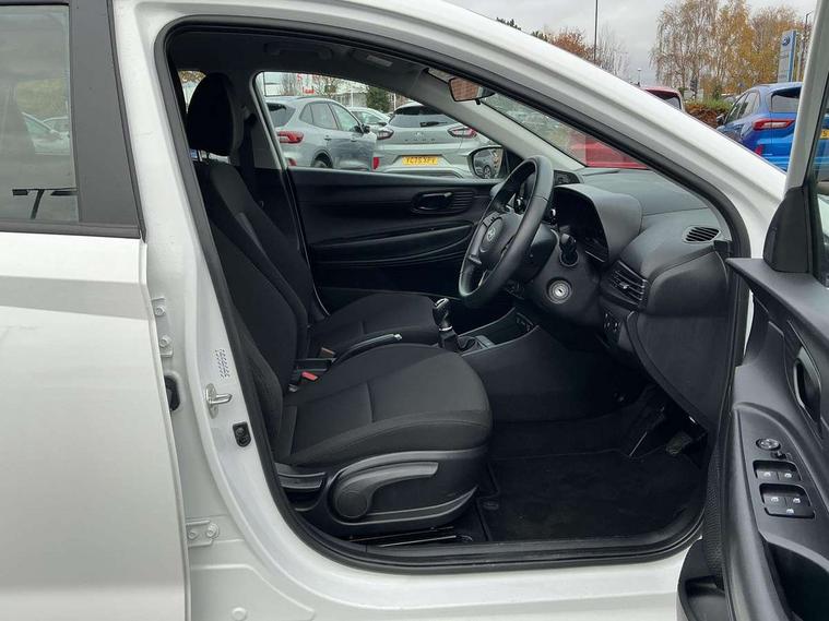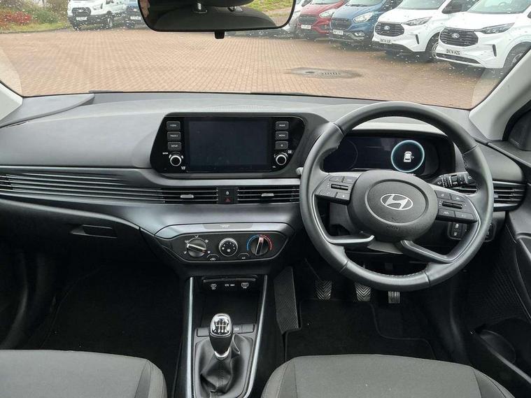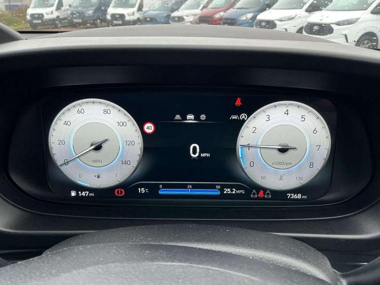 10.25" digital supervision cluster, 2nd Gen eCall, 8" Touchscreen with DAB, Apple car play/Android Auto, Cruise control + speed limiter, Forward collision assist with car, pedestrian and cycle detection, Intelligent speed limit warning, Lane follow assist, Lane keep assist, PAS, Rear parking sensor, Rear view camera with dynamic guidelines, USB C port front, 3rd brake light, Dusk sensor, Electric adjustable heated door mirrors, Front grille mesh pattern design, High beam assist, LED daytime running lights, LED Headlights, LED taillights, Rain sensor, Rear side wing doors, Rear wiper, Repositioned flat metal hyundai emblem, 3 seat bench in 2nd row, Adjustable head restraints, Air conditioning, Cloth upholstery, Floor mats, Leather steering wheel, Single front passenger seat, 3x3 point rear seatbelts, ABS with front and rear diagonally split, Autonomous emergency braking, Child locks on rear doors, Front ventilated disc brakes, Rear solid disc brakes, Tyre pressure monitoring system, 16" alloy wheels, Tyre repair kit,