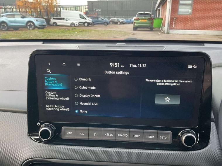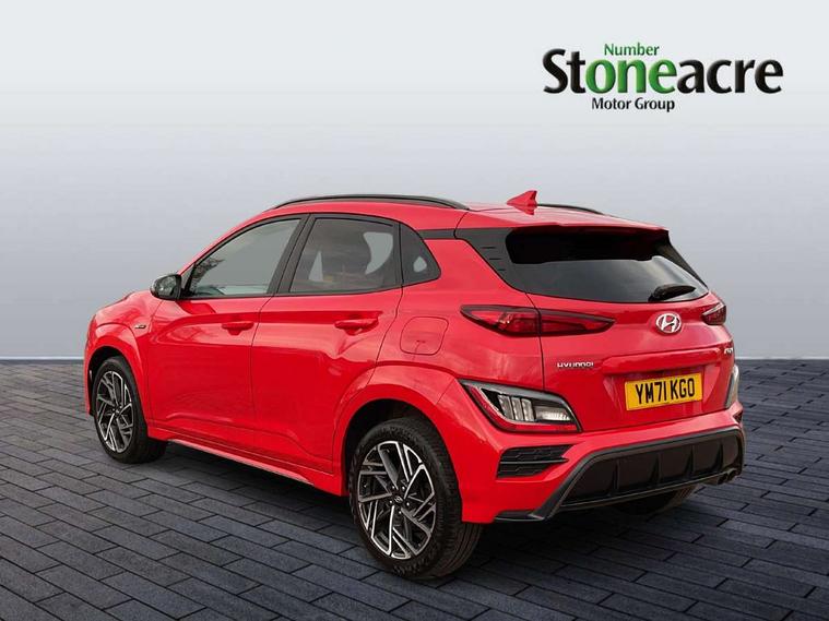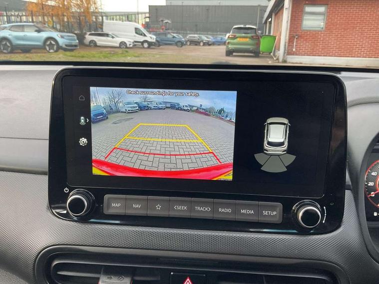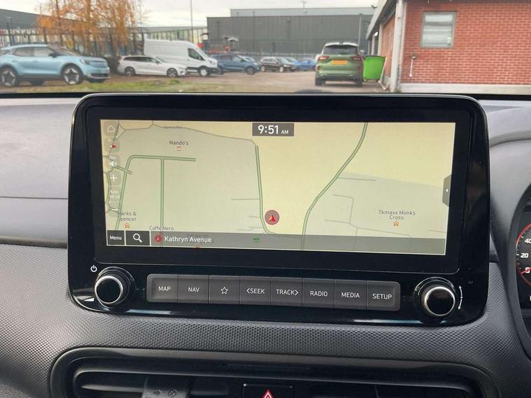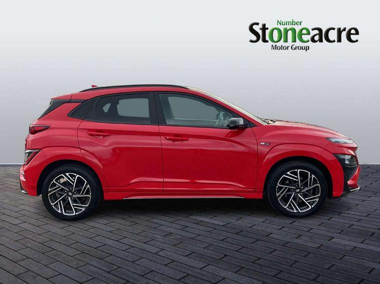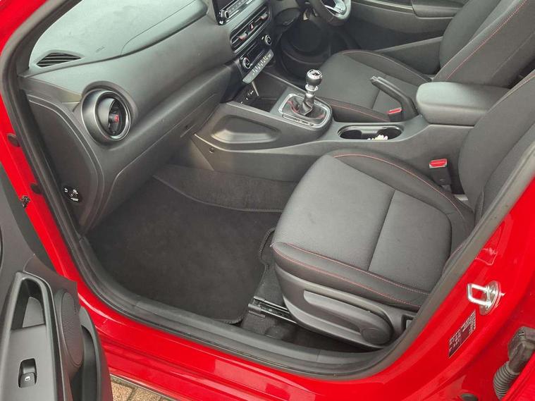 10.25" touchscreen centre console display satellite navigation with live services and mapcare, Bluetooth connectivity, Cruise control + speed limiter, Digital clock, Driver attention warning, Driver supervision instrument cluster with 10.25" LCD display, eCall emergency call system, Forward collision avoidance assist with pedestrian detection, Lane follow assist, Lane keep assist, Leading vehicle departure alert (LVDA), Parking system with rear camera and guidance system, PAS, Phone connection with apple carPlay and android auto, Rear parking sensor, Roadside assistance, Windscreen washer fluid sensor and warning indicator, Wireless phone charging pad, 6 speed intelligent manual transmission, Front and rear USB ports, Krell premium audio system with 8 speakers including external amplifier and subwoofer, RDS and Digital DAB, Steering wheel mounted audio/phone controls, Auto dimming rear view mirror, Automatic headlights with dusk sensor, Automatic windscreen wipers with rain sensor, Black radiator grille, Body colour bumpers, Body colour door mirrors and handles, Body colour side cladding, Body coloured garnish, Door mirror integrated indicators, Electric front/rear windows with drivers one touch/anti-trap, Electrically adjustable and heated door mirrors, Halogen headlights, LED daytime running lights, LED rear lights, Positioning Lights - LED, Power folding door mirrors, Privacy glass - Rear windows and tailgate, Rear roof spoiler with integrated LED brake light, Rear side wing doors, Rear skid plate - silver, Rear wiper, Roof rails, Solar glass with front door glass and windscreen shade band, Windscreen auto defog function, 12V power outlet in front console, 3 seat bench in 2nd row, 60/40 split folding rear seat, Adjustable head restraints, Air conditioning climate control, Ambient lighting, Centre interior light, Cloth upholstery, Door scuff plate, Driver and passenger front seat pockets, Driver's seat electric lumbar support, Driver's seat height adjustment, Driver/passenger sunvisors and illuminated vanity mirrors, Front interior light, Front passenger seat manual adjustments, Height/reach adjustable steering column, Isofix rear child seat fastenings, Leather wrapped steering wheel and gear knob, Luggage compartment lighting, Luggage hooks, Luggage net, Metal paint effect interior door handles, Metal pedals, N logo on the gear shift, Parcel shelf, Rear centre console with air vents, Single front passenger seat, Sunglasses holder, Vertical adjustment rear head restraints, Trailer wiring package - Kona, Airbags - front, front side and curtain airbags, Anti-lock brake system (ABS), Childproof rear door locks, Downhill brake control, EBD + Brake Assist, Electronic stability control, Fasten seatbelt reminder, Fixed 3 point for second row centre passenger seatbelt, Front seatbelt pretensioners, Height adjustable front seatbelts, Hill start assist control (HAC), Manual parking brake, Passenger airbag deactivate switch, Rear seat alert, Traction control, Tyre pressure monitoring system, Alarm/immobiliser, Deadlocks, Folding key, Locking wheel nuts, Remote central locking, 18" Alloy wheels,