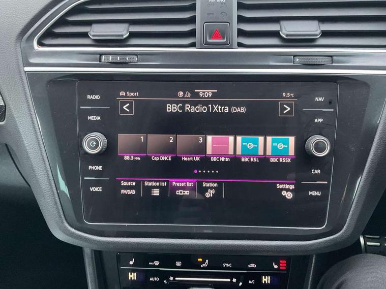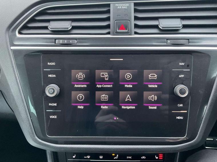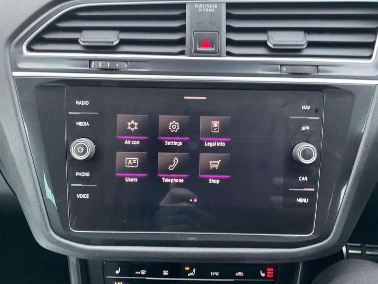 Adaptive cruise control ACC stop and go including speed limiter, App-Connect incl. App-Connect Wireless for Apple CarPlay and Android Auto, Bluetooth phone integration system, Distance control assist, Driver alert system, Driver profile selection, Dynamic road sign display, eCall emergency call system, Electromechanical speed sensitive power steering, Engine start/stop button, Lane keeping system Lane Assist, Lights on warning, Multifunction front facing camera, Outside temperature display, Premium multifunction display with multi colour display, Remote control boot opening, Rev counter, Revision / skills operating concept travel assistant, Service interval indicator, Speed limit display, Start/stop system with regenerative braking, Trip computer, Warning sound and light for doors and tailgate open, All wheel drive - 4Motion, Battery regeneration during braking, XDS electronic differential lock for improved traction and handling, 4 X 20 watt output, 8 Speakers, Diversity antenna for FM reception, Radio, SD card slot, Simultaneous pairing of 2 compatible mobile devices, SMS functionality - read, compose and send SMS messages using touch-screen display, Title and cover art display, USB C ports, Auto dimming interior rear view mirror, Automatic headlight control system, Body colour door handles, Chrome moldings on the side windows, Coming/leaving home lighting function, Dynamic headlight range control, Front and rear electric windows, Heated rear window, High level 3rd brake light, Laminated safety glass windshield, heat and sound insulating, LED headlamps with LED separate daytime running light and dynamic cornering light, LED rear combination lamps, LED rear number plate lights, License plate carrier in front and rear, Poor weather light and cornering light, R Line body kit, R Line side sills, Rain sensor windscreen wipers, Rear exhaust tailpipe, Rear fog lamp, Rear side wing doors, Rear spoiler in R style, Rear windscreen washer and wiper with interval delay, Side and rear windows in heat insulating glass, Trailer Stability Programme, Unique R Line badging, Windscreen wipers/ intermittent wipe + 4 position delay, 12V outlet in center console rear and in luggage compartment, 12V outlet in front and tray, 2 cup holders in front, 2 LED front reading lights, 2 LED rear reading lights, 3 bench rear seats in 2nd row, 3 rear headrests, 4 load lashing points, 40:20:40 split folding rear seats, Air Care Climatronic 3 zone automatic climate control with enhanced air filter and controls in the rear, Backrest release for left front seat, Black headlining, Brushed stainless steel pedals and footrest, Carpet mats in front and rear with decorative stitching in Gray, Climate control unit rear with touch function, Door and side trim panel in foam film, insert in leatherette, Front centre armrest, Front footwell illumination, Front seats head restraints (x-adjustment), Height adjustable front seats, Height/reach adjust steering wheel, Instrument lighting white adjustable panel illumination, Interior light with delay, Isofix Preparation 2 Rear child seats, Leather gear knob, Lockable cooled glovebox, Luggage compartment lighting, Luggage net, Rear bench seat asymetrically split folding, longitudinally movable and folding with load-through hatch and center armrest, Remote unlocking for rear seat backrest, Removable luggage cover, Removable rear headrests, Safety optimised front head restraints, Single front passenger seat, Sliding/reclining rear seats, Standard rear seat release, Storage compartment in driver's door, Storage compartment in passenger's door, Storage compartment in rear doors, Storage compartments in luggage area left and right, Storage tray on dashboard, Sun visors with illuminated vanity mirrors, Top front comfort seats, Variable boot floor, height adjustable and removable, Driver assistance pack plus - Tiguan DSG, 3 point seat belt for centre rear seats, 3 point seat belts with seat belt pretensioners for the outer rear seats, Active bonnet, Curtain airbags for front and rear passengers, Driver/Front Passenger airbags, Drivers knee airbag, Electronic parking brake with auto hold, Electronic Stability Control with driver steering recommendation, ABS, ASR, EDL, EDTC and trailer stabilization, Front assist with autonomous emergency braking (for Adaptive Cruise Control ACC up to 130 mph), Front disc brakes, Front passenger airbag deactivation, Front side airbags, Height adjustable front 3 point seatbelts + pretensioners, Hill hold control, Manual child proof rear door locks, Pedestrian monitoring system, Power assisted brakes, Proactive passenger protection system in combination with front assist, Rear disc brakes, Rigid safety cell with front and rear crumple zones, Two tone horn, Warning sound and light for front seat belts if unfastened, Anti theft alarm system with interior monitoring, backup horn and towing protection, Anti theft wheel bolts, Electronic engine immobiliser, Tool kit,