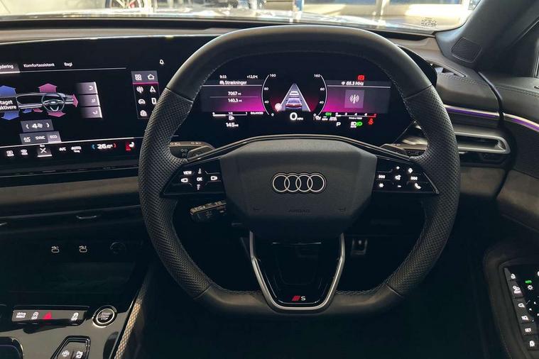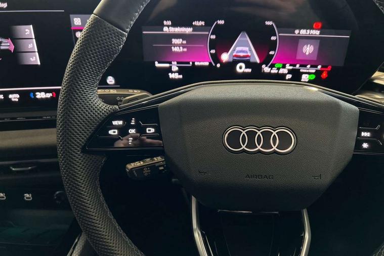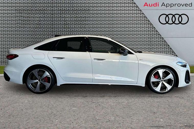 Adaptive cruise control, Advanced driver attention and fatigue montior, Audi application store, Audi assistant, Audi connect emergency call and service, Audi digital key, Audi drive select, Audi smartphone interface, Audi virtual cockpit plus with 11.9" OLED colour display, Automatic start/stop system with coasting functionality, Camera based traffic sign recognition, Intersection assist, Lane change assistant with exit warning system, rear cross traffic alert and rear turn assist, Lane departure warning with emergency assist, MMI 10.9" front passenger touch display, MMI navigation plus with high resolution 14.5" OLED touchscreen colour display, Park assist plus, Parking system plus with 360 display, Progressive steering with servotronic, Swerve assist and turn assist, Top view camera, Traffic sign based speed limiter, Sports suspension lowered by 20mm, 2 USB-C ports in both the front and rear, Audi sound system impressive sound with 10 loudspeakers including centre speaker and subwoofer, 6-channel amplifier with a total output of 180 watts, DAB digital radio reception, Smartphone compartment with wireless charging, Aluminium window trims, Auto dimming rear view mirror, Black door handles, Dark chrome-plated tailpipe trims, Door mirrors - electrically adjustable, heated, folding and auto dimming on both sides, Front and rear electric windows, Front door sill trims with aluminium inlays, illuminated with 'S' logo, Headlight cleaning system, High beam assist, LED daytime running lights, LED rear lights pro incl. dynamic rear indicators and illuminated light strip with animated coming and leaving home function, LED third brake light, Matrix LED headlights with eight light signatures selectable via the MMI or the myAudi app, Privacy glass, Rear and side windows with heat insulating glass, Rear boot, Rear side wing doors, Red S line rhombus badging on rear, S line bumpers, radiator grille and diffuser in phantom black and diffuser insert in matt anthracite, White rhombus logo projection light in exterior mirrors, Windscreen with acoustic glazing, 3 rear headrests, 3 seat rear bench, 3 spoke leather steering wheel with multi-function buttons with touch control, flattened on top and bottom, with S badging and contrast stitching, 3-zone automatic climate control, 40:20:40 split folding rear seat bench with centre armrest and cup holders, Comfort front centre armrest, Electrically adjustable front seats, Front and rear floor mats, Front sport seats with integrated headrest and S embossed logo, Headlining in black cloth, Heated front seats, i-Size child seat mounting on the front passenger side and outer rear seats, i-Size and top tether on the outer rear seats, Luggage compartment lid, electrically opening and closing, Manual steering column height and depth adjustment, Memory function for driver seat, Single front passenger seat, Stainless steel pedals and footrest, Steering wheel grips in perforated leather and shift paddles, Ambient lighting package plus - A5, Black styling package plus - A5, 3x3 point rear seat belts, Acoustic vehicle alerting system, Convenience key with safelock, Driver airbag, Electric child safety locks, First aid kit with warning triangle and vests, Front emergency brake assist, Front passenger airbag, Front passenger airbag deactivation, Hill hold assist, Occupant detection in rear seat area, Proactive passenger protection system for front, sides and rear, Red brake calipers, Seat belt monitoring with rear seat occupant reminder, Side airbags in front and rear with head airbag system and front interaction airbag, Tyre pressure loss indicator, Anti theft alarm, Anti-theft wheel bolts, Keyless Go, Accent surfaces and control buttons in gloss black, Black dashboard with contrast stitching, Softwrap in Dinamica with contrast stitching, Upper and lower interior elements in dinamica microfiber, 20" 5 arm fold design Audi sport alloy wheels in silk matt grey and gloss turned finish, Tyre repair kit,