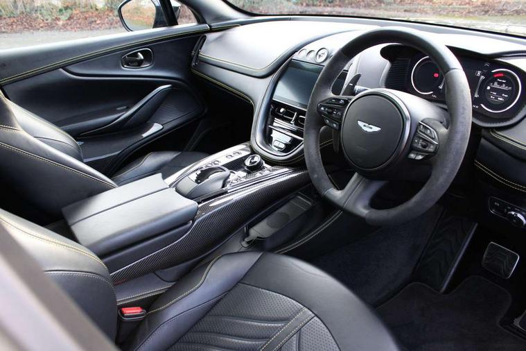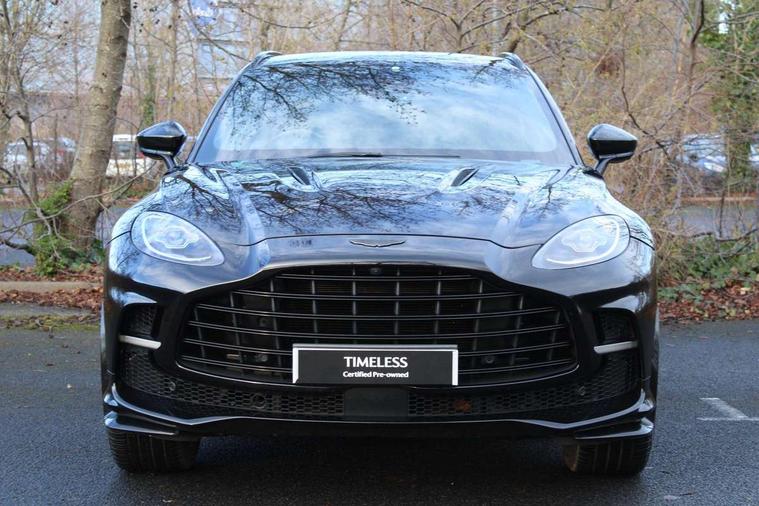 10.25" TFT centre display, 12.3" TFT instrument display, Adaptive cruise control, Apple car play/Android Auto, Aston martin satin chrome designer key, Blind spot monitoring, Bluetooth telephone connectivity, Brake pad wear indicator, Drive modes Terrain, Individual, GT, Sport, Sport + including launch control, eCall emergency call system, Electric power assisted steering (EPAS), Forward collision warning, Front parking aid with visual indicator, Inductive phone charger, Infotainment touchpad and dial, Lane change warning, Lane departure warning system (LDW), Lane keep assist, Outside temperature display, Park assist system, Rear crossing traffic warning, Rear parking aid with visual indicator, Rotary dials, Rotary infotainment system interface, Satellite navigation system, SOS emergency call button, Speed limiter, Standard underbonnet, Stop/start system, Surround camera system with deploying rear camera, Traffic sign recognition, Voice control system, 9 speed automatic transmission, Active centre transfer case, Adaptive triple chamber air suspension, All Wheel Drive (AWD), Battery conditioning connector, Electric active roll control, Electric limited slip rear differential, Electronic adaptive damping system, AM/FM radio, Aston martin premium audio, Bluetooth audio streaming, DAB Digital radio, SD card slot, USB port, 3rd brake light, Acoustic laminated front windows, Active rear brake lights, Approach Illumination, Auto dimming interior rear view mirror, Automatic headlights, Automatic high beam - AHB, Bi LED headlights, Body colour side vent, Carbon fibre rear wing lip spoiler, Electric windows, Fixed panoramic glass sunroof, Heat insulating glass, Heated rear window, Horizontal DRL/turn indicator design with larger air intakes and brake cooling grilles, LED centre high mounted stop light, LED daytime running lights, LED rear fog light, Matte black mesh bonnet vents, Power foldback door mirrors, Rain sensing windscreen wipers, Rear bumper design with integrated quarter panel vents, Rear side wing doors, Rear wiper, Sport exhaust, Standard paint protection film, 12V power sockets, 16 way electric front seats with memory, 3 seat bench in 2nd row, 40:20:40 split folding rear seats, Ambient lighting, Anodised aluminium sill plaques with aston martin wings, Automatic climate control, Black loadspace carpet, Courtesy Light, Embossed - Aston martin wings, Front and rear door pockets, Front centre console storage cover, Front head restraints, Gloss black double layer side sills, Glovebox with electric locking, Heated seats, Isofix/I size rear outer, Load rails in load space, Load tie downs in load space, Lower front console storage, Map pocket on front seat storage, Rear head restraints, Single front passenger seat, Soft close doors, Sports plus seats, Stainless steel sill protector in load space, Twin cupholders in front and rear, Twin front centre armrest, Twin sunvisors with illuminated vanity mirrors, 3x3 point rear seatbelts, Airbags - Driver and front passenger and knee, Anti theft locking wheel bolts, Anti-lock braking system (ABS), Auto vehicle hold function, Autonomous emergency braking, Carbon ceramic disc brakes, Door exit warning, EBD - Electronic brakeforce distribution, Electric parking brake (EPB), Emergency brake assist, ESC (Electronic Stability Control), Front thorax airbags/Side curtain airbags, HDC - Hill descent control, High performance braking system, Hill start assist, Intelligent wet brake control, Rear child proof door locks, Rear thorax airbags, RSC - Roll stability control, Seatbelt pre-tensioners, Seatbelt status indicator, Torque vectoring brake, Traction control, Tyre pressure monitoring system, Warning triangle, Alarm/immobiliser, Keyless entry with start/stop button, Remote central locking, Seat perforaton elegant, Seat quilting elegant,