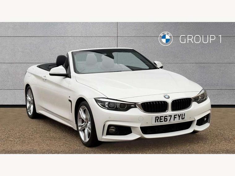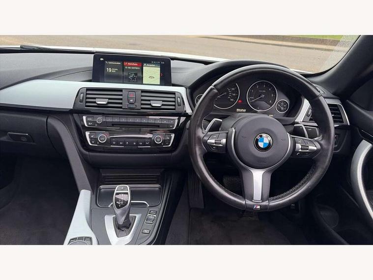 BMW Online services, BMW remote services, BMW Teleservices, Brake pad wear indicator warning light, Check control system, Door/boot open warning, Front/rear Parking distance control, iDrive controller and display with 6.5" monitor, Lights on warning, Oil temperature gauge, On board computer, Outside temperature display, Real time traffic information, Run flat indicator, Service interval indicator, Stop/start button, Diesel particulate filter, Drive Performance Control, Electronic differential lock, Sports function on gearbox with steering wheel mounted gearshift paddles, Bluetooth audio streaming, BMW professional radio/CD/MP3, DAB Digital radio, 2 speed adjustable intermittent wipers with wash/wipe function, Auto dimming rear view mirror, Body colour bumpers, Body colour door handles, Body colour door mirrors, Body colour roof mouldings, Chrome kidney grille with black vertical slats, Door sill finishers, Dual chrome exhaust, Electric adjustable heated door mirrors, Electric front windows/one touch facility, Follow me home headlights, Heat insulating tinted glass, Heated windscreen washer jets, High gloss shadow line, LED daytime running lights, LED front fog lights, M aerodynamic bodystyling, Rain sensor including auto headlights activation, Welcome lighting, Windscreen with grey shadeband, 12V sockets in front centre console and passenger footwell, 3 spoke leather M sport multifunction sports steering wheel, Anthracite Velour floor mats, Dual zone climate control, Folding front centre armrest with storage compartment, Folding storage compartment with glasses holder + coin tray, Front cupholders x 2, Front door storage with bottle holder, Front head restraints, Front sports seats with electric side bolster adjustment, Front/rear armrests within door panels, Glovebox with lid, Heated front seats, Integrated rear head restraints, ISOFIX child seat preparation+airbag deactivation, Lashing eyelets in boot, Leather handbrake grip, Reach + rake adjustable steering column, Rear centre armrest, Storage compartment behind rear seat, Storage compartment in centre rear seat base, Storage compartment in rear centre console, Toolkit located in luggage compartment, Extended lights package - 4 Series, 3 point seatbelts on all seats, ABS/EBD, Automatic Stability Control (ASC), BMW emergency call, Brake energy regeneration, Cornering brake control (CBC), Crash Sensor - activates hazard/interior lighting + unlocks doors, Driver seatbelt warning indicator, Driver/Front Passenger airbags, DSC+, Dynamic brake control, Dynamic Traction Control - DTC, Front passenger airbag deactivation, Front seatbelt force limiters, Front seatbelt pretensioner, Front side airbags, Hill start assist, Roll over protection, Side impact protection, Tyre pressure monitor, Warning triangle and first aid kit, Central locking including fuel filler and boot, Drive away door locking, Electronic immobiliser, Remote control Thatcham category 1 alarm,